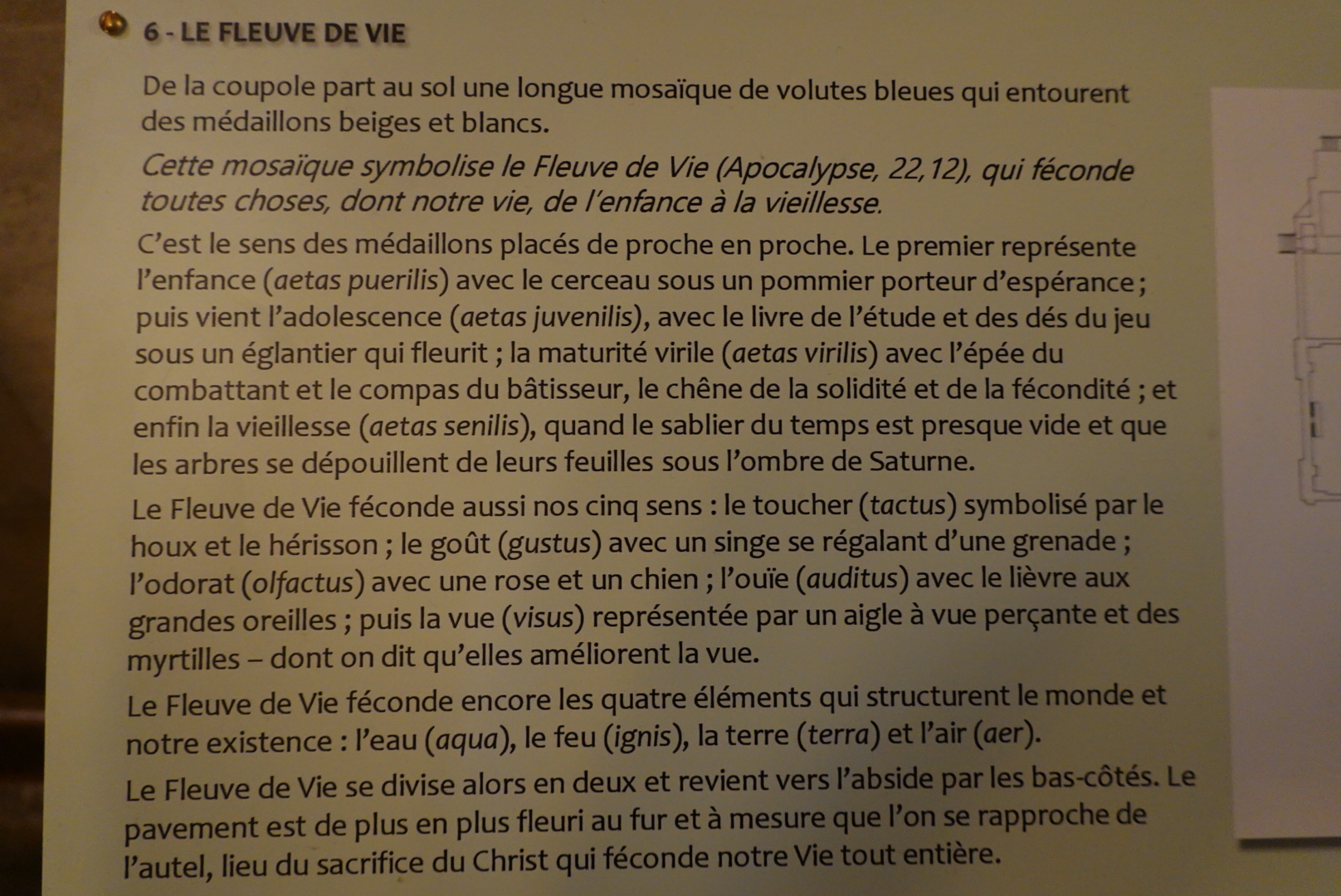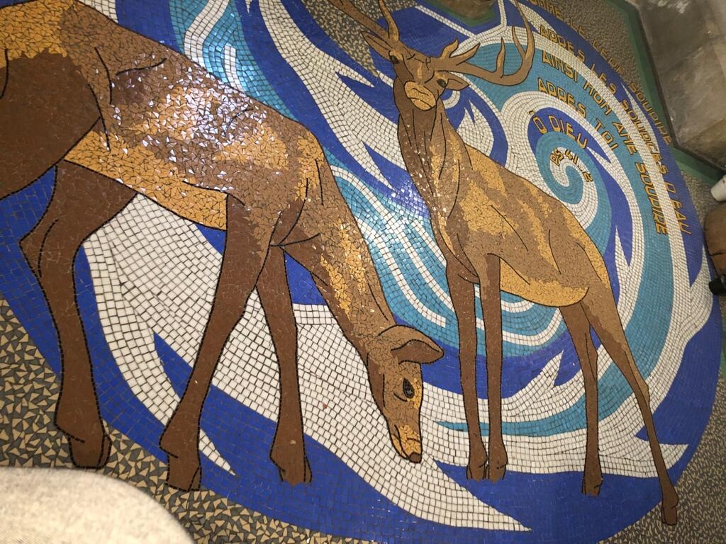 J'aime les mosaïques. Alors, observer le sol de l'église est un vrai plaisir tant par la réalisation que par les messages symboliques. L'horloge également est intéressante.