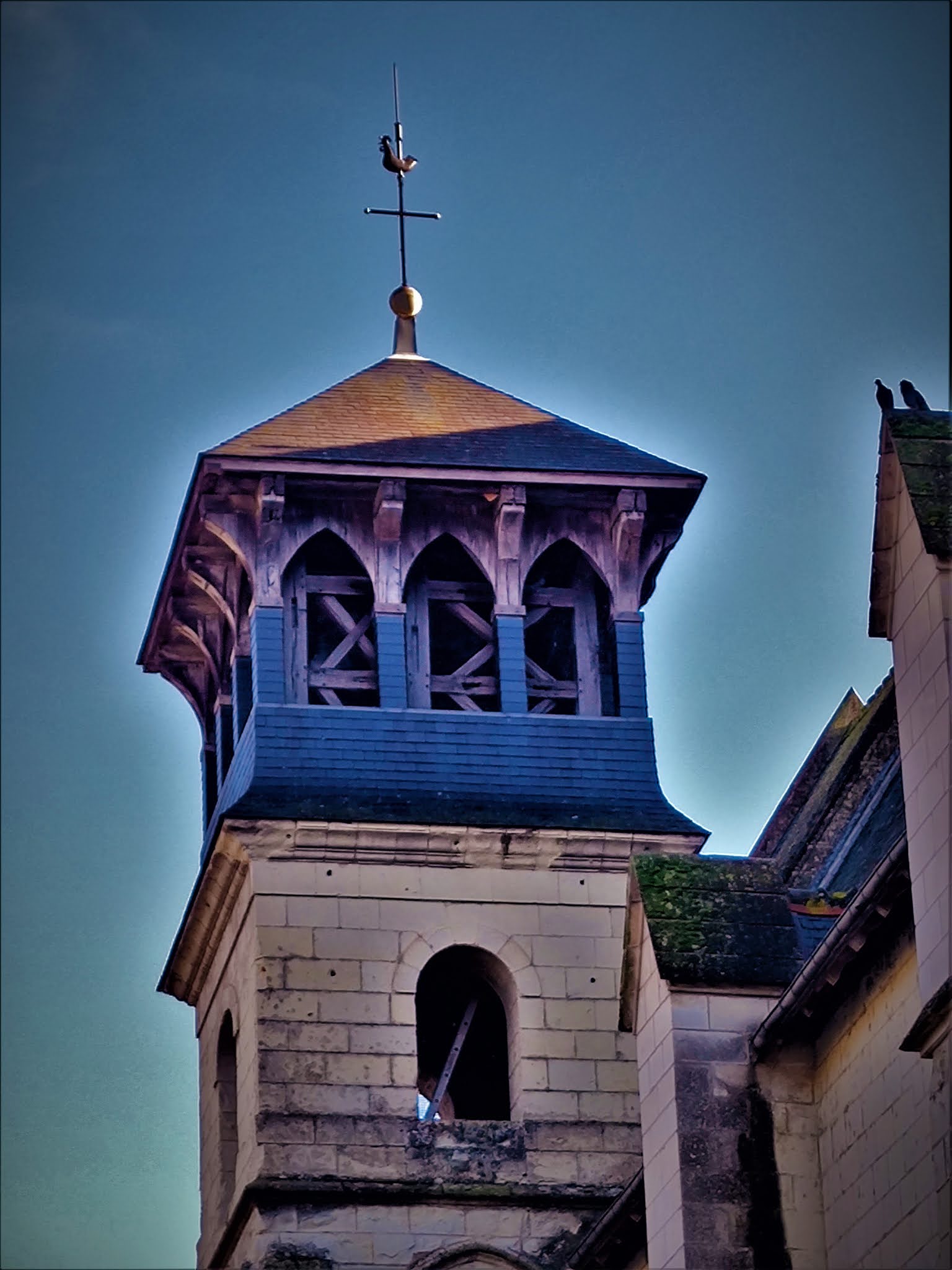 Belle église sur les pas de Jeanne d'Arc à Chinon, dotée d'un clocher très particulier.