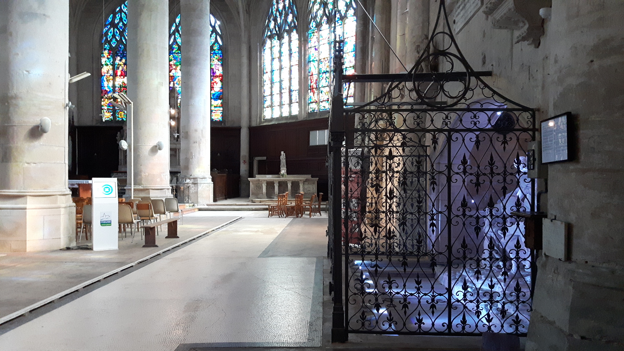 Le sépulcre de Ligier Richier est une œuvre exceptionnelle . Il est un peu dommage que la vue de cette oeuvre d’art soit gâchée par une grille en fer forgée très imposante. Il est possible de changer les lumières en utilisant le boîtier sur le côté droit.