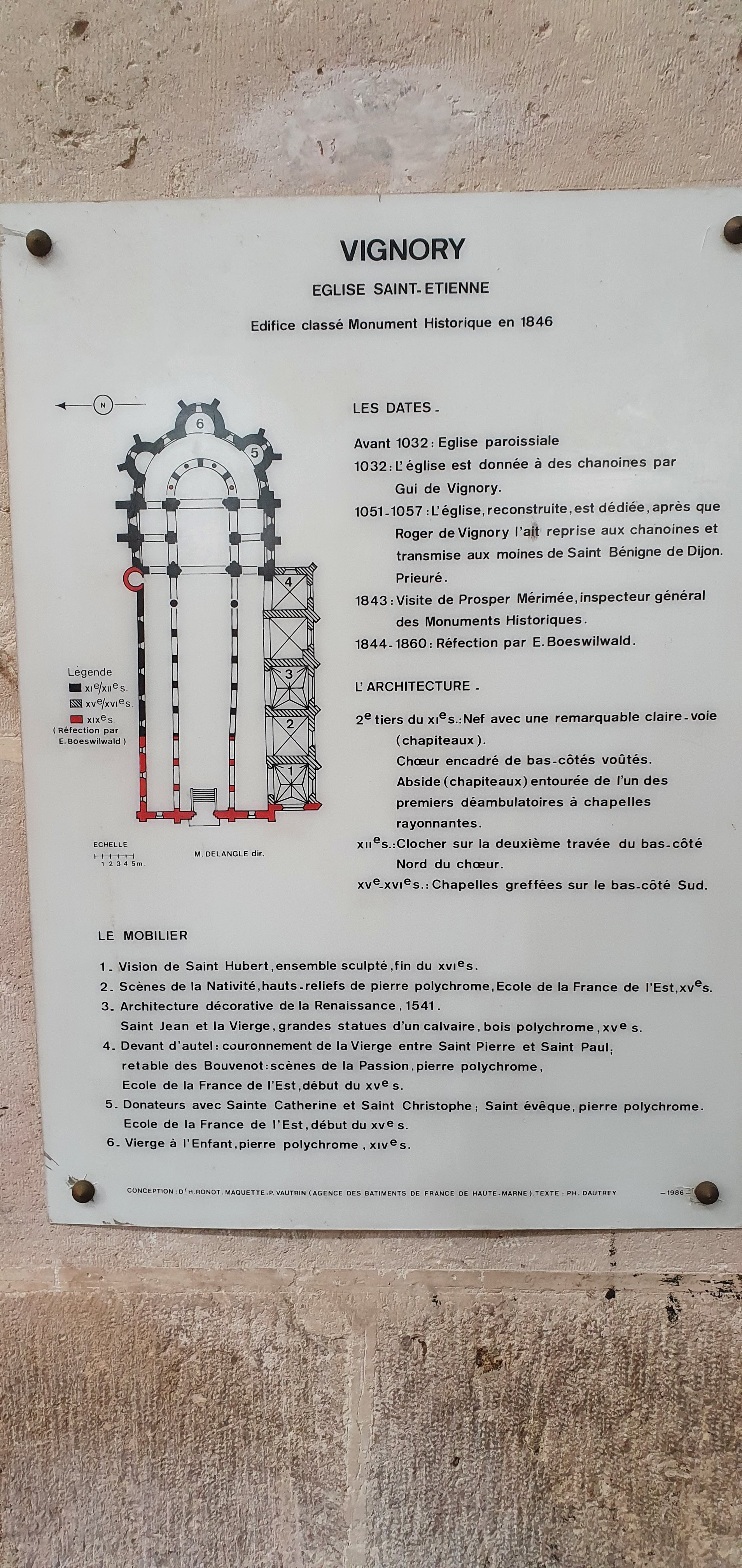 Église fondée au XIe siècle, par Roger Gui II, noble de la maison noble de Vignory, vassal de la maison de Bourgogne. Construite en matériau calcaire, cette église est l'une des plus anciennes connues de Champagne. Cela vaut la peine de visiter et de visiter la belle Villa médiévale de Vignory, avec ses ruelles fleuries et ses maisons en pierre calcaire. Le village compte environ 250 habitants, mais presque aucun d'entre eux n'est visible dans ses ruelles étroites.