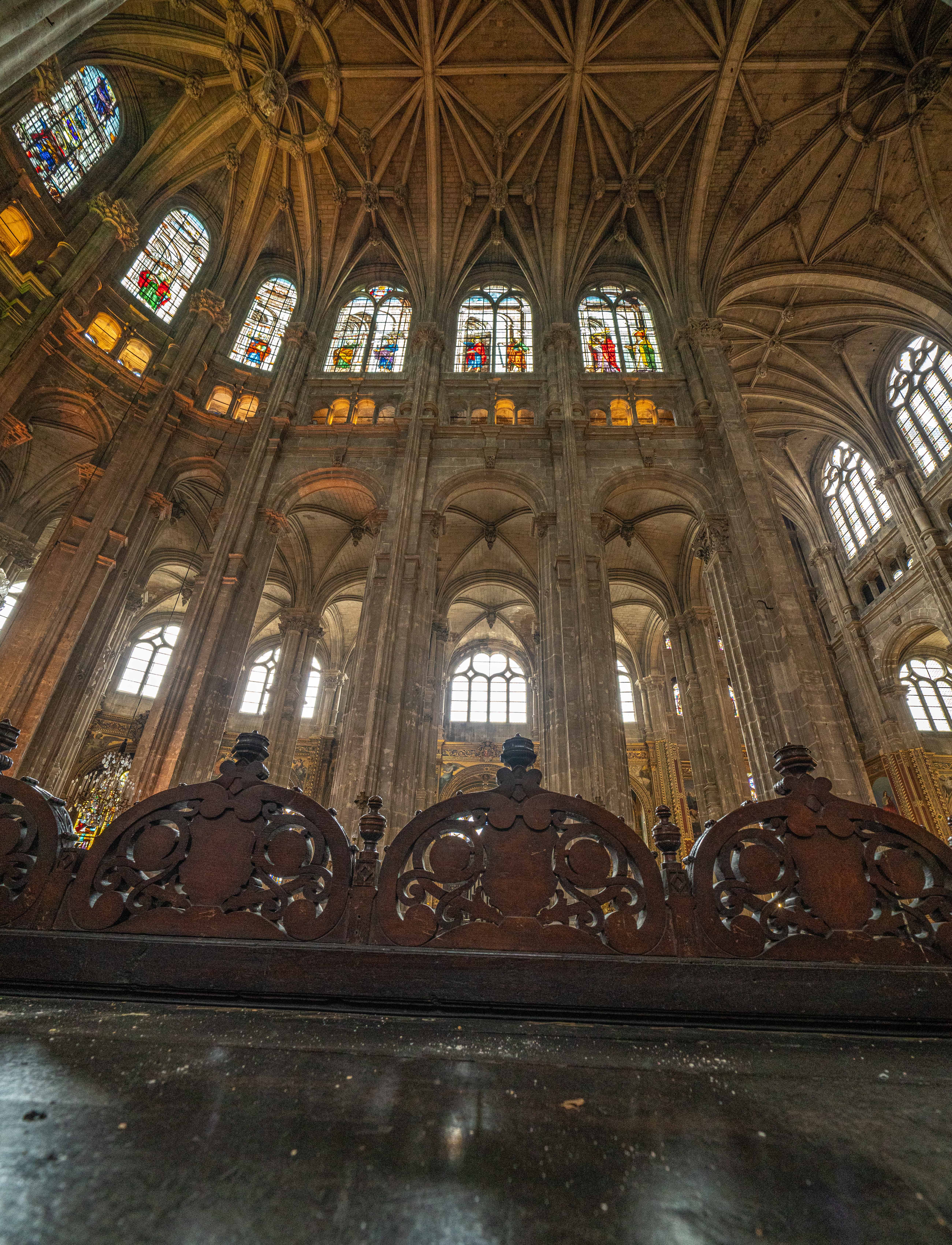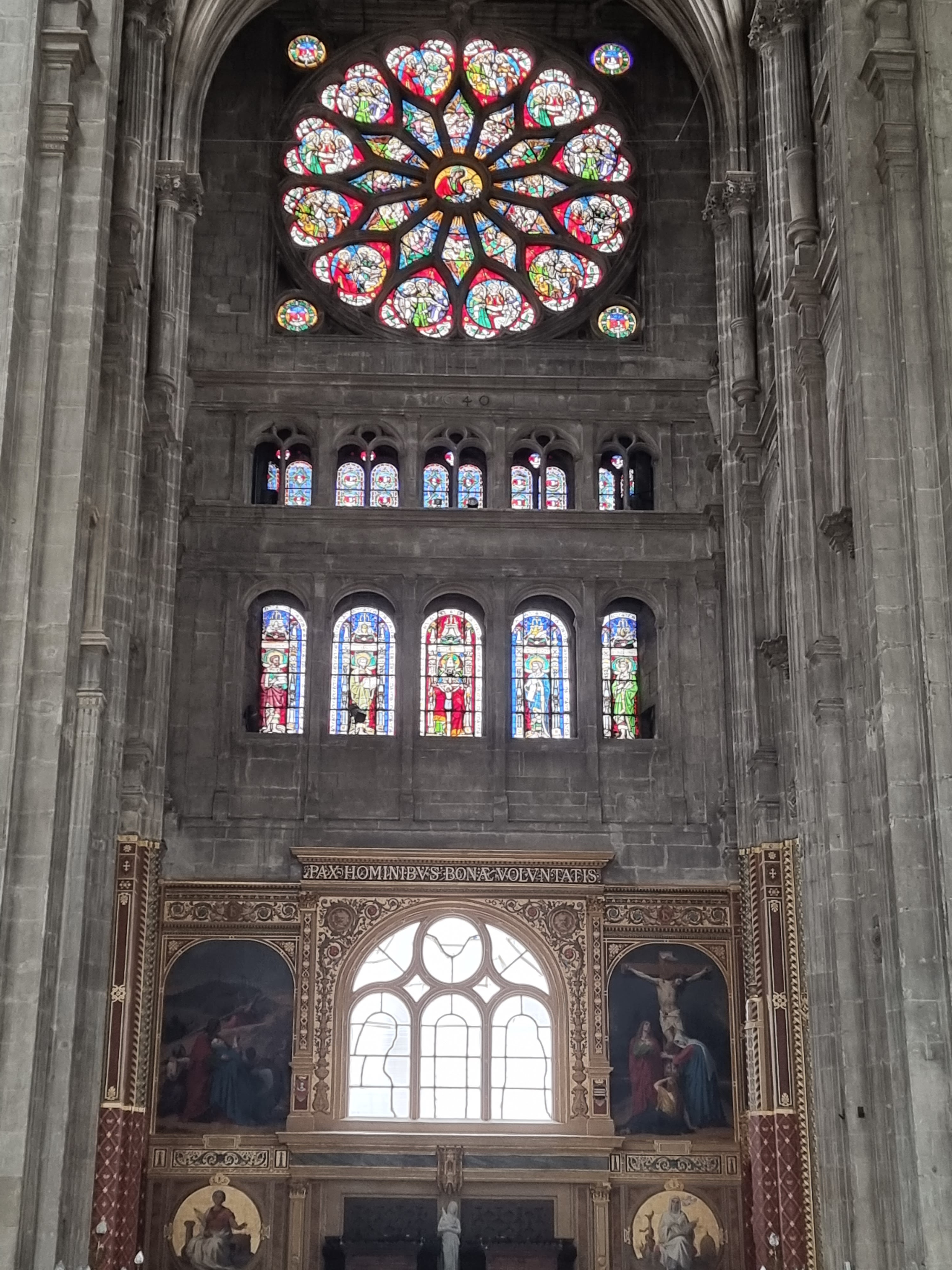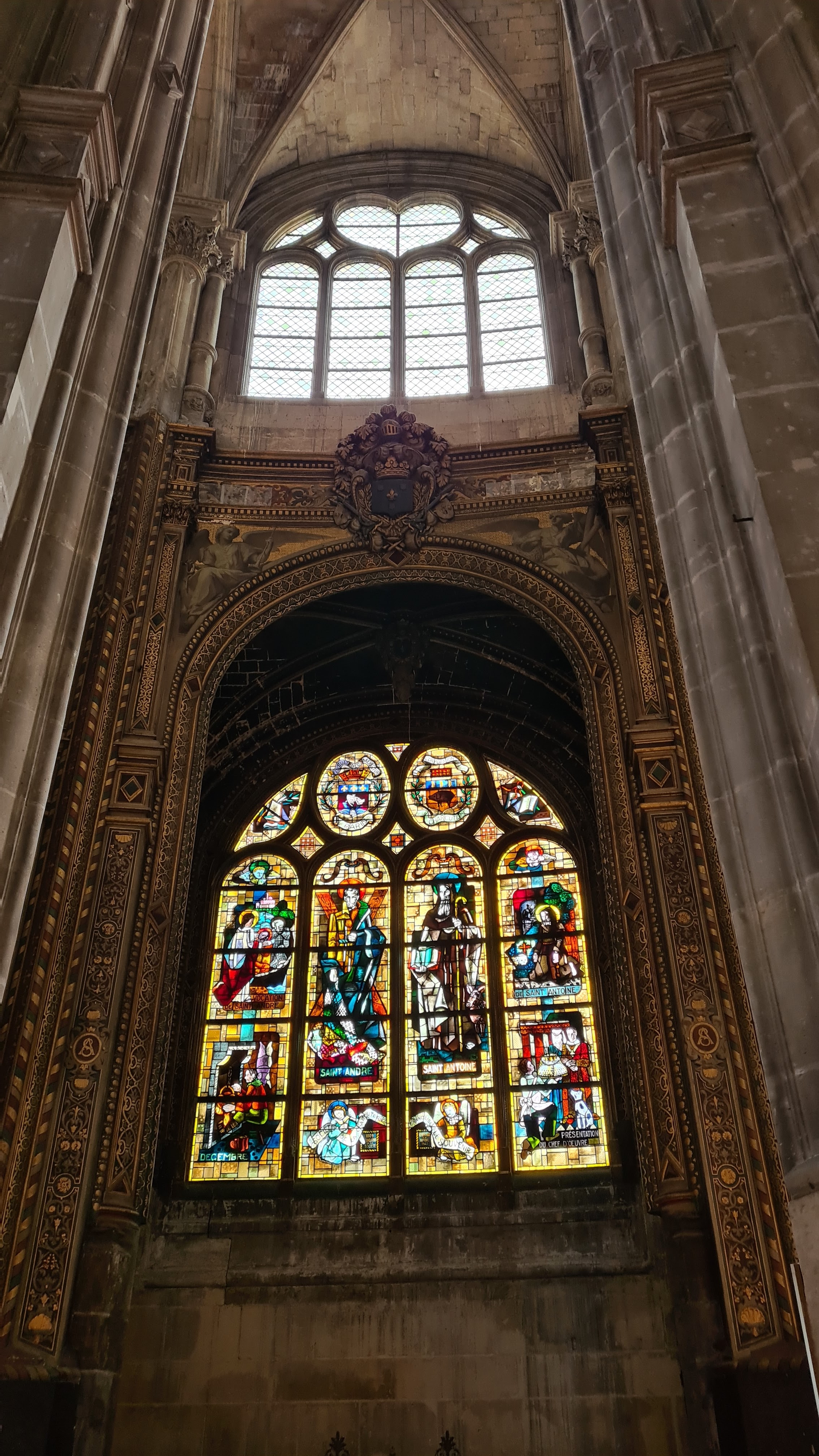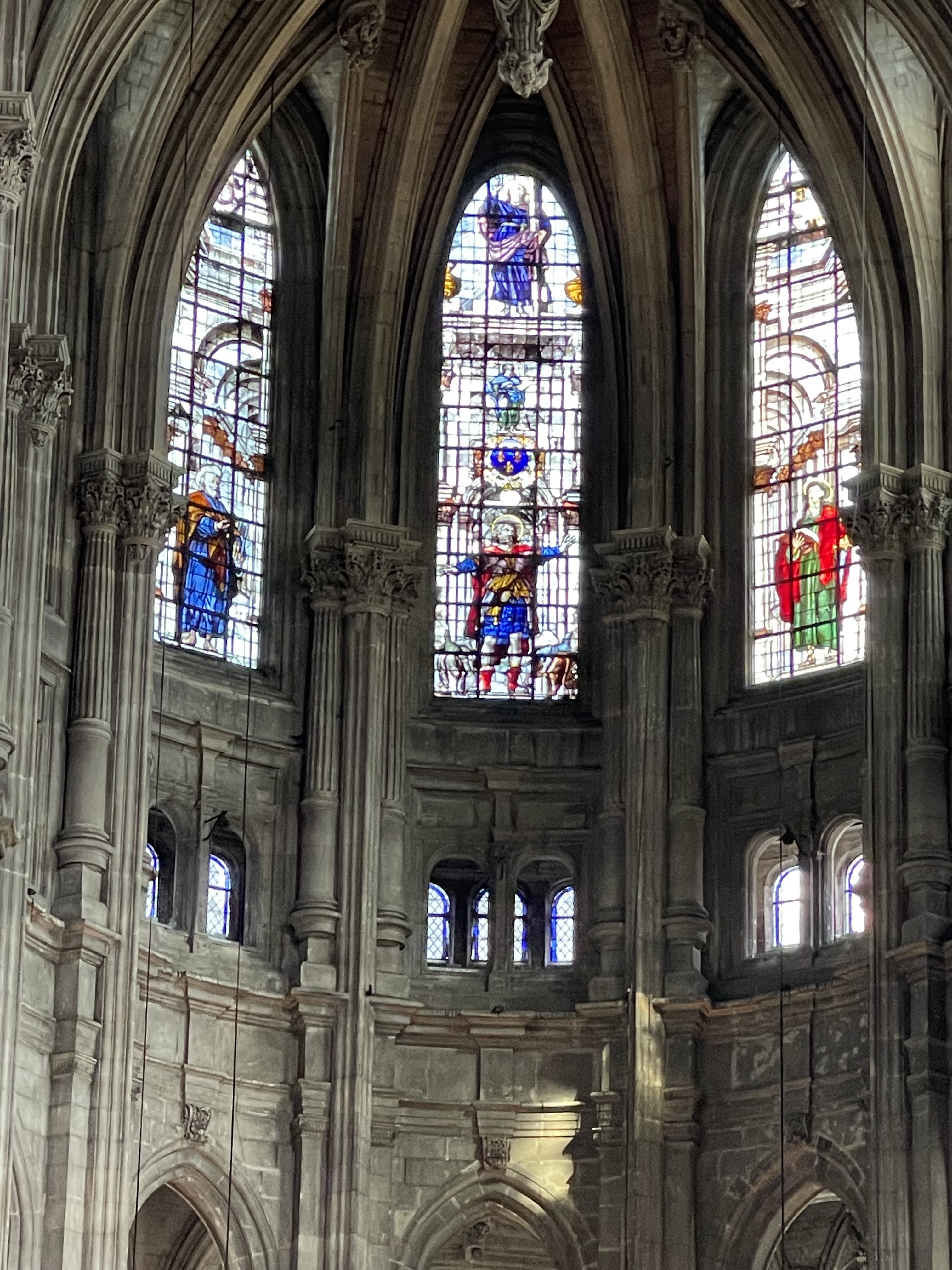Sur le parvis des Halles cette imposante cathédrale l'est encore plus vue de l'intérieur par ses volumes inhabituels et ses magnifiques vitraux éclairant sa nef élancée qui n'en finit plus de s'élever !... Il faut la visiter et s'y recueillir ne serait-ce qu'un instant...