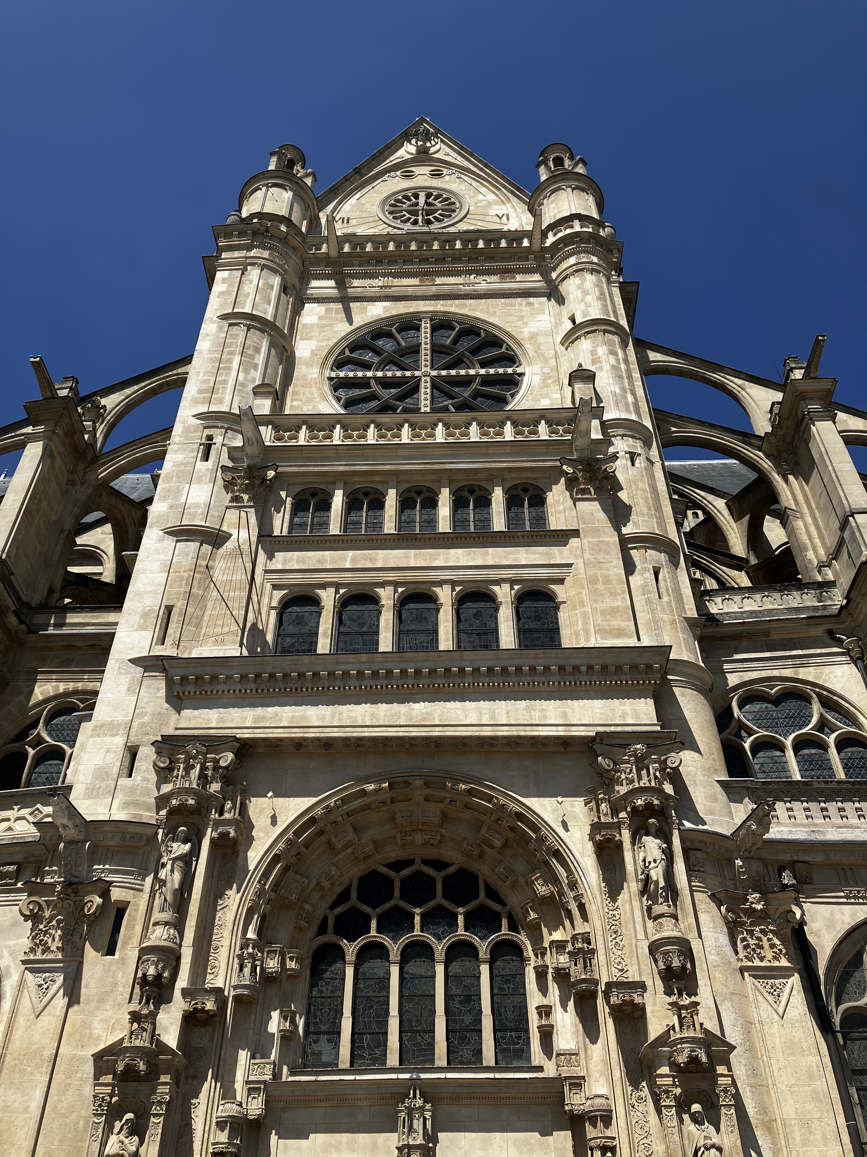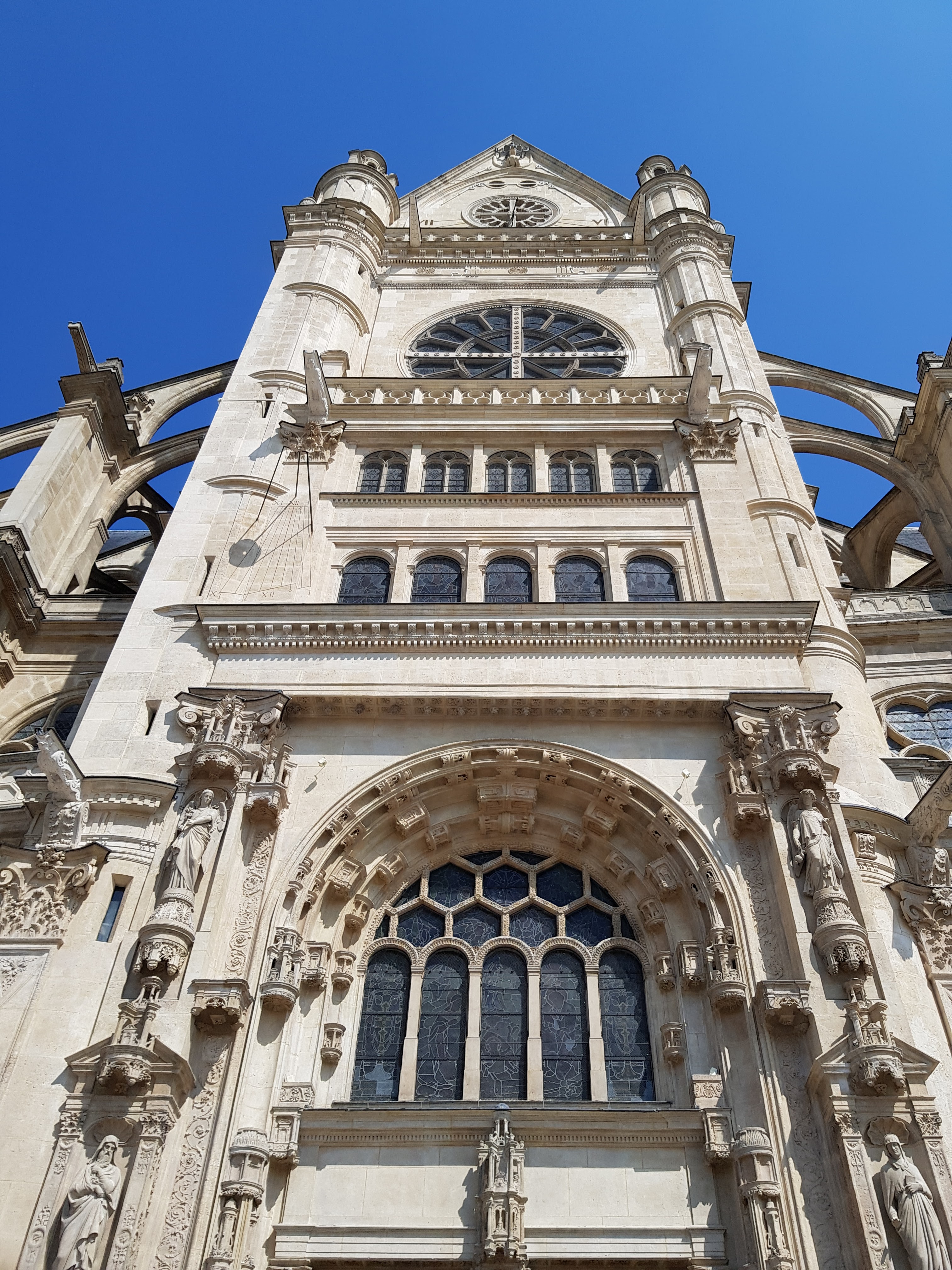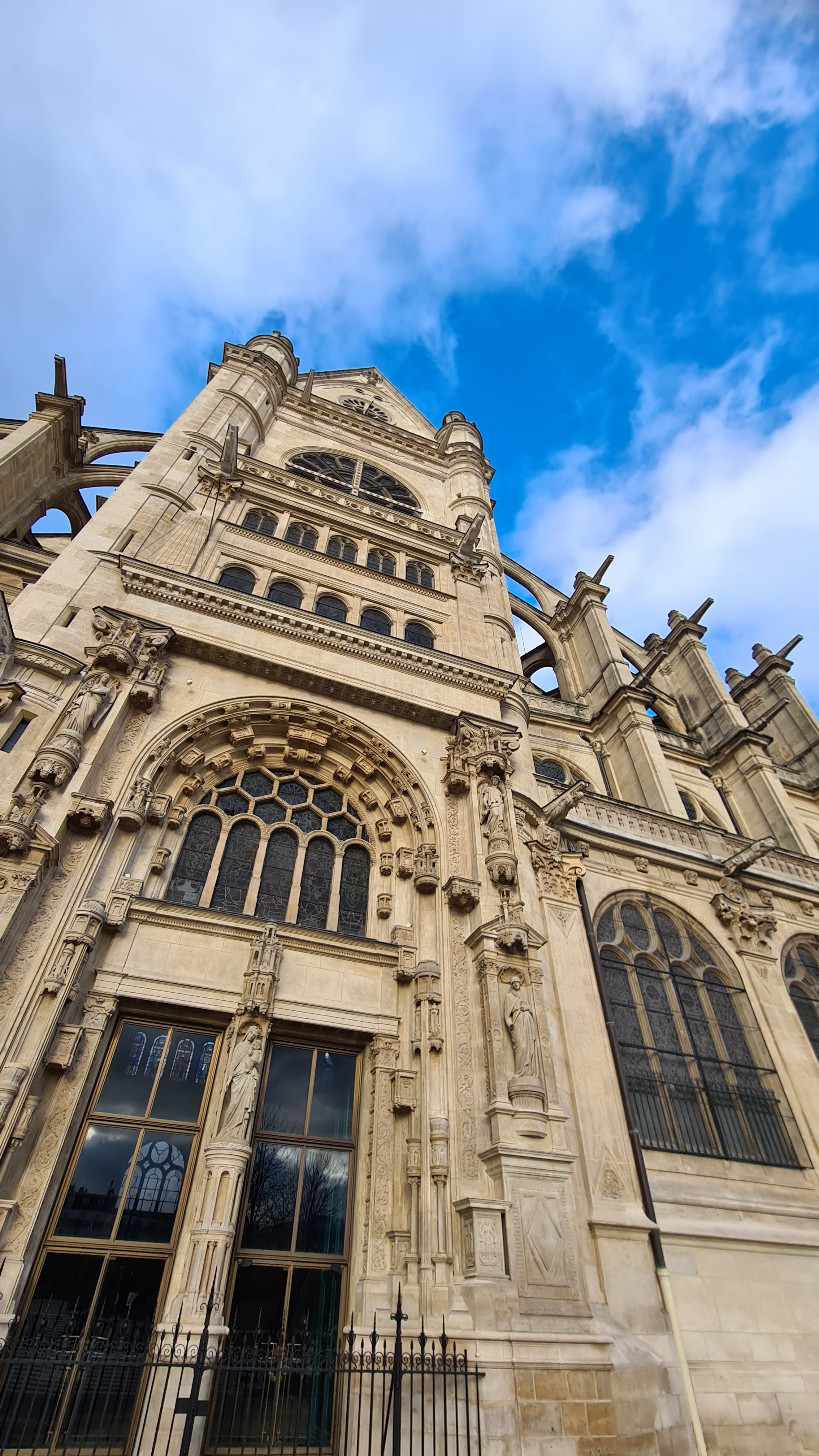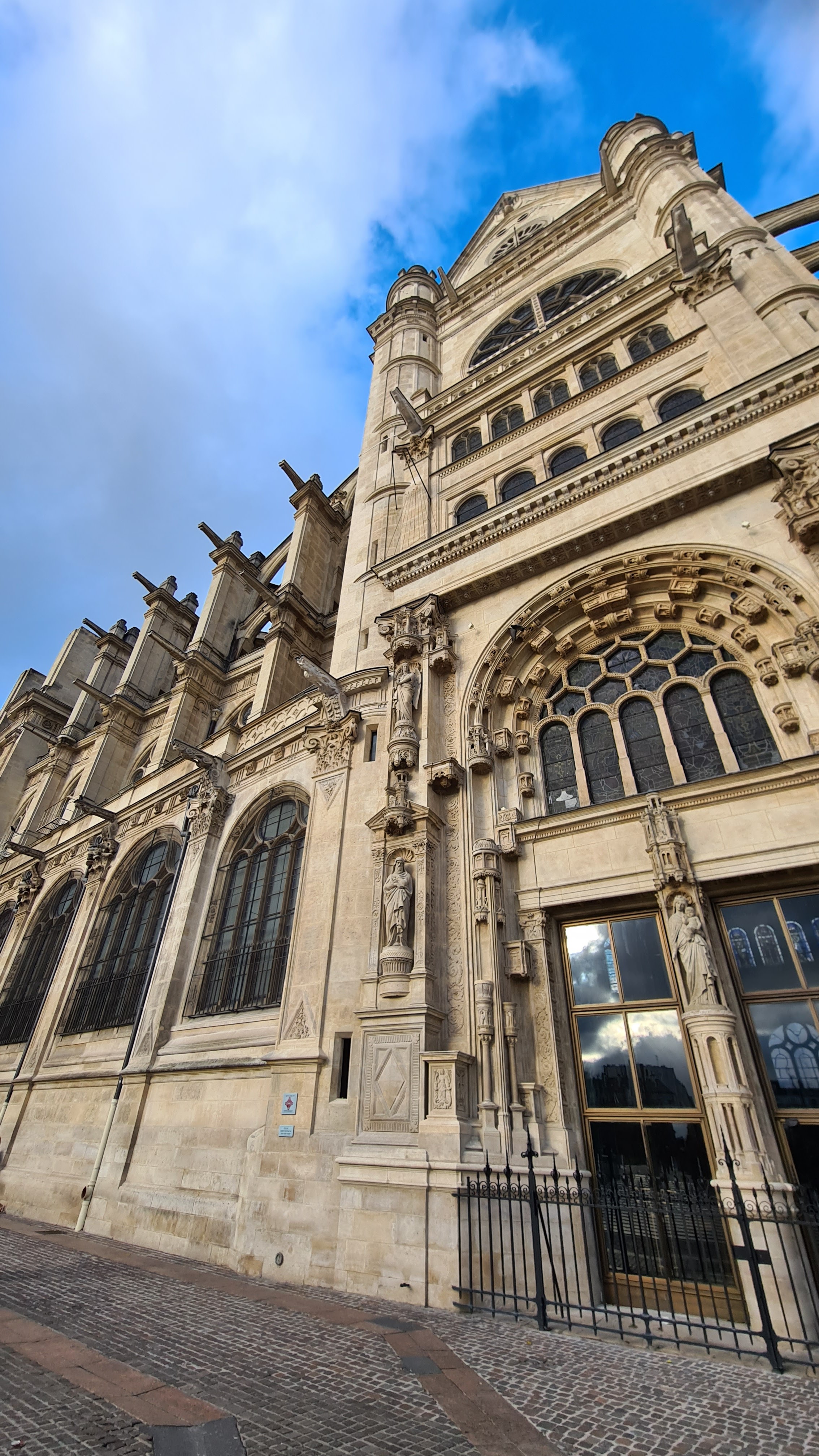 Magnifique église Saint Eustache avec ses statues et son style gothique flamboyant. Endroit où l on peut se recueillir.