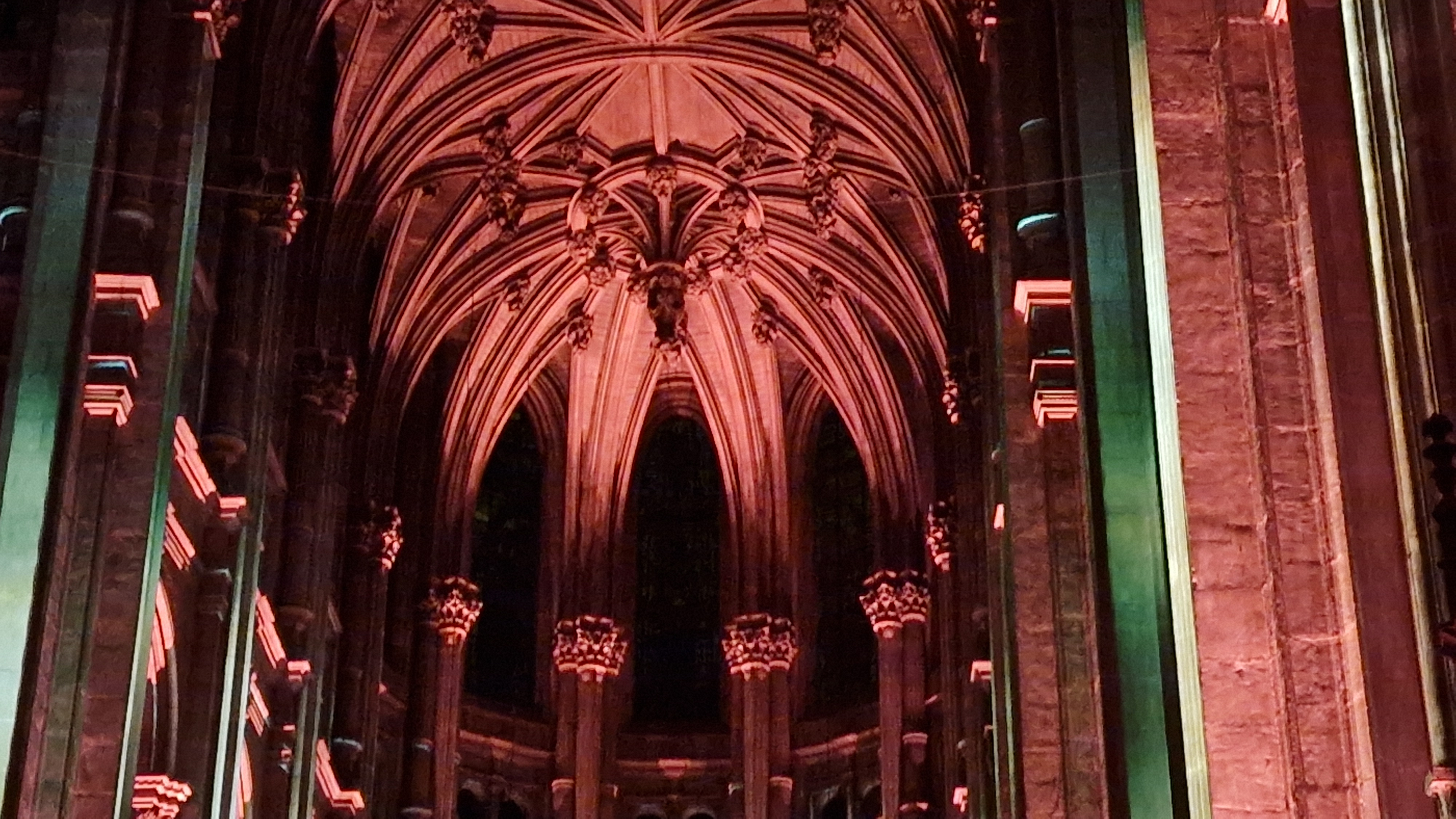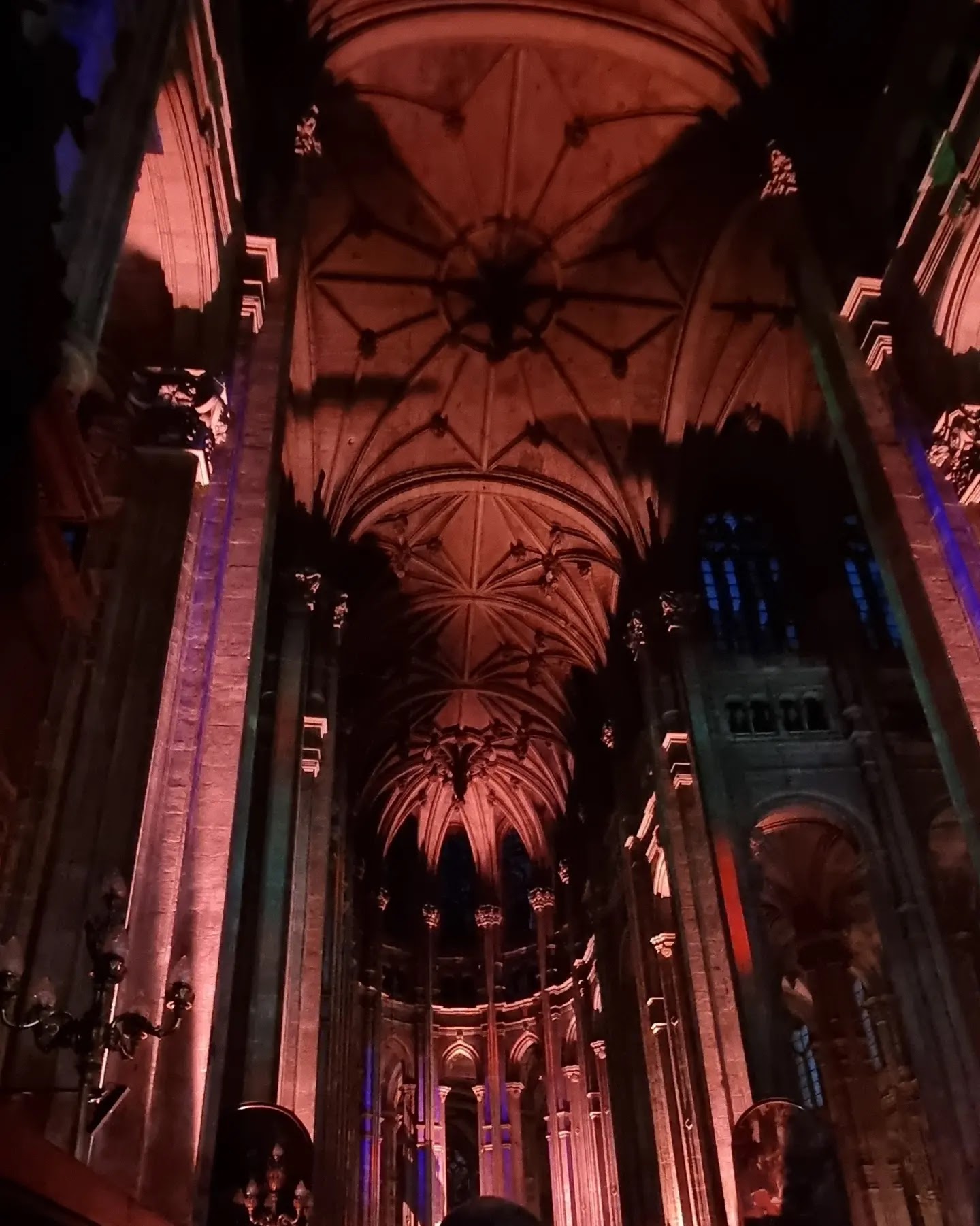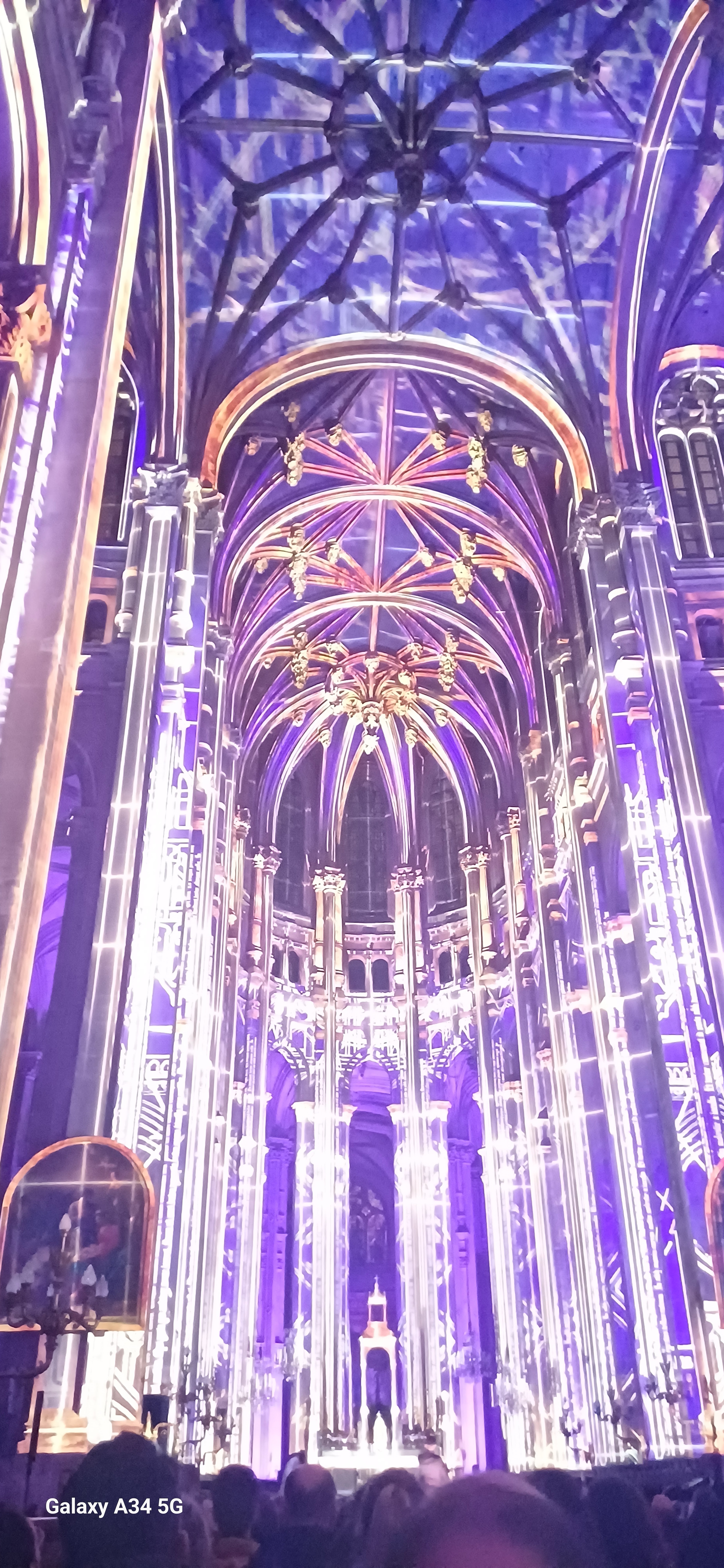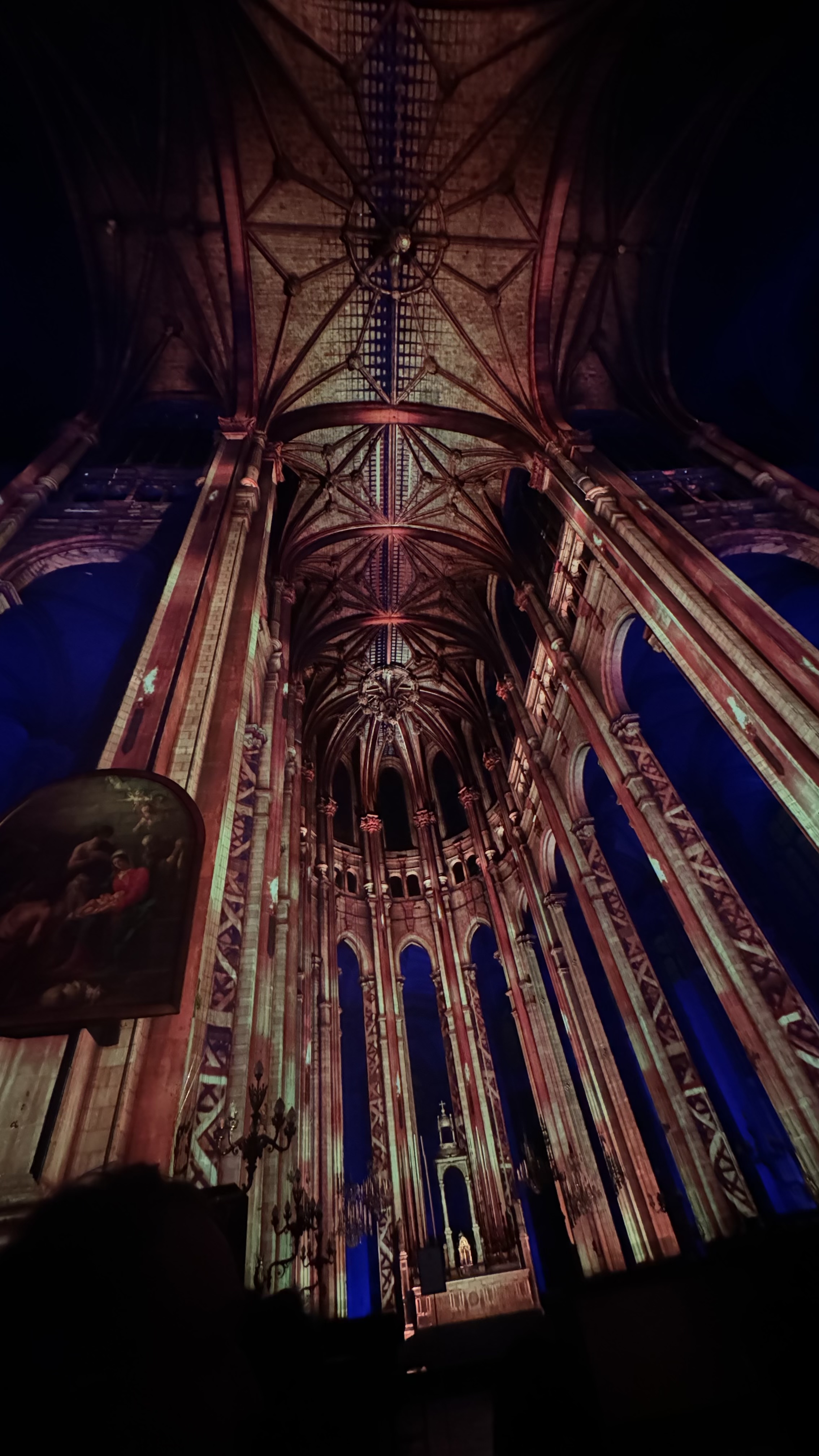 Magnifique avec ces illuminations !!! La 1' partie faite avec les acteurs permet de voir un peu les chapelles mais n'est pas très intéressante surtout qu'avec l'écho ont ne les comprends pas bien !!! Les plafonds qui n'ont pas été rénovés encore prennent une belle allure avec ces couleurs !!!