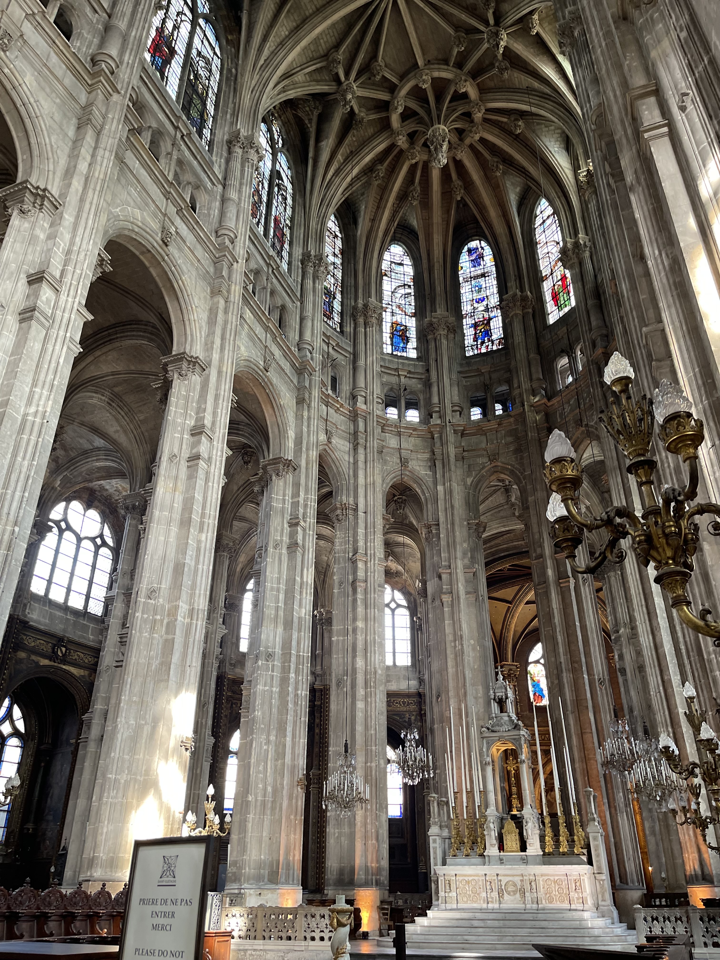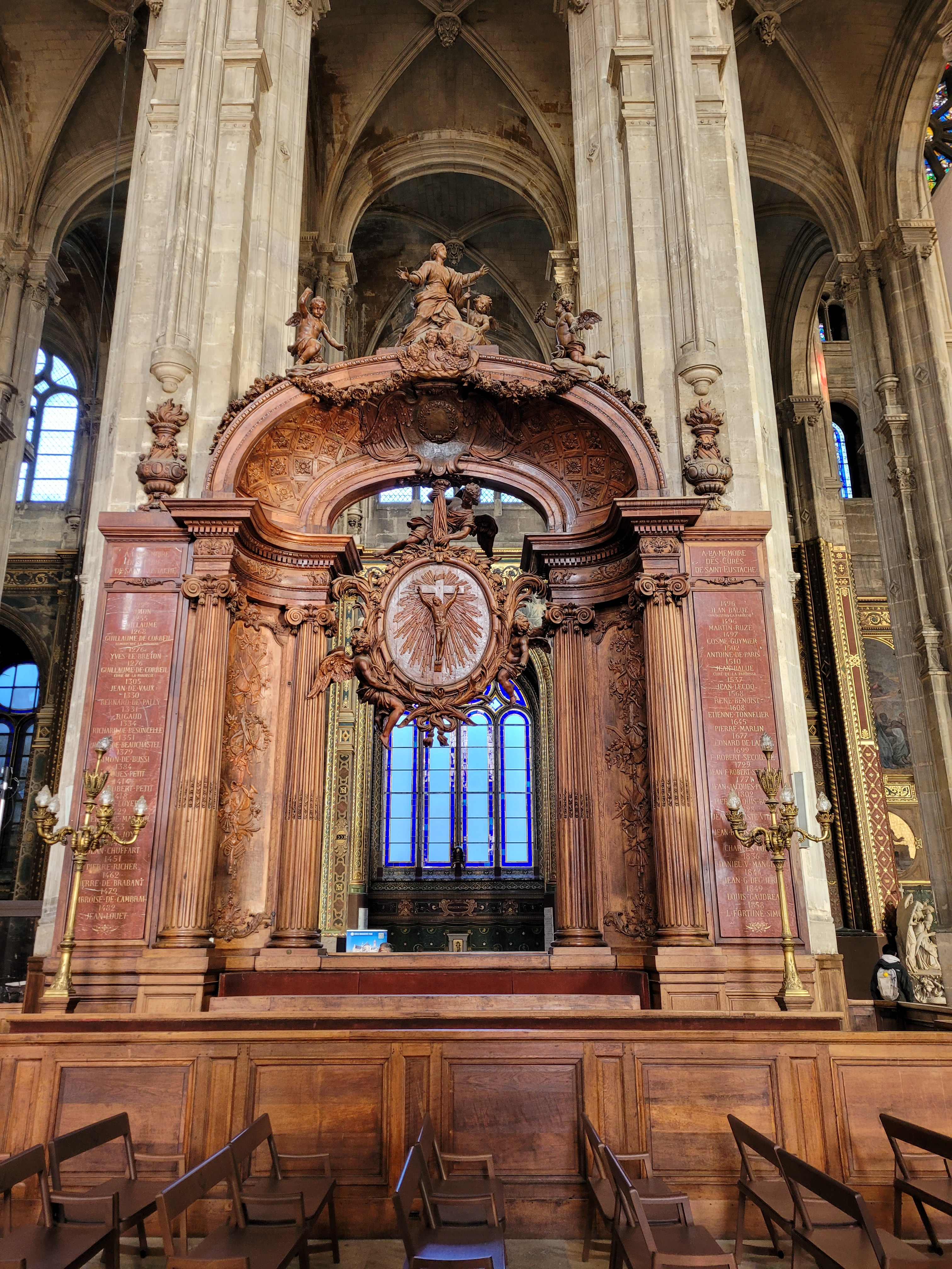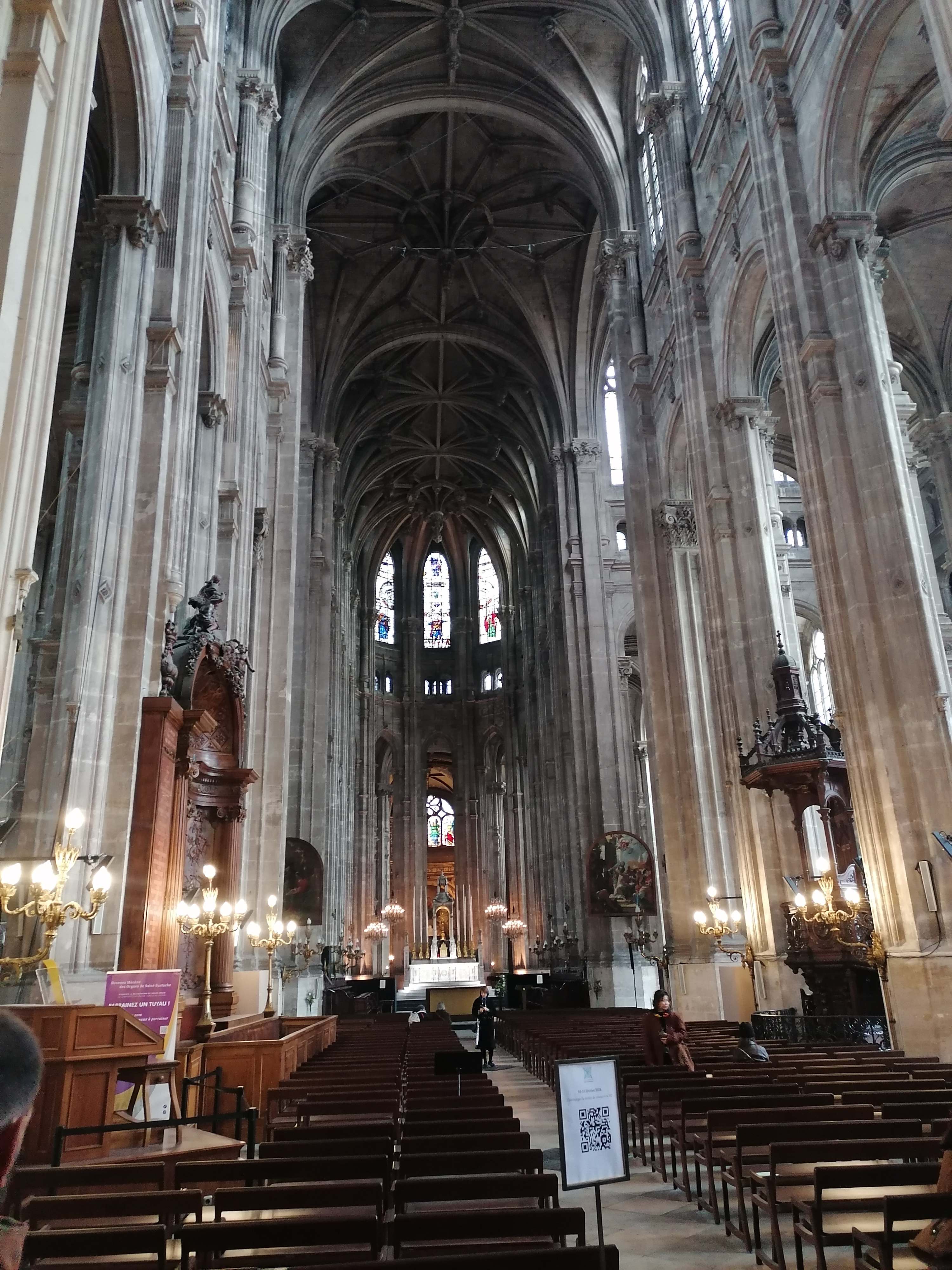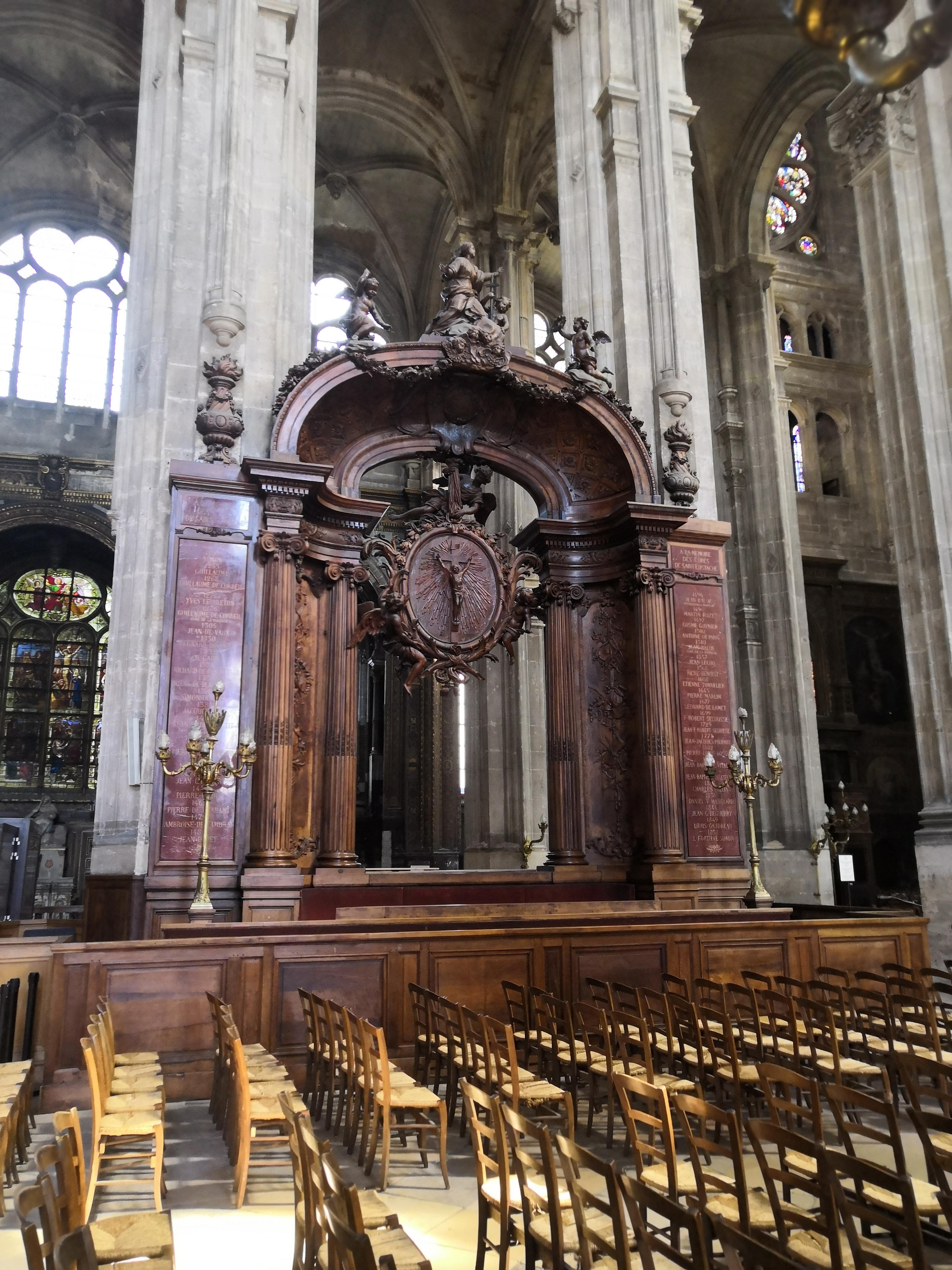 Je n'ai pu visiter l'église car trop de monde mais ai pu m'asseoir pour assister à la messe des charcutiers fin novembre et je dois dire que le chœur de Saint Eustache est exceptionnel grâce aussi à la très bonne accoustique de l'église. Magique ,malgré le froid que je déplore ,pas de chauffage 😌