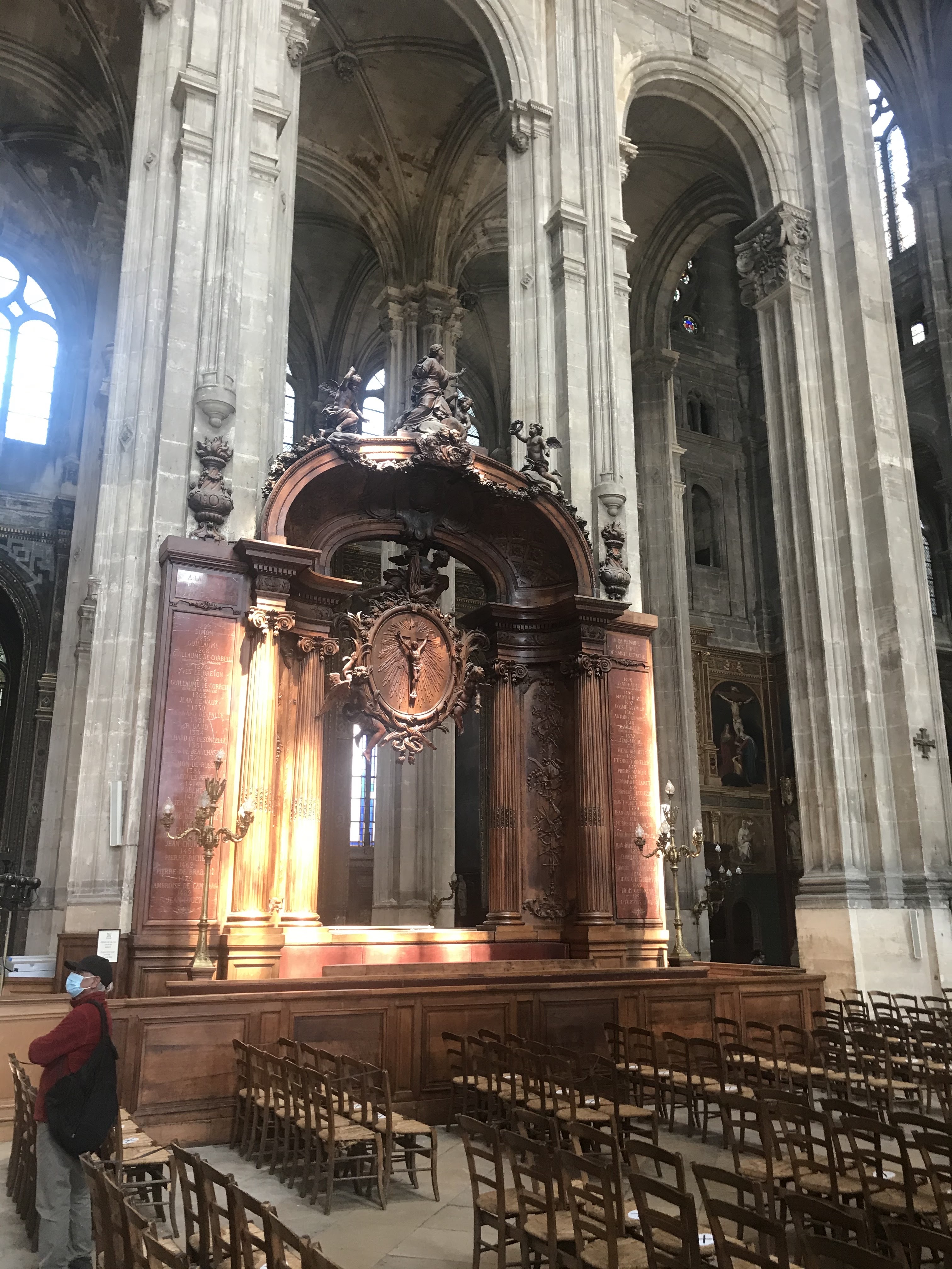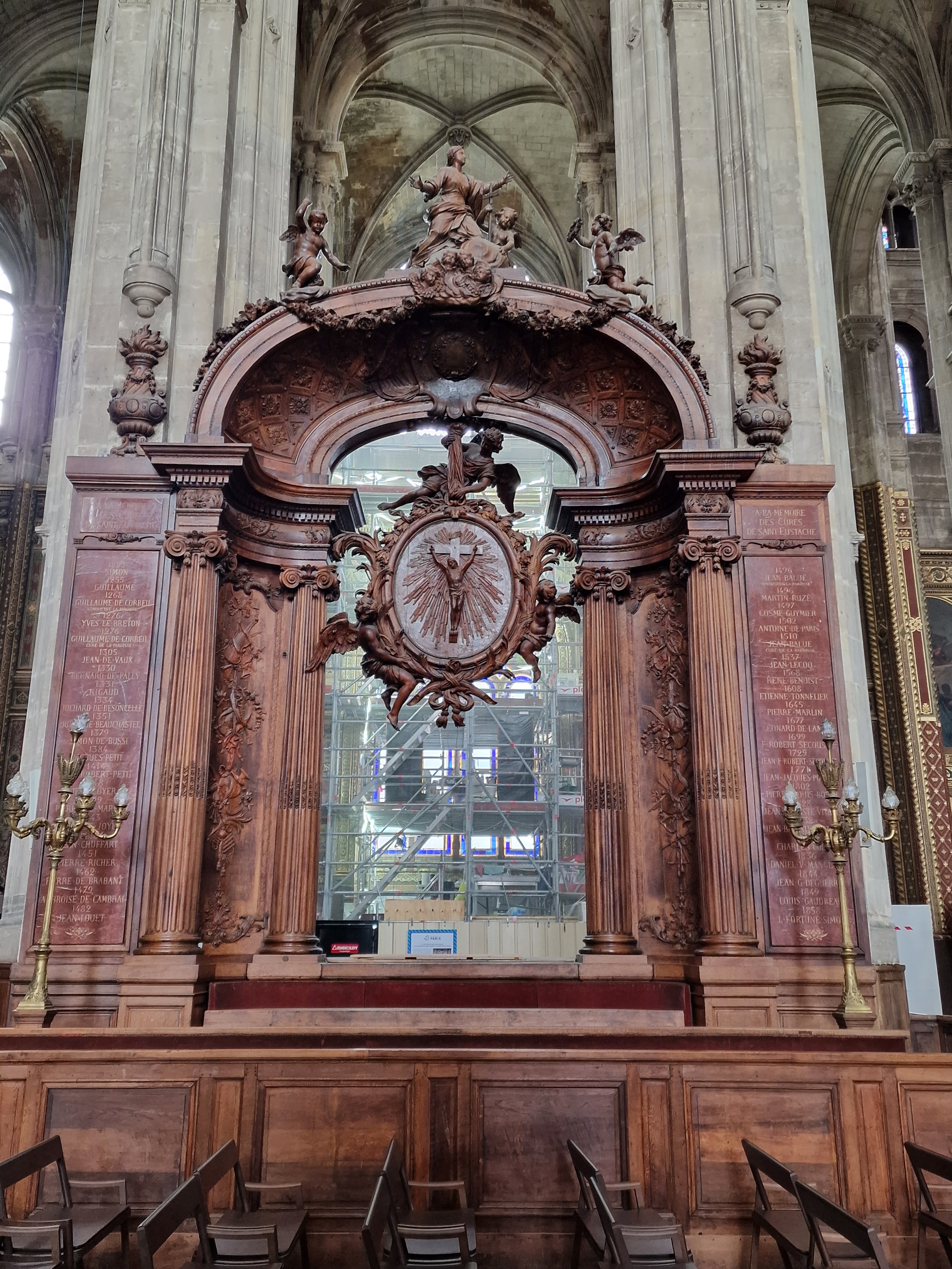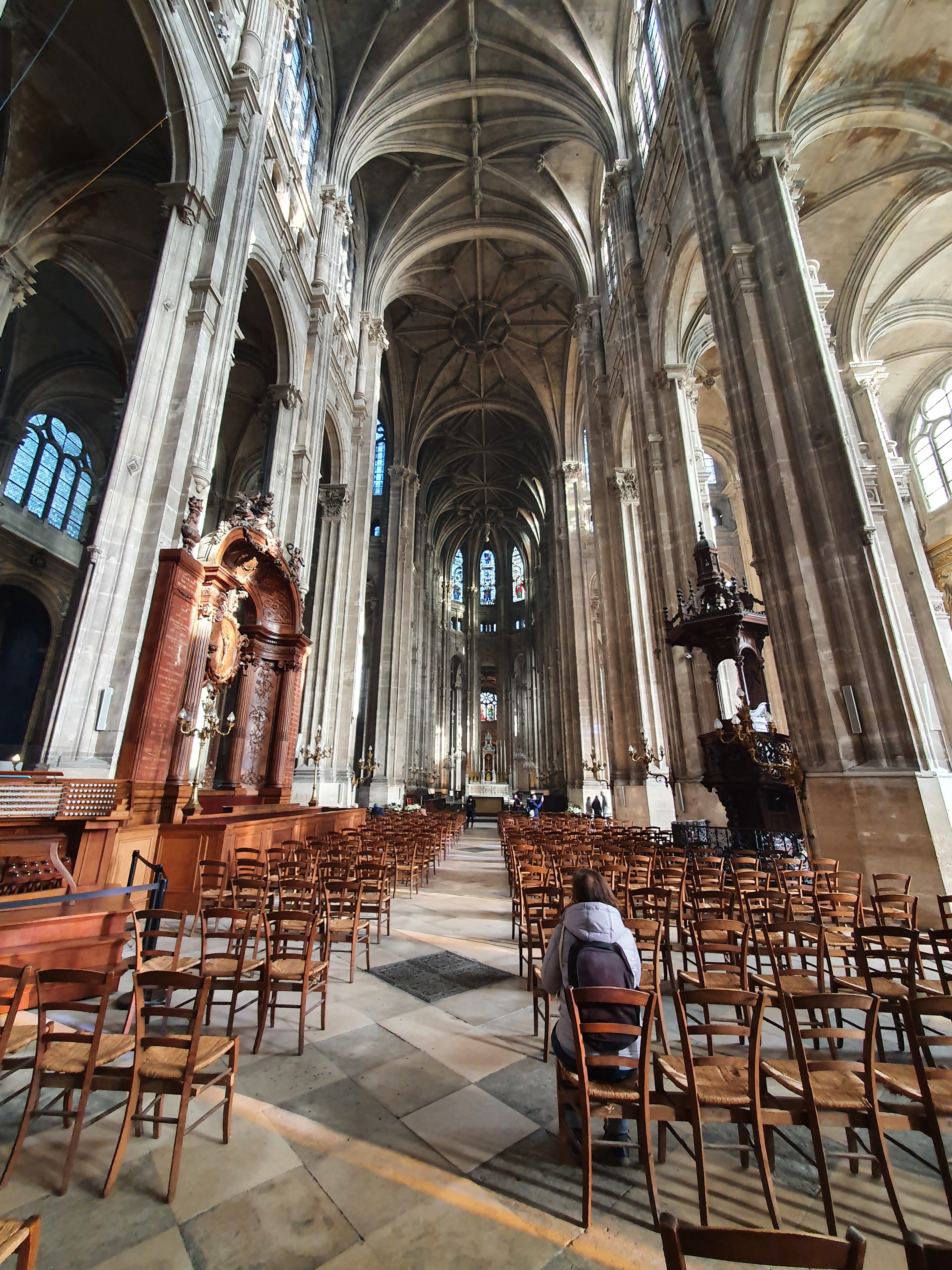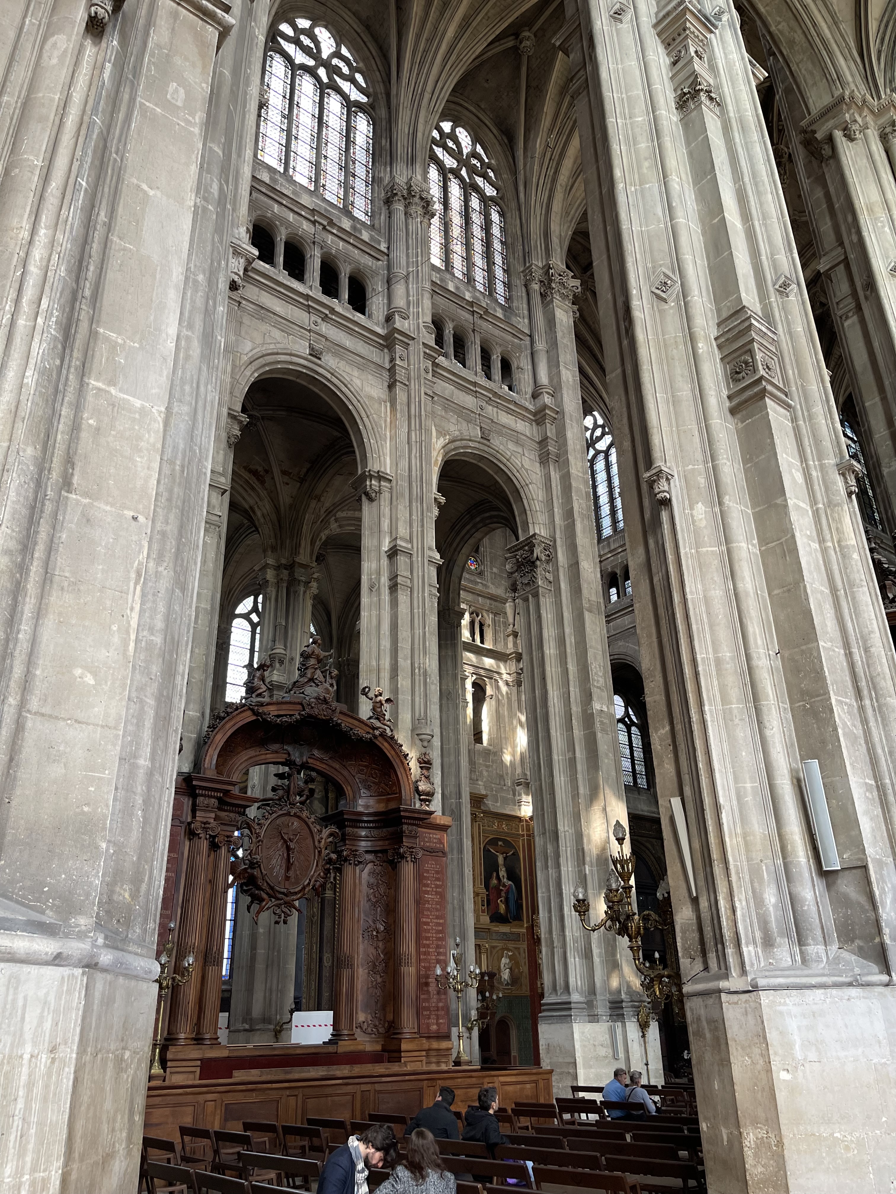 Je n'ai pu visiter l'église car trop de monde mais ai pu m'asseoir pour assister à la messe des charcutiers fin novembre et je dois dire que le chœur de Saint Eustache est exceptionnel grâce aussi à la très bonne accoustique de l'église. Magique ,malgré le froid que je déplore ,pas de chauffage 😌