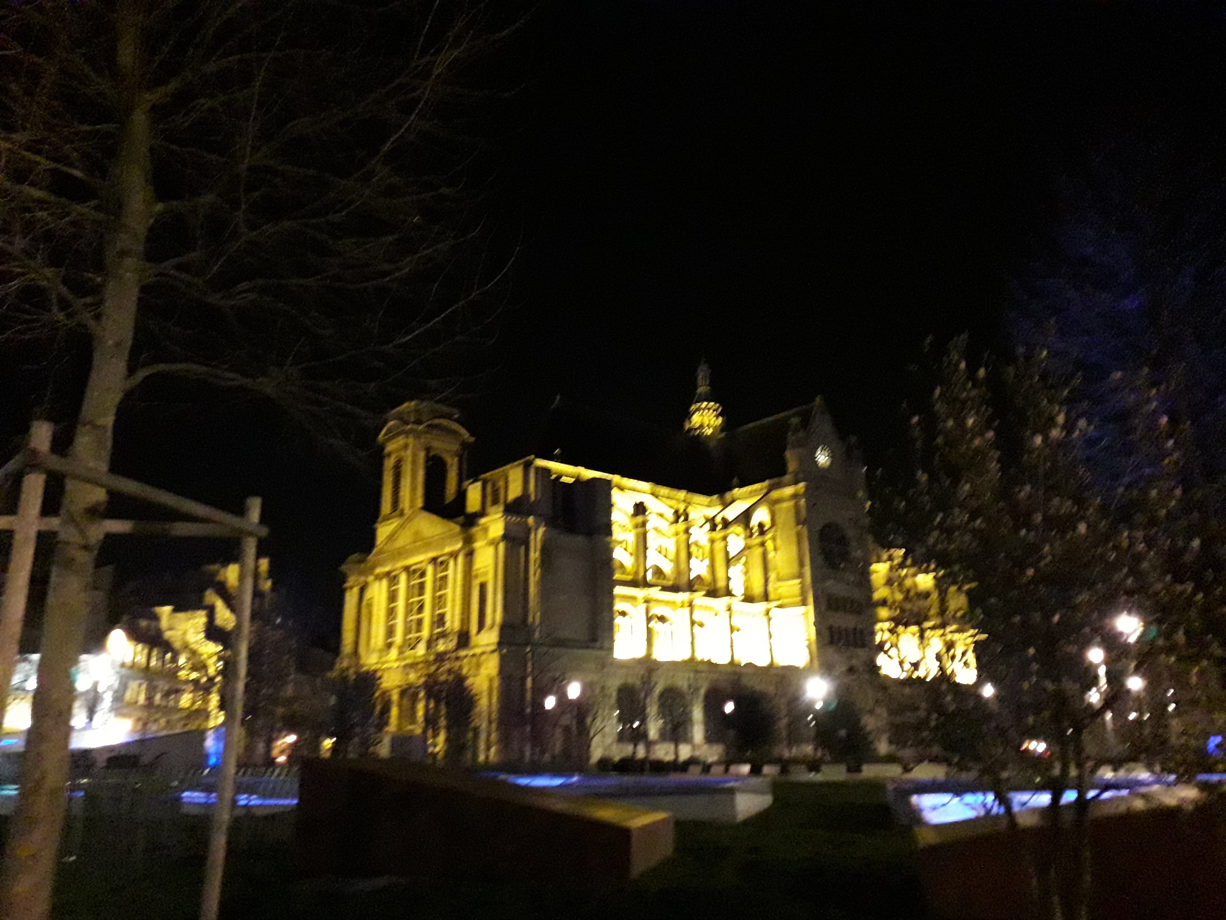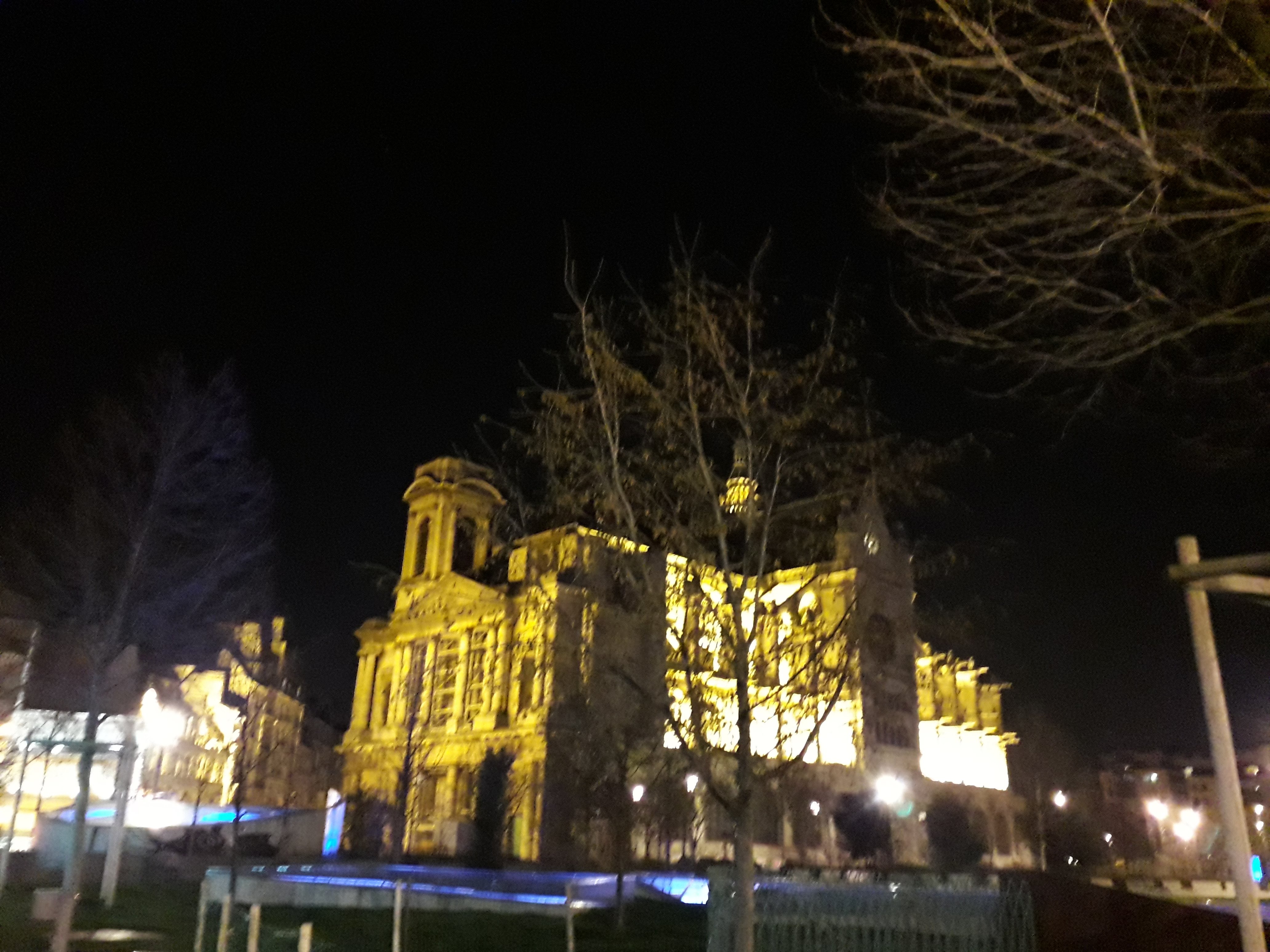 Vue de nuit l illumination de cette petite église est très belle En faire le tour après avoir manger dans une Brasserie du quartier est rejouissant