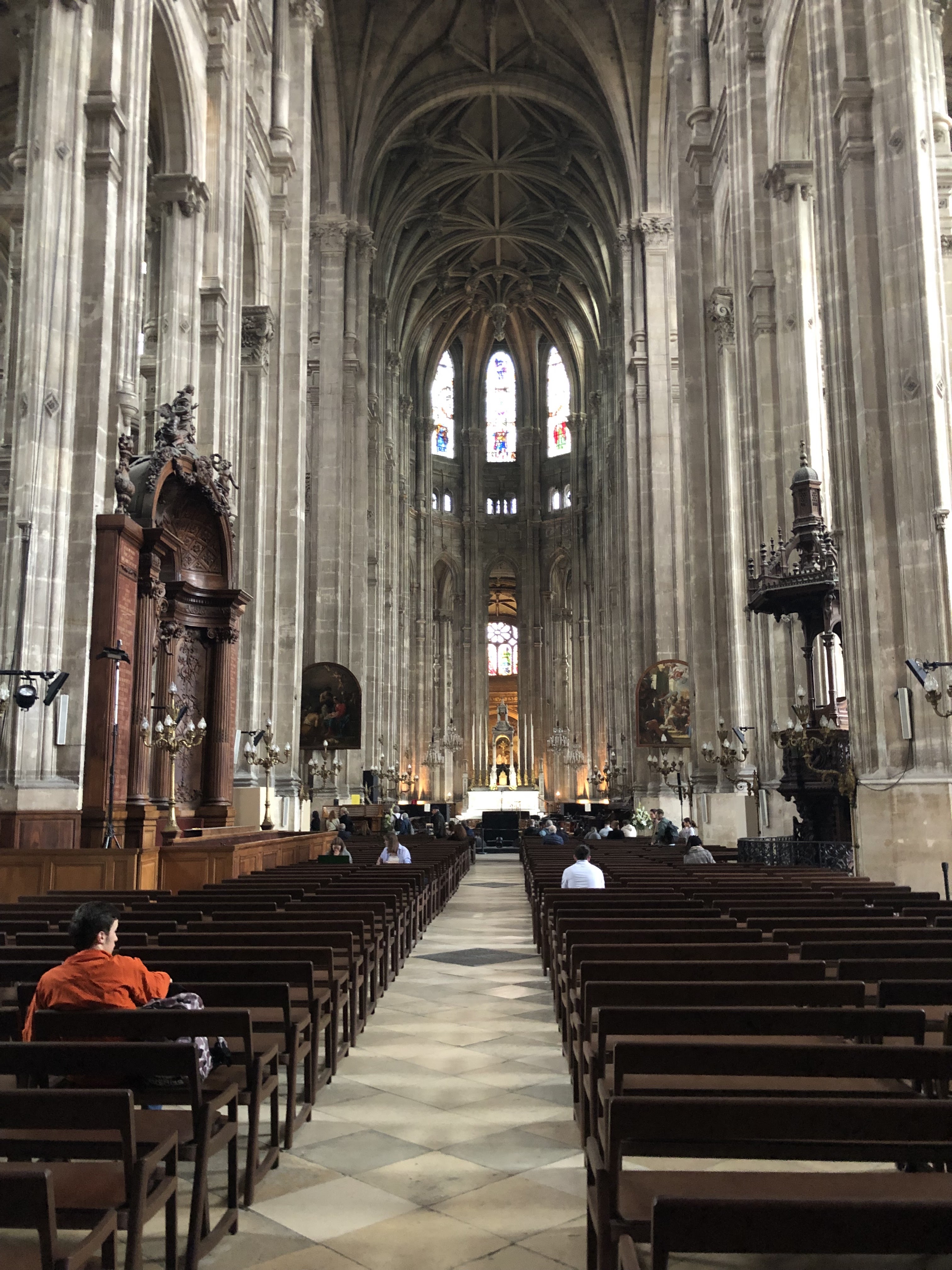 D'extérieur, c'est déjà une très belle cathédrale mais la belle surprise est à l'intérieur. Cet endroit offre une belle pause calme et relaxante à deux pas du bruit des Halles. Nous avons eu la chance qu'un jeune homme joue de l'orgue, qui est magnifique. De nombreuses œuvres vitraux, statues rendent la visite du lieu encore plus intéressante. Une très belle église de style gothique à voir en plein centre de Paris !