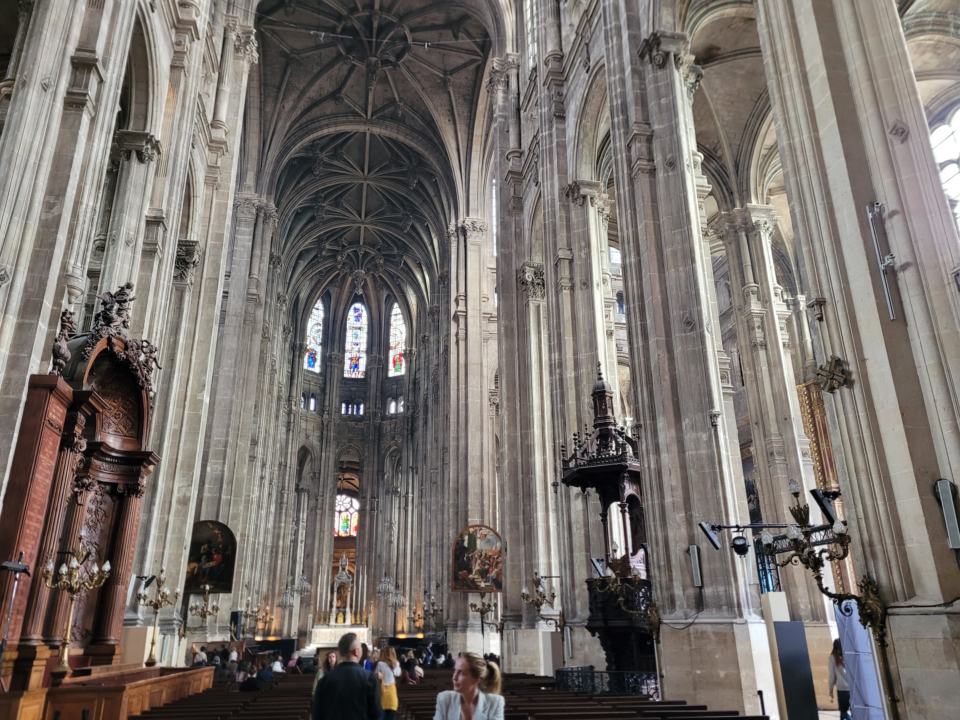 magnifique église, ma préférée. Son architecture un peu atypique la rends encore plus belle. Les lumières, tableaux, orgues, œuvres superbe. Sans oublier bien sûr son rôle premier, celui de se recueillir. Situé sur le parvis des Halles devenu très touristique, donc bruyant. Entrez dans ce lieu de culte et vous serez transporté hors du temps par cette césure entre l'extérieur bondé de monde et ce lieu de silence.