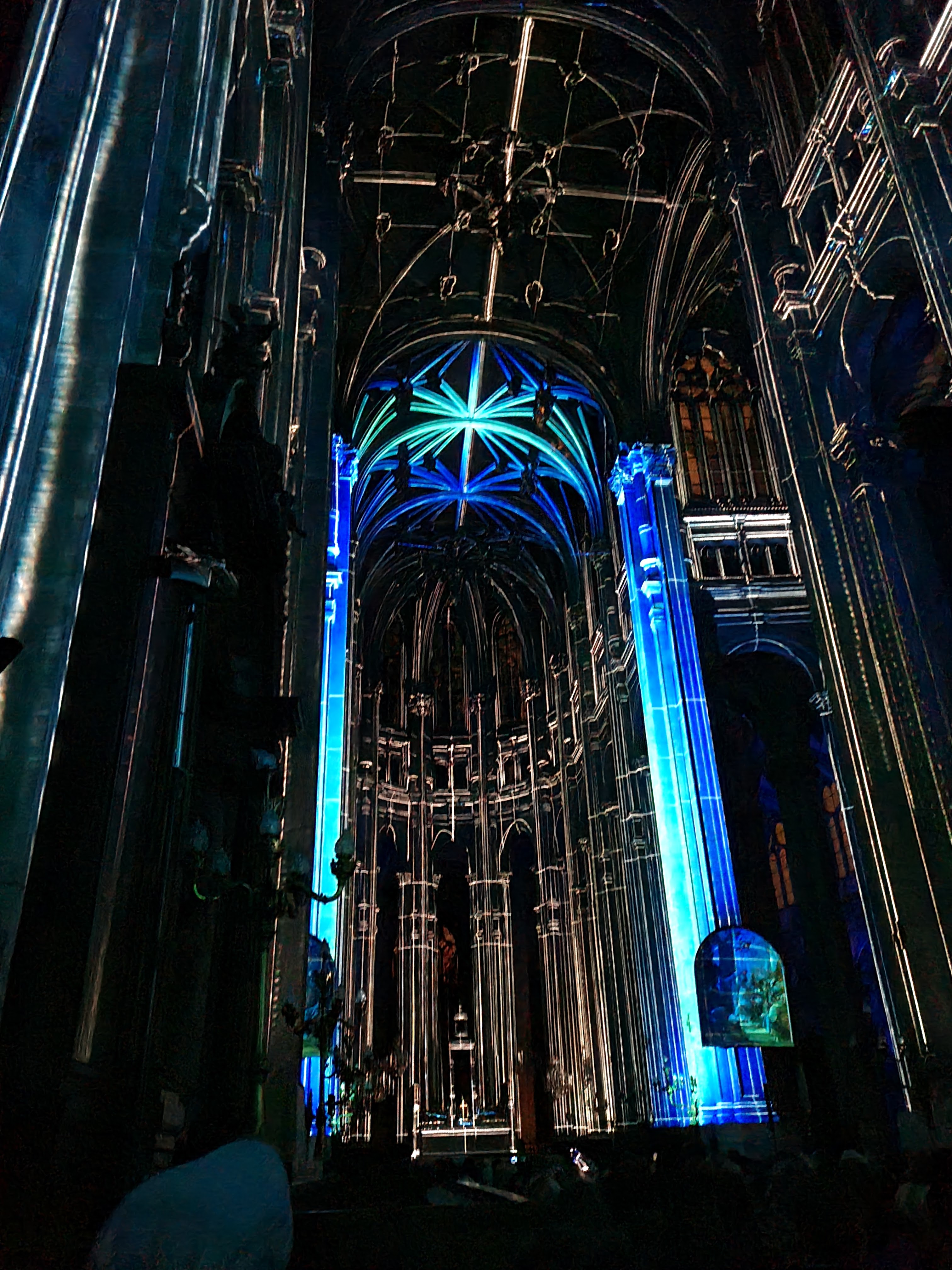 Je suis allée voir le spectacle Luminescence (sans le live) à l’église St Eustache. La lumière met en valeur l’édifice, c’est charmant. Cependant, j’ai trouvé très complexe le principe de placement (catégorie de billet > prenez les places du fond), et le matériel technique très présent.