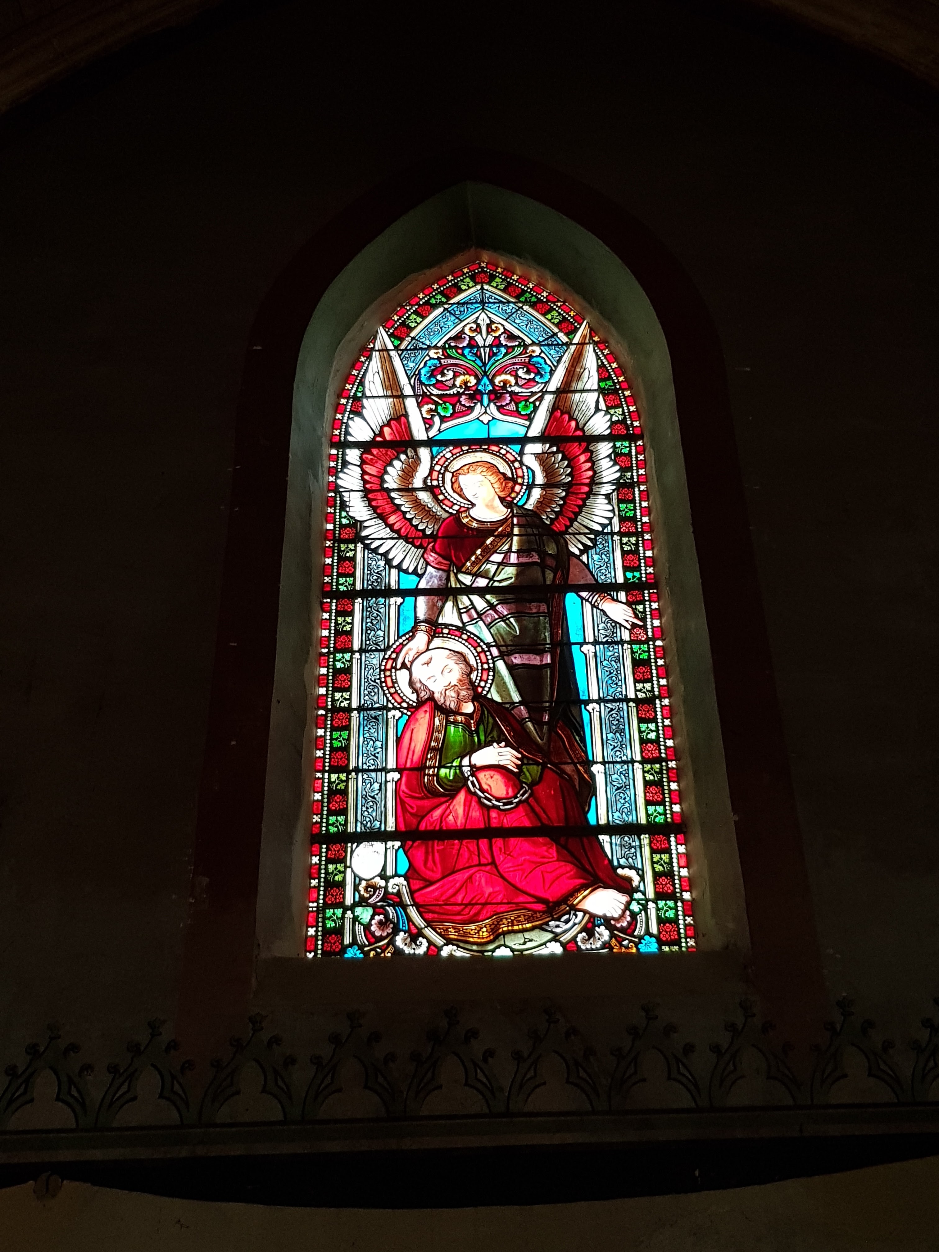 Magnifique vitrail dont la couleur explose pratiquement lorsque le soleil frappe. Éloignez-vous du marché du dimanche pour y jeter un œil. C'est gratuit.