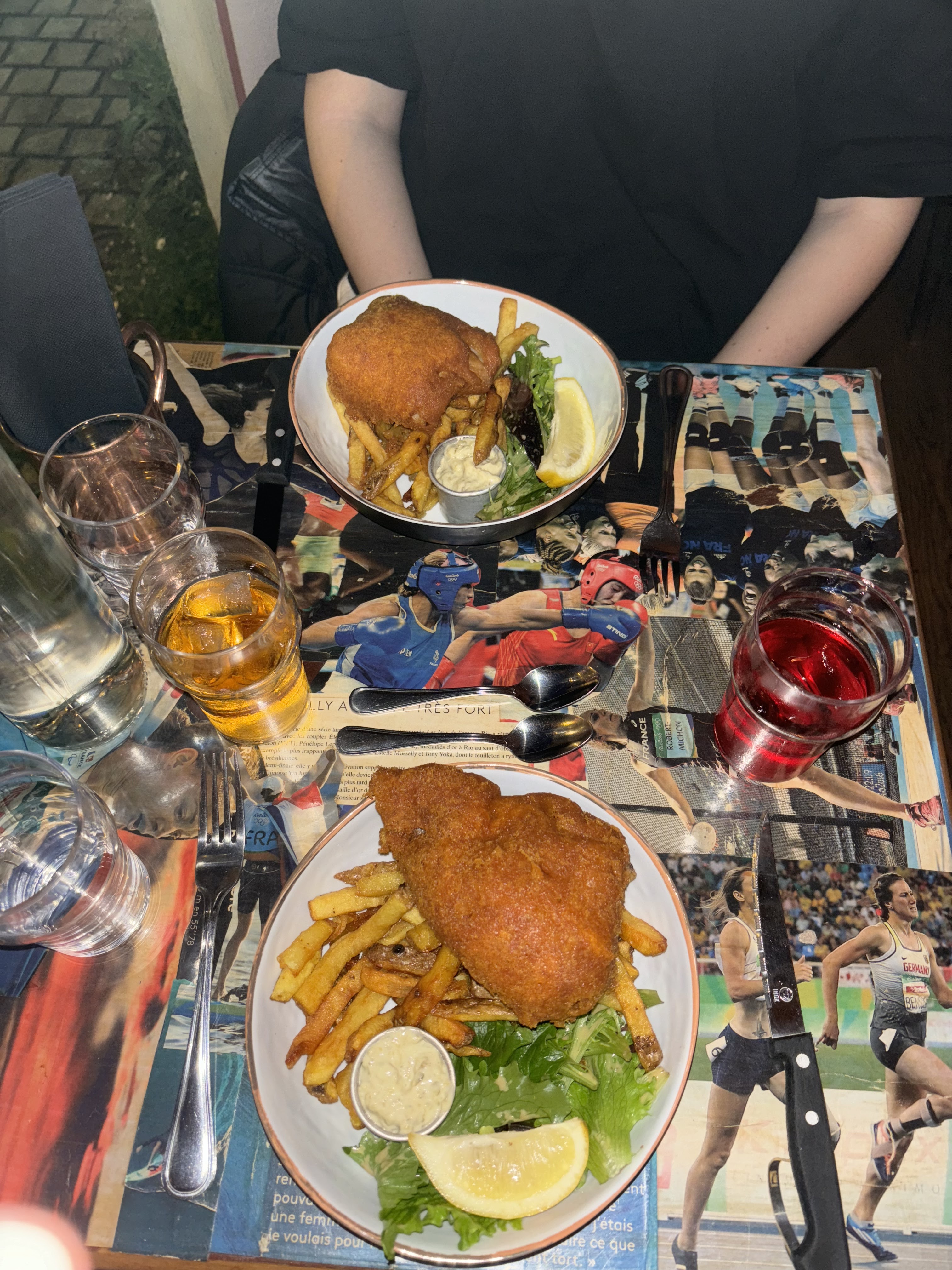 Agréablement surprise du service et de la sympathie du serveur qui c’était occupé de nous, nous nous sommes régalés. Petit bémol sur le fish and ships qui n’était pas assez cuit au milieu car le bout de poisson était épais et le dessert qui manquait légèrement de sucre (le formage blanc au musli). Sinon service comme je le disais au top et tout était très bon n’hésitez pas à y allez avec vos amis c’est très convivial, la terrasse est très sympathique !!😊