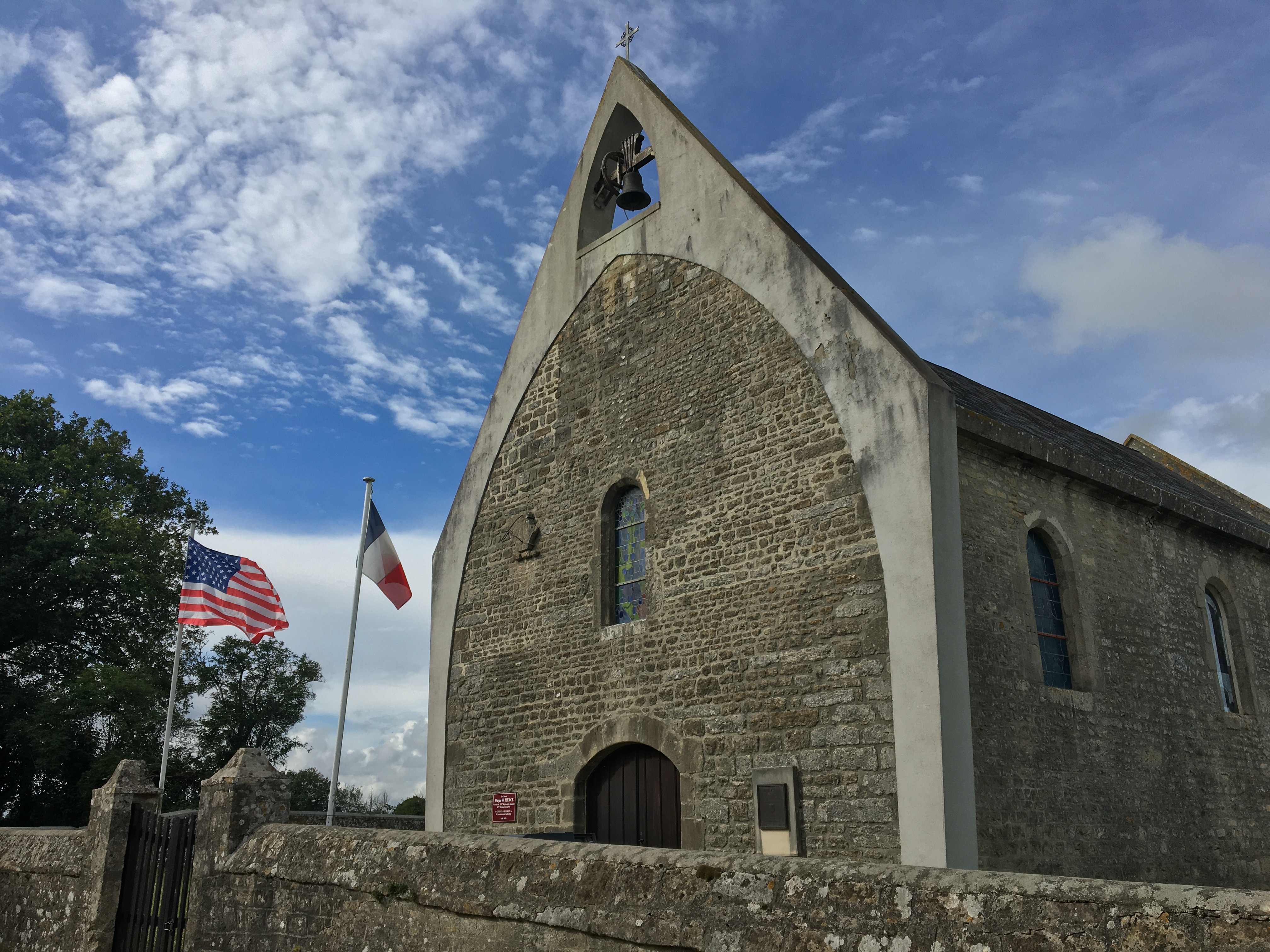 Petite chapelle en bordure des marais ayant été témoin des combat de juin 1944. 2 vitraux évoquant ces événements.