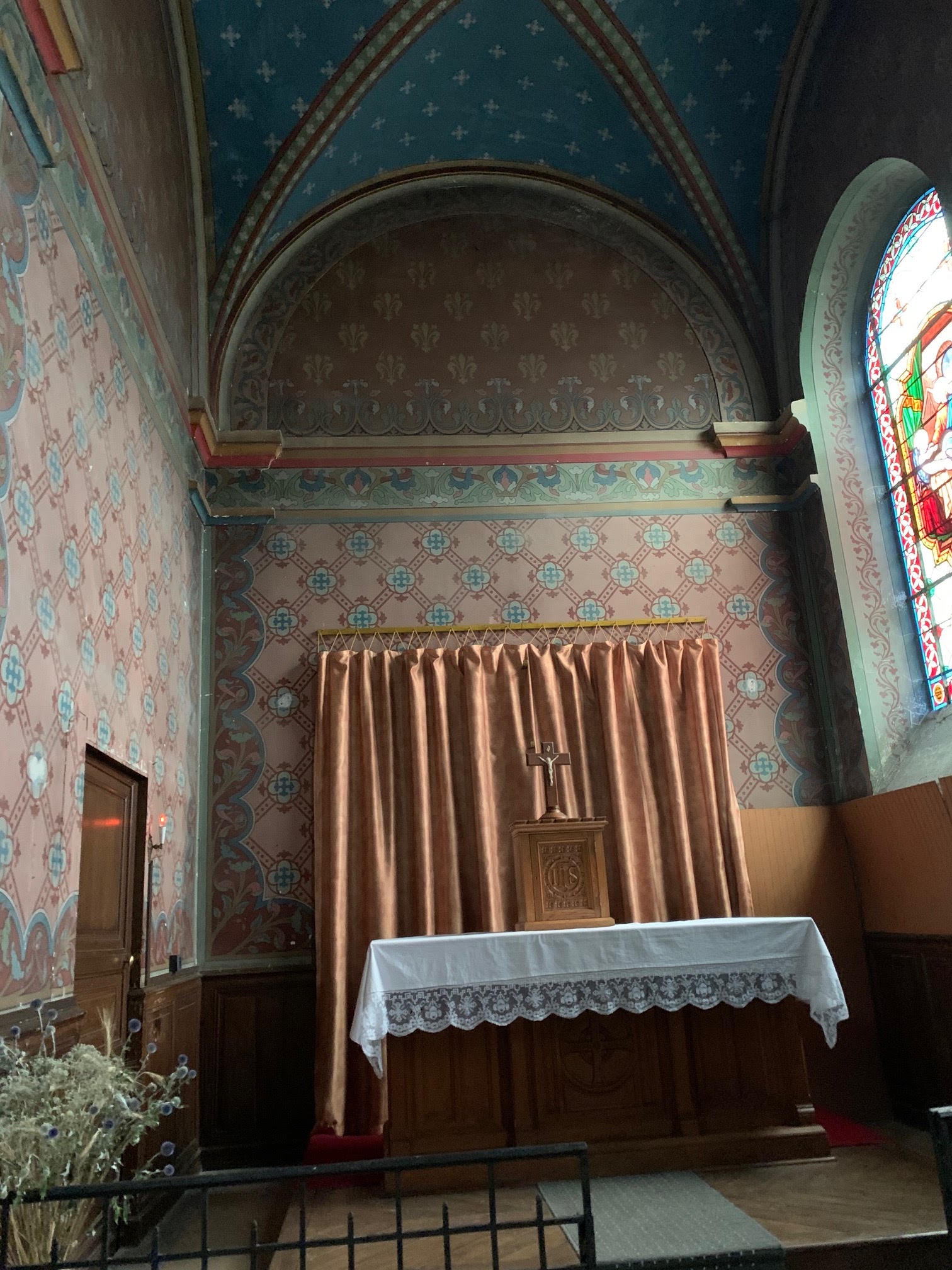 Une petite église,dont la messe en Petite communauté, très simple , j'ai assisté à la messe d'une jolie petite ville mais assez spéciale