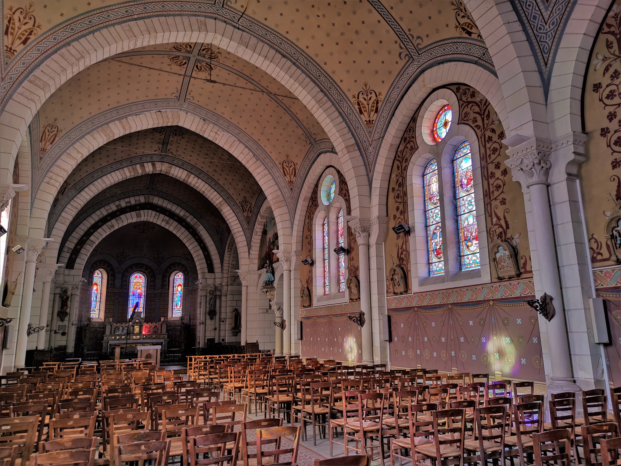 Ouverte et accueillante, je ne peux qu'en encourager la visite. Construite de 1883 à 1888, à l'emplacement d'une église du 12ème siècle, cet édifice néo roman est superbe. L'architecture d'Anatole de Baudot, architecte à Paris, décline toutes les spécificités de l'art roman. Le site de la mairie, dans l'onglet commune propose un imposant PDF sur l'ancienne église et la nouvelle église. Décors peints, tableaux et peintures murales apportent à cette église chaleur et distinction. Les vitraux sont magnifiques, les stalles du 18ème aussi, les autels et le monuments aux morts méritent notre attention. J'ai beaucoup aimé la visite de cette église Saint Flovier. Anatole de Baudot, élève de Eugène Viollet-le-Duc, épaulé par monsieur Guitton, maçon, monsieur Bordés, charpentier, et monsieur Grasset, sculpteur, a dirigé un chantier pour une belle réussite architecturale. Ouverte et accueillante, je ne peux qu'en encourager la visite.
