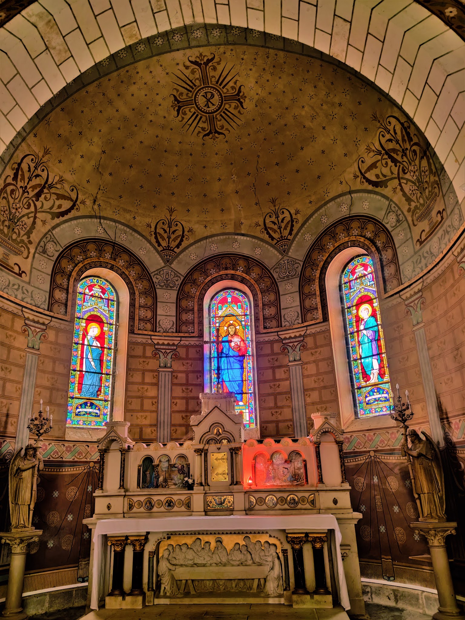 Un endroitavec des vitraux magnifiques et un chemin de croix magnifique