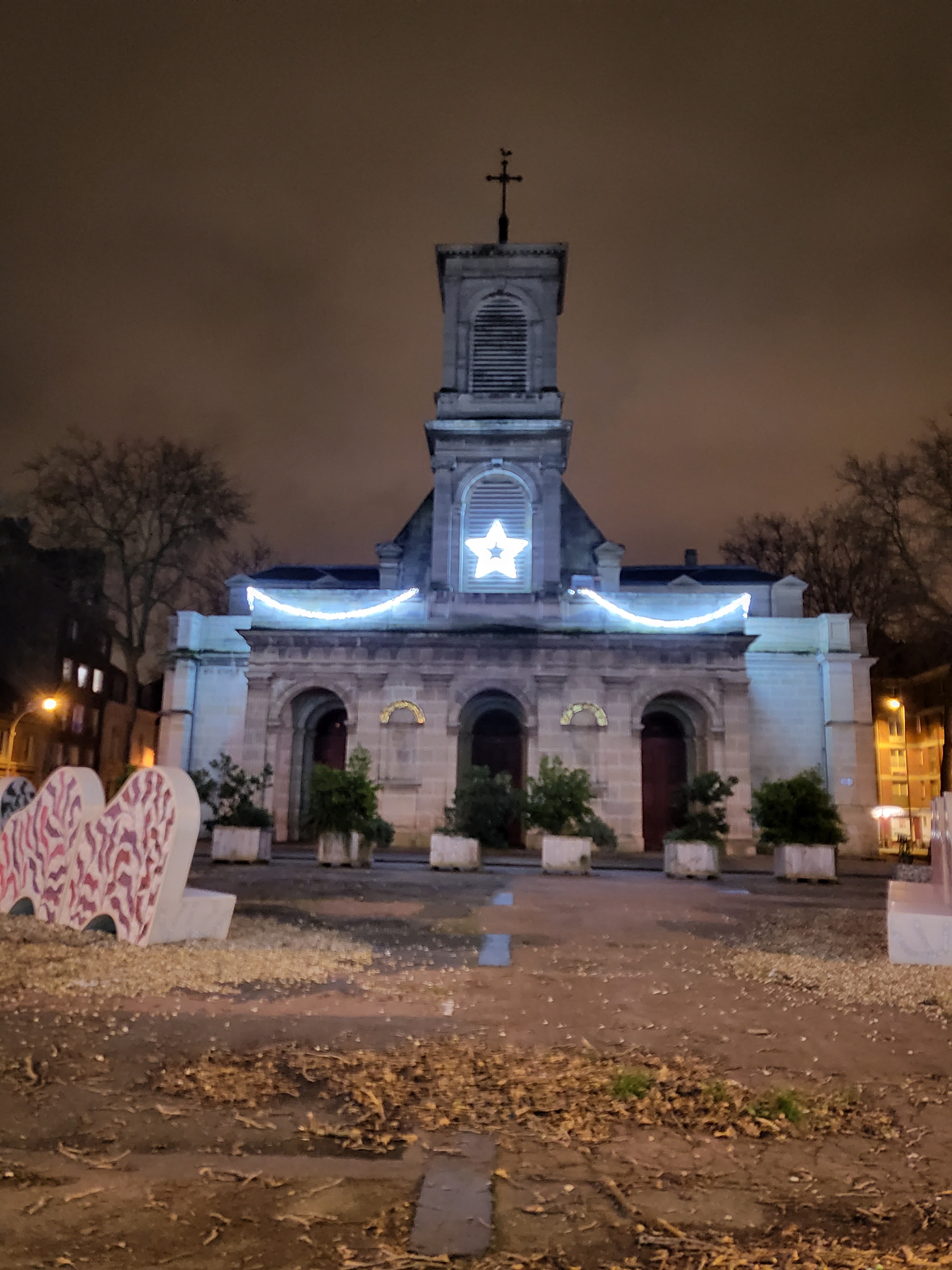 Petite église, pas très impressionnante mais belles lumières pour Noël