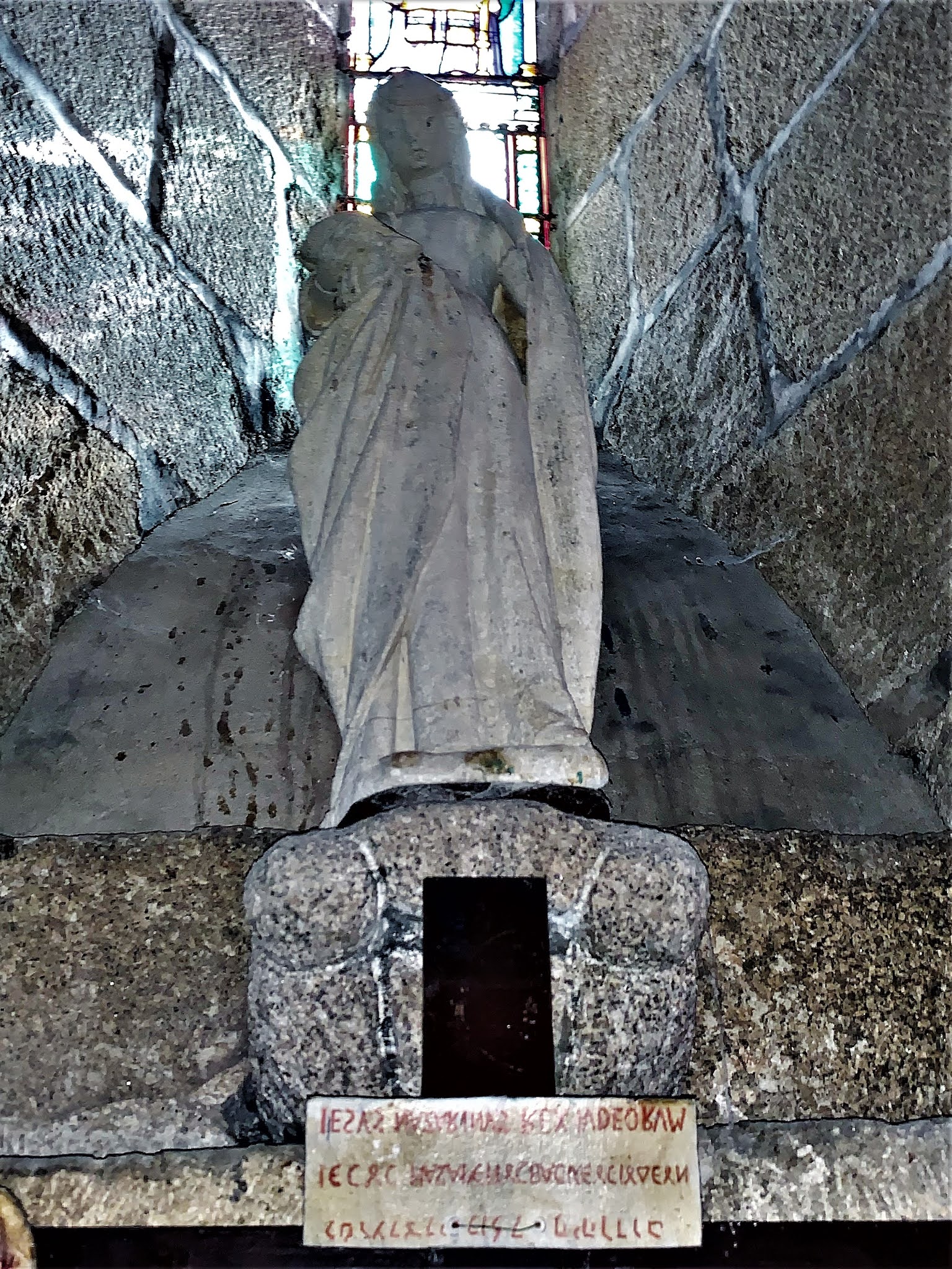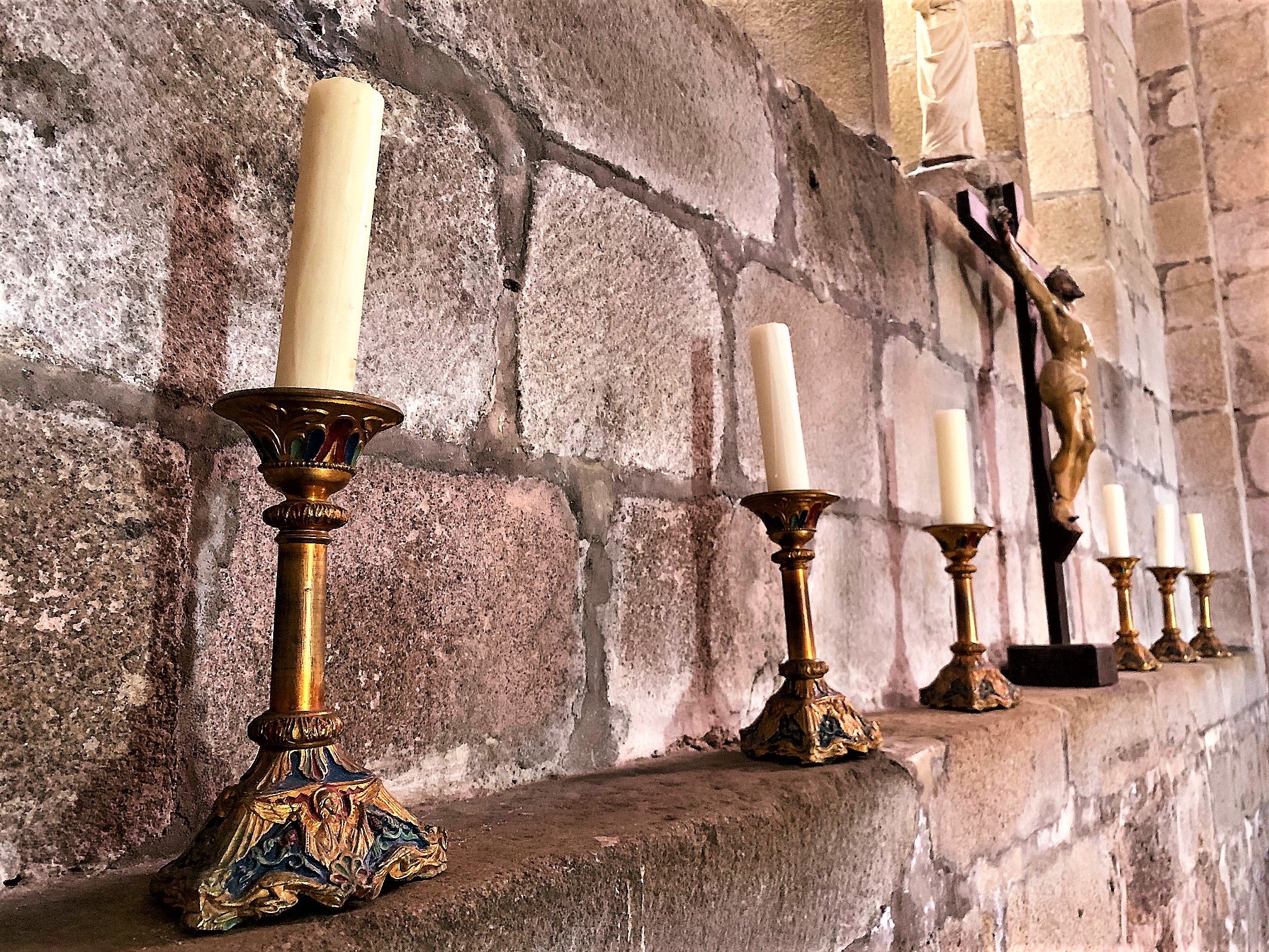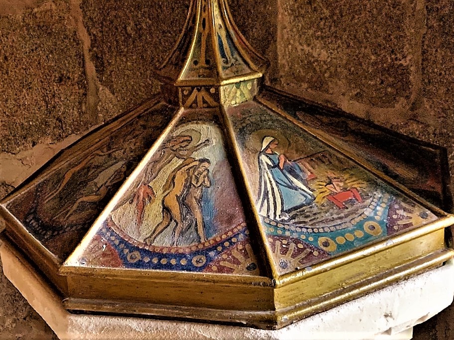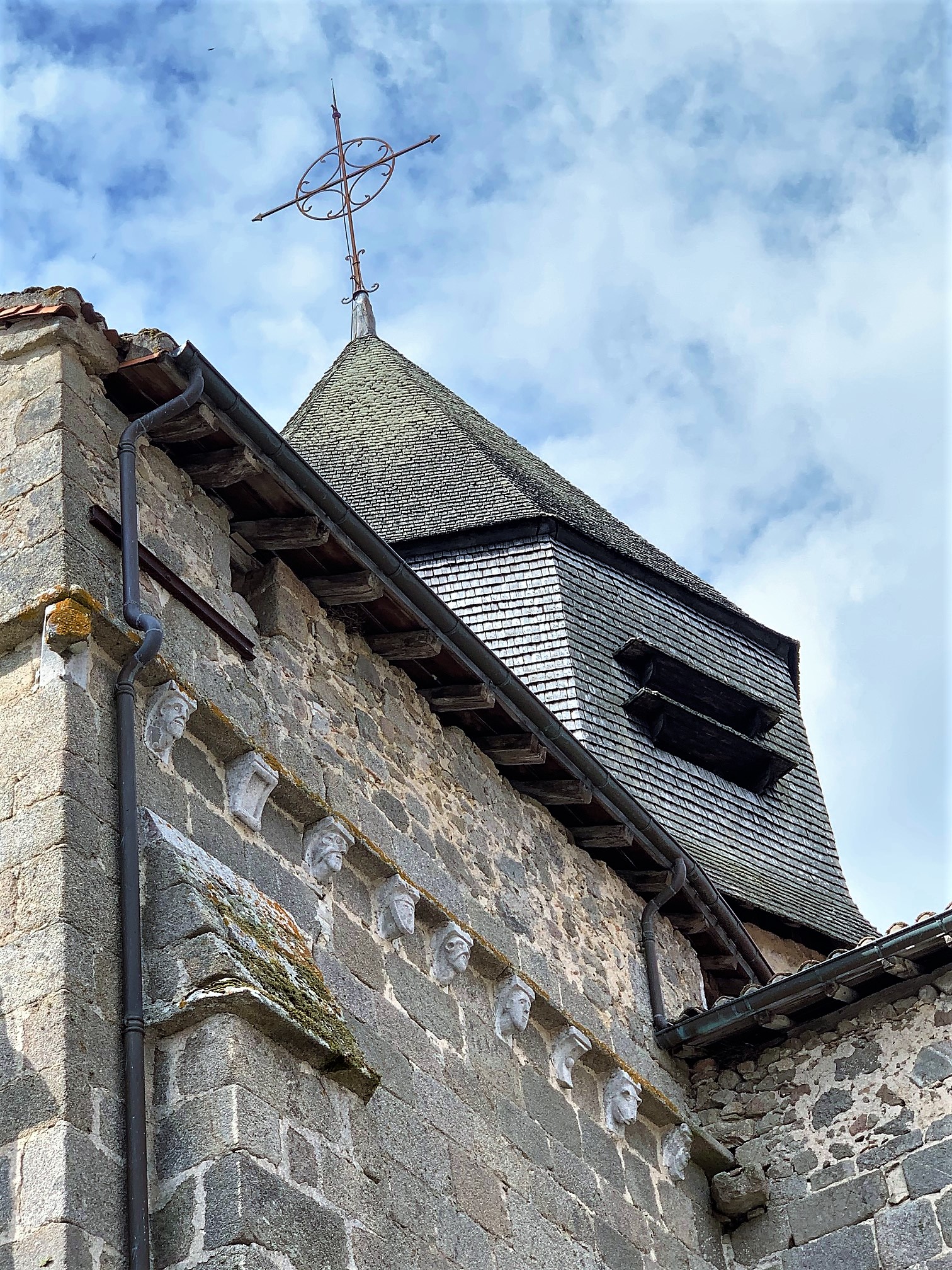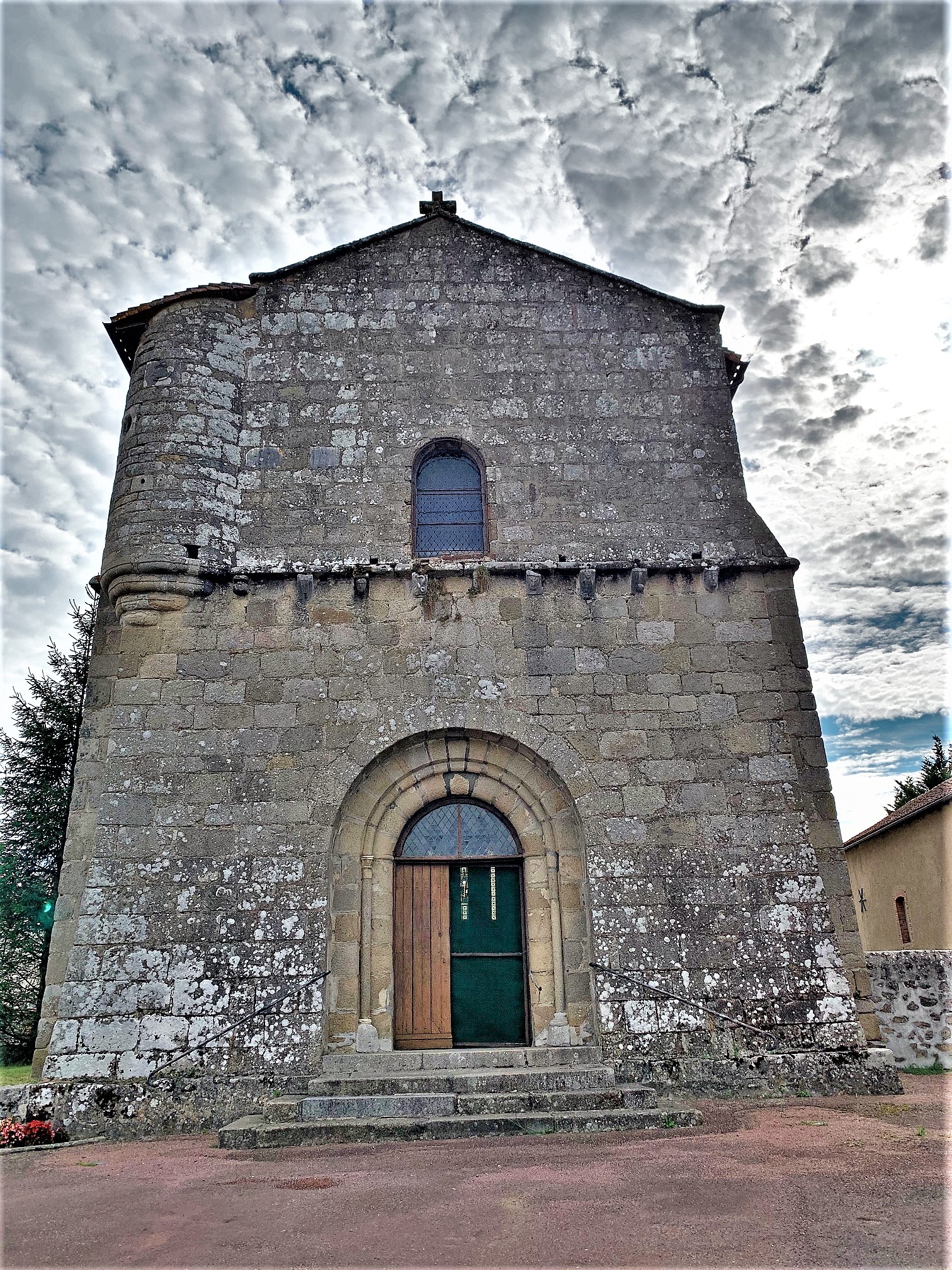 Une église fortifiée du 12ème siècle, authentique et caractéristique. Une église du 12ème siècle très authentique, et typique par ses ajouts défensifs, communs à d'autres églises fortifiées de la région. La nef, le chœur et le transept ont été rehaussés avec ouvertures de tirs, une échauguette bâtie au nord ouest de la façade, tout cela sans doute au moment des guerres de religions. La coupole de la croisée du transept est un modèle du genre, les voûtes en berceau des bras et en berceau brisé de la nef nous plongent en période romane. Le chevet plat est ouvert de 3 baies fort élégantes, le chœur est voûté en croisée d'ogive. Une remarquable statue de la vierge, du 15ème siècle, en pierre, est abritée dans l'église. Une remarquable statue de la vierge, du 15ème siècle, en pierre, est abritée dans l'église.