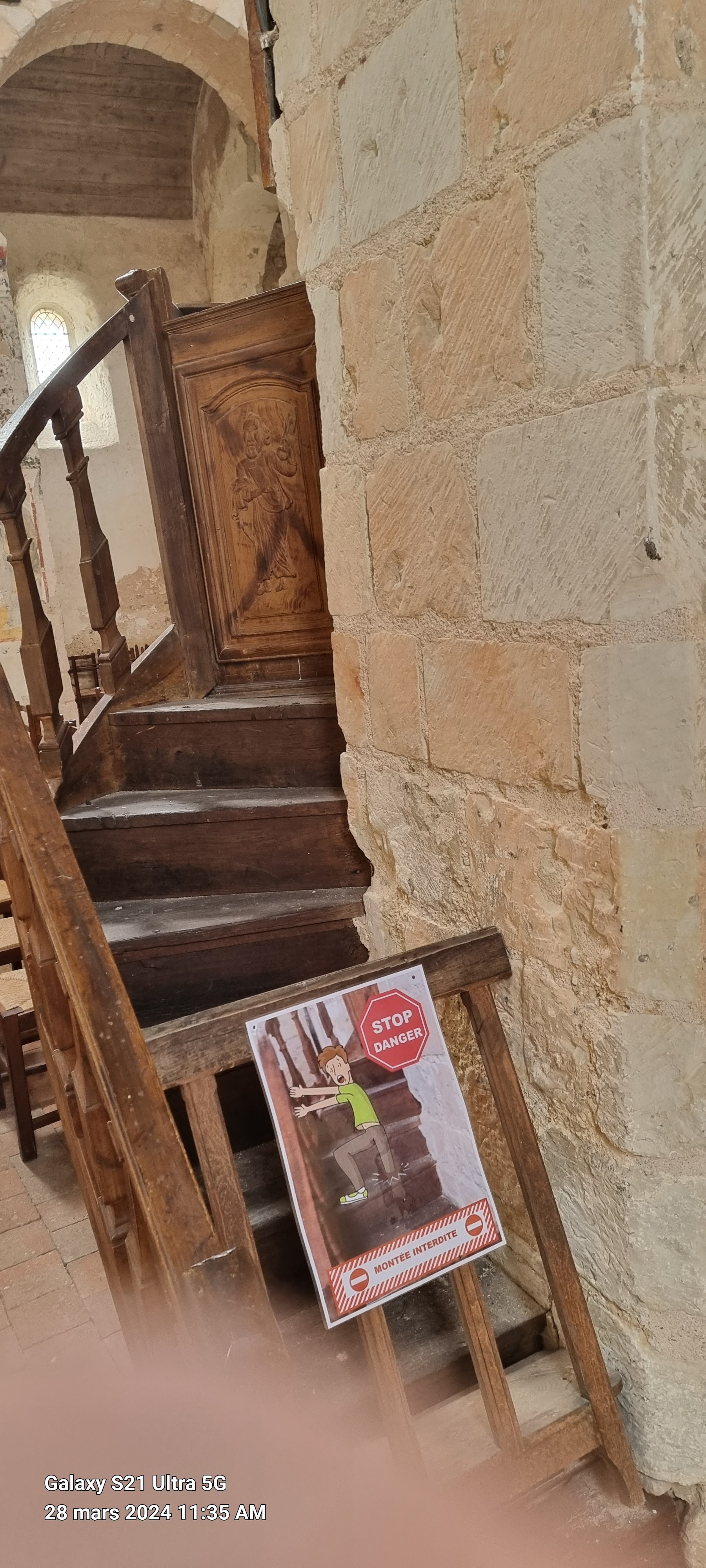 Surprenante avec ses peintures murales en cours de restauration.
