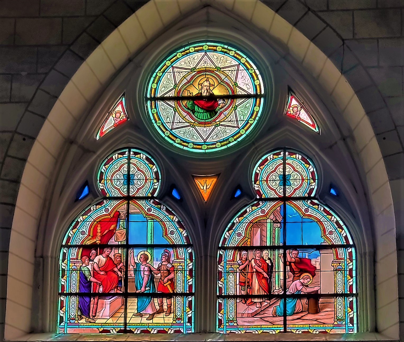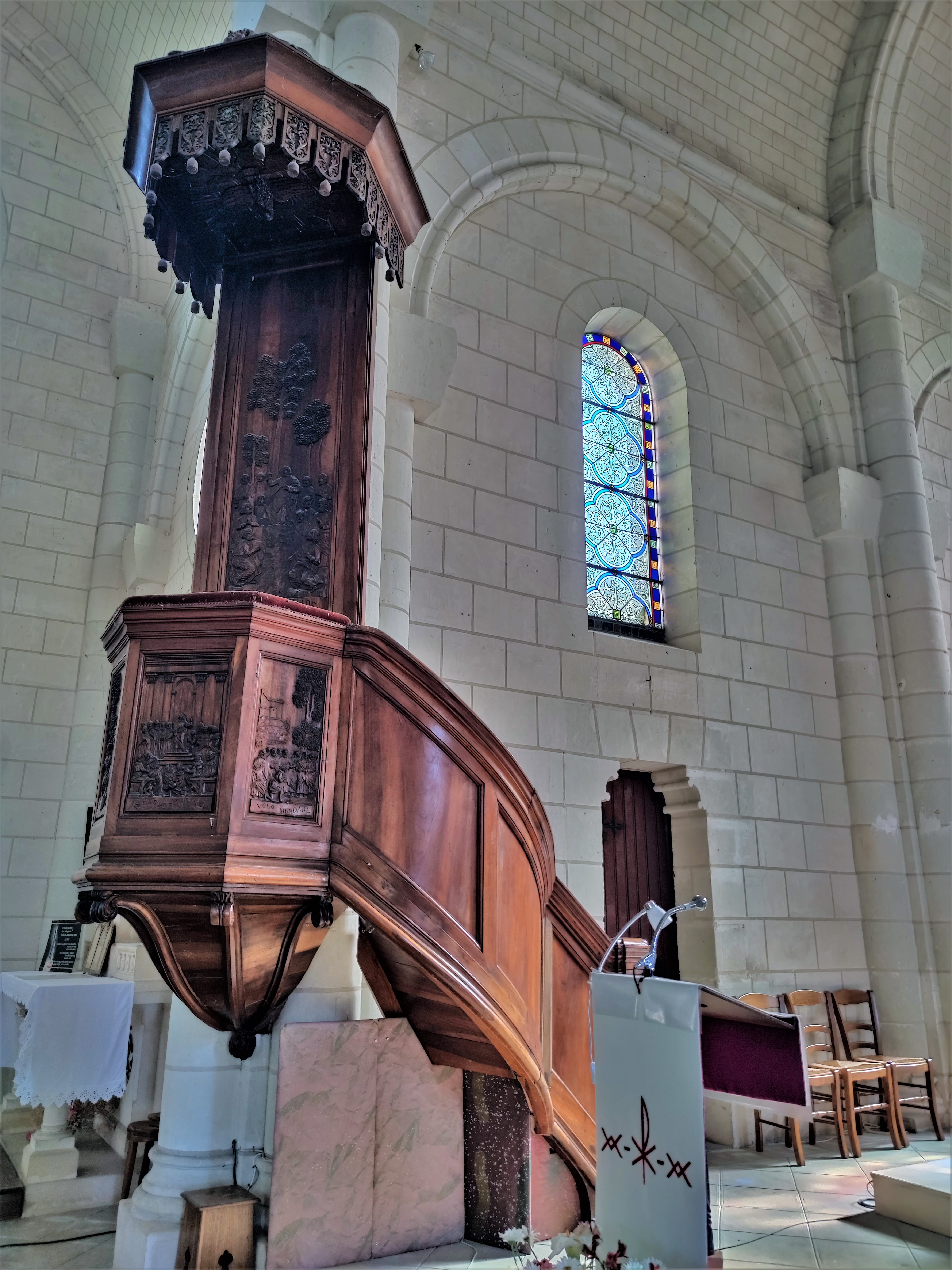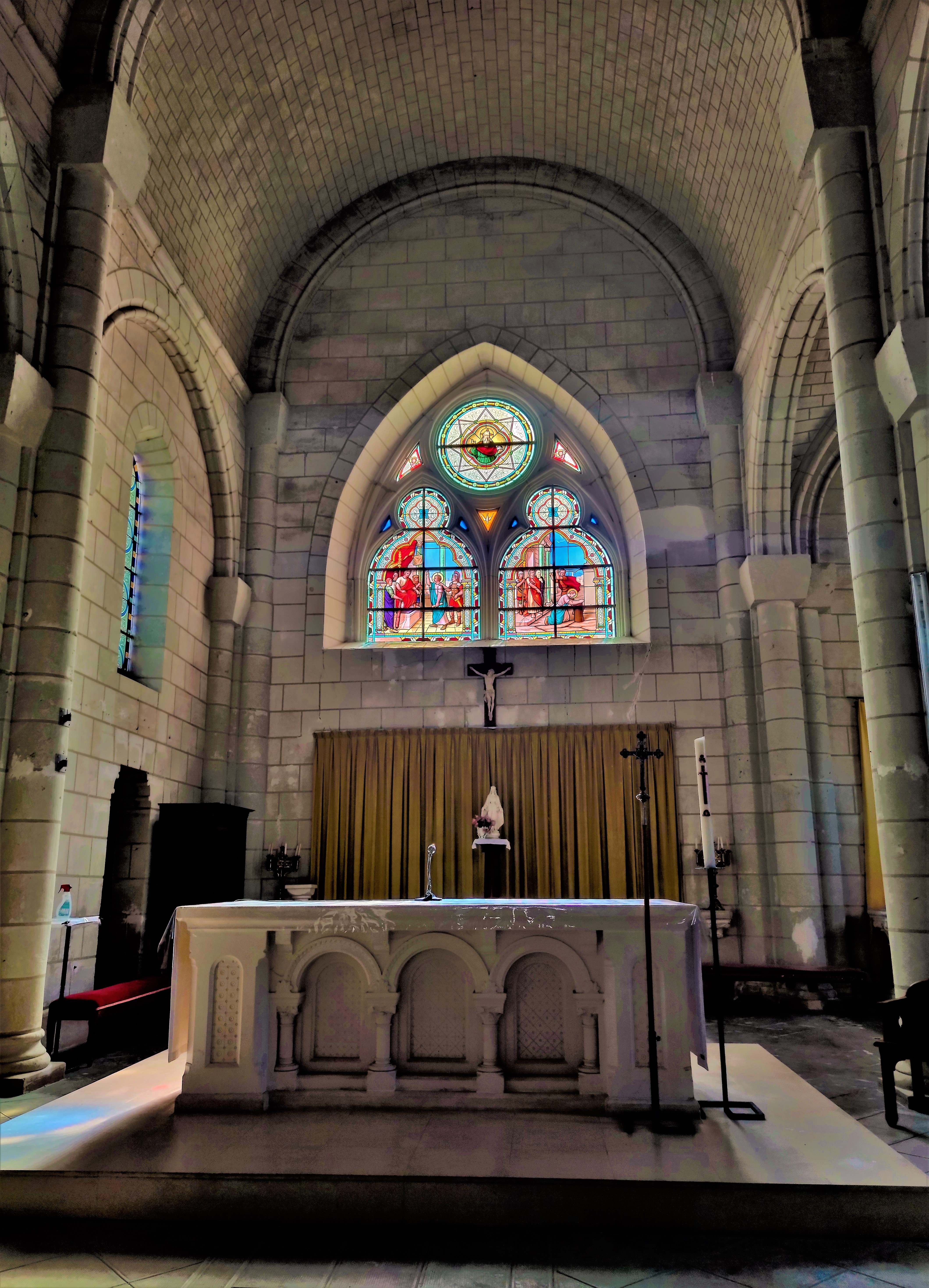 La mairie m'a redirigé vers un paroissien qui est venu m'ouvrir, je le remercie. La première église fut construite au 12ème siècle, on la reconstruisit au 14ème siècle. Ce dernier édifice semblait ne plus convenir au 19ème siècle, de part son état général et son allure archaïque. Les premières années du 20ème virent la naissance et la réalisation d'un projet de reconstruction. Les trois vaisseaux de la nef sont voûtés selon les travées, en successions de croisées d'ogives et de berceaux. Si quelques éléments anciens ont été réutilisés, ce n'est pas très visible. Les baies en plein cintre et les oculus sont dotés de vitraux non historiés, seul le chœur possède une ouverture ogivale avec vitraux historiés. Une église qui ne m'a pas séduit, elle reste accueillante.