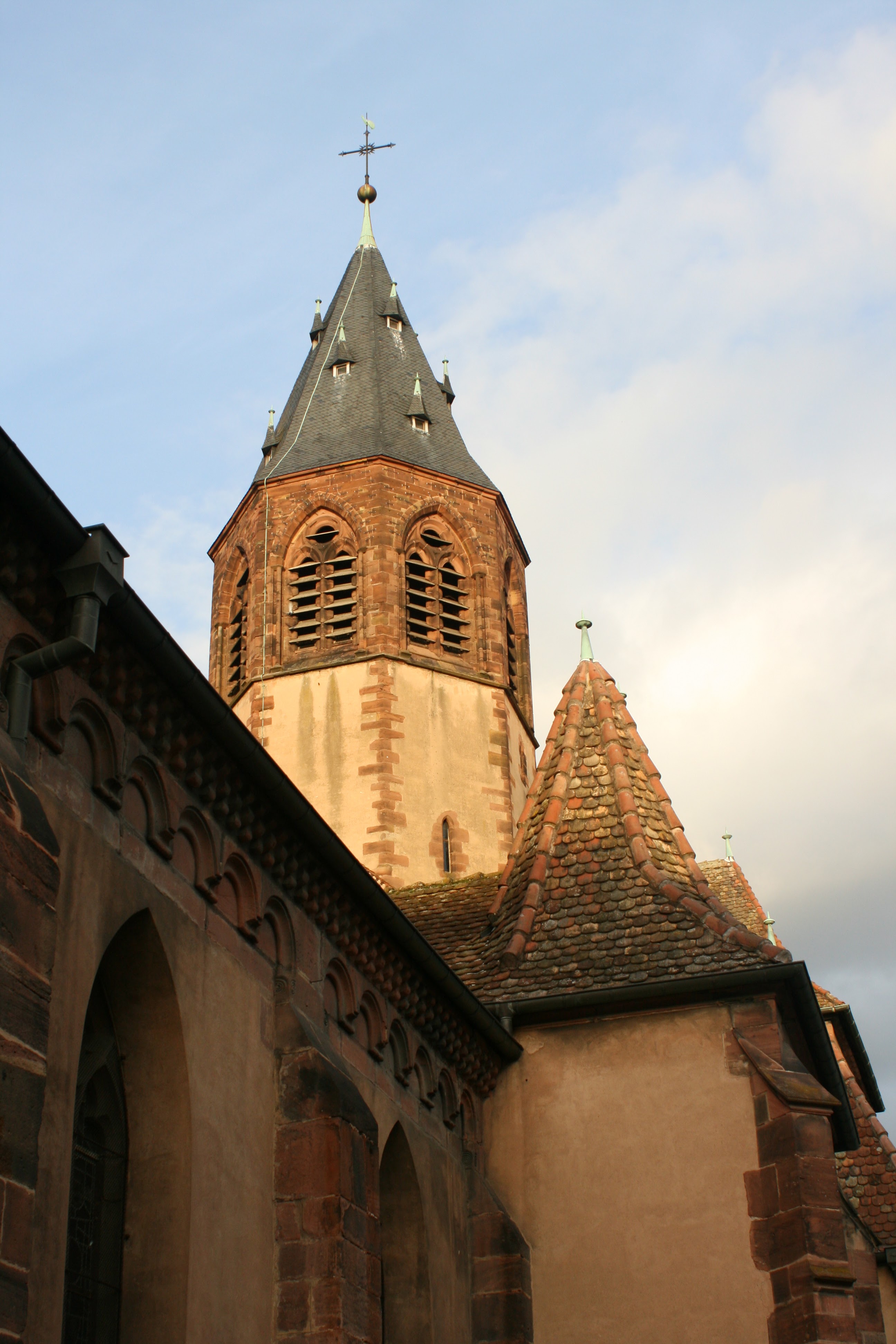 Très belle église de 1611 quand même pierre rouge très très solide et lourde