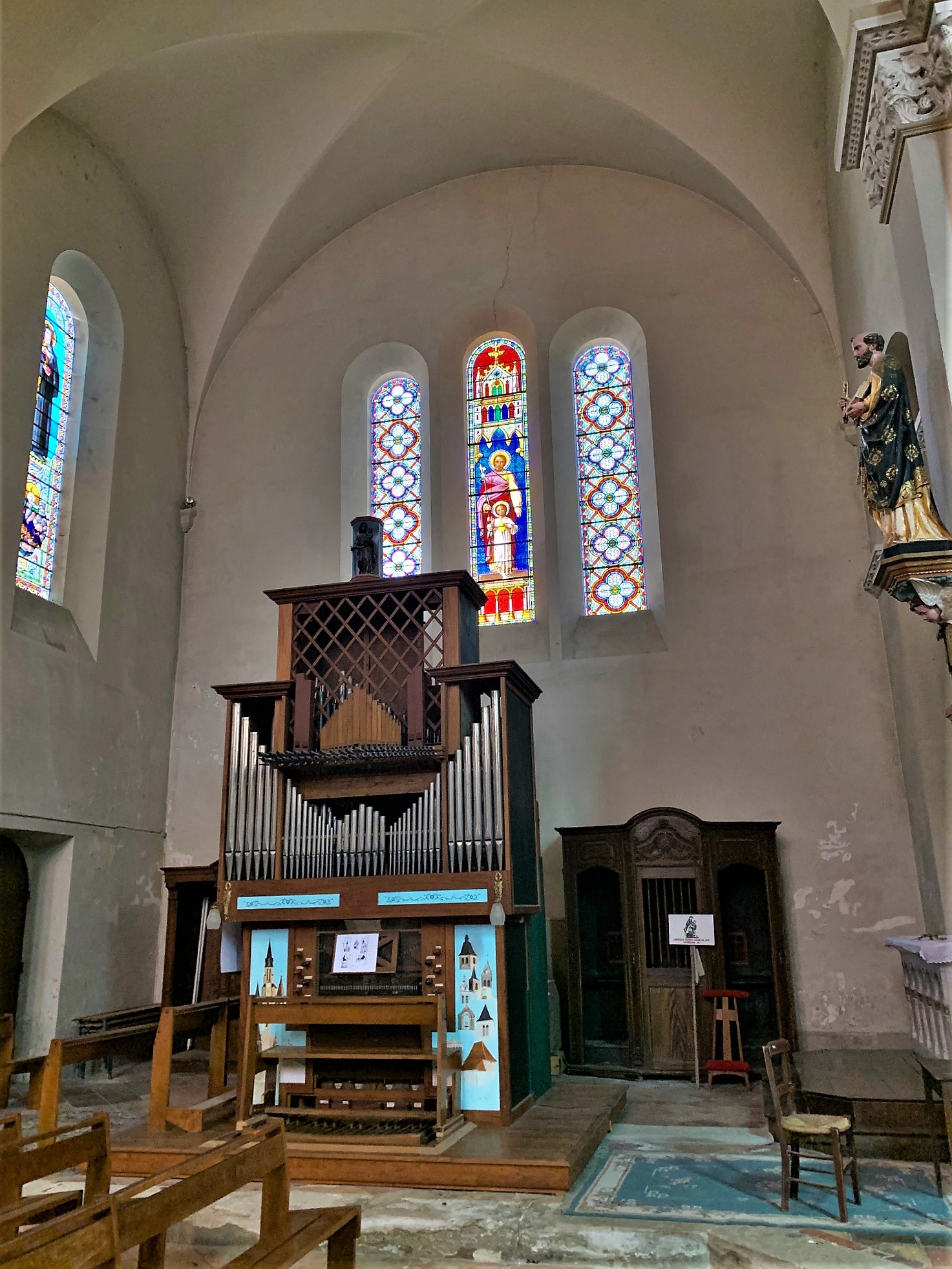 Très belle église avec un orgue très joliment décoré et des vitraux superbes