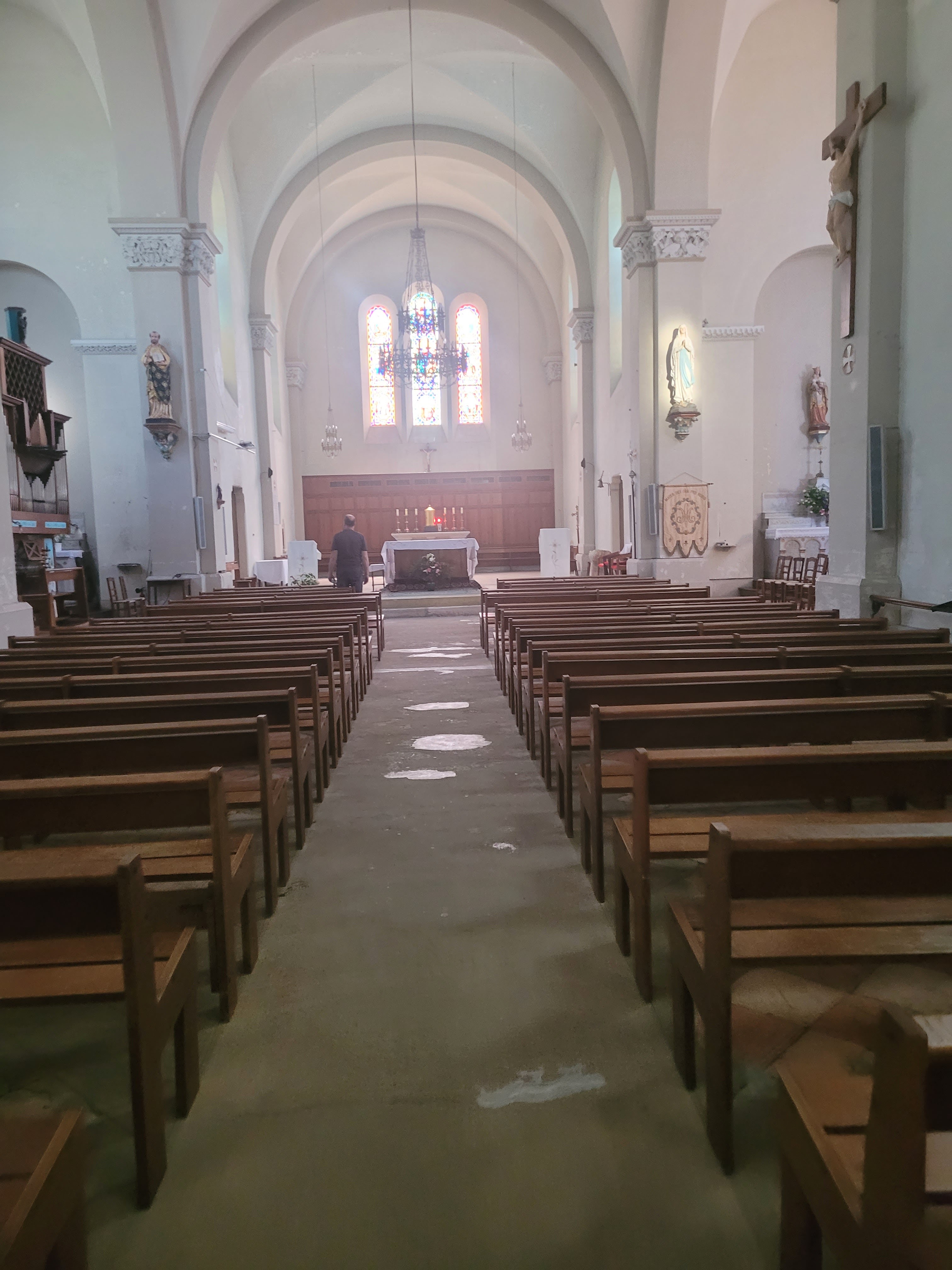 Belle église épurée avec un prêtre dans l'amour de sa foi et qui sait la prodiguer avec une messe posée, claire et longue où chacun peut se retrouver en toute simplicité. Bravo mon père