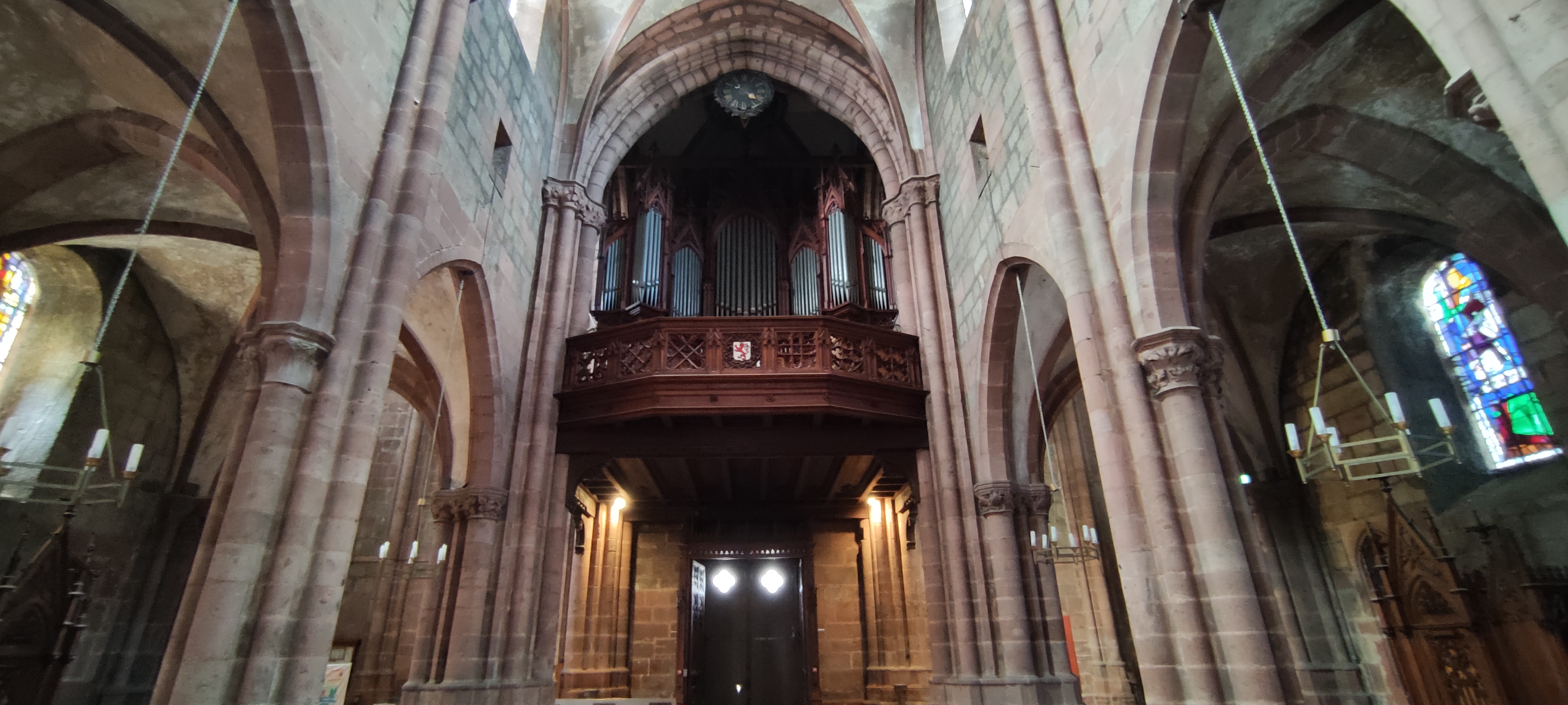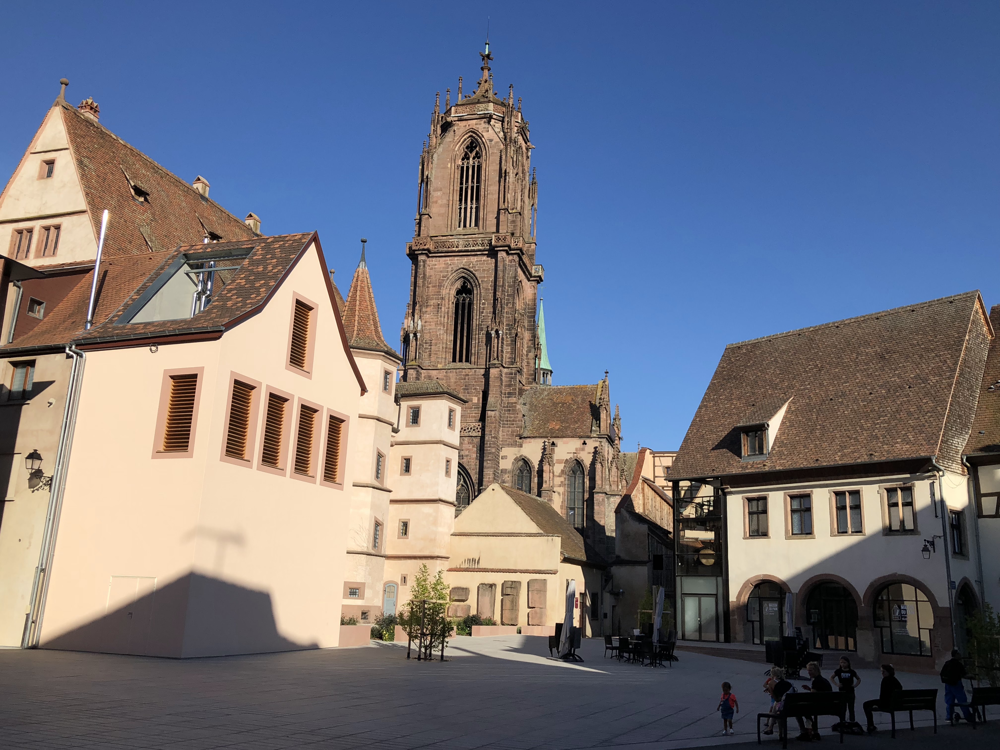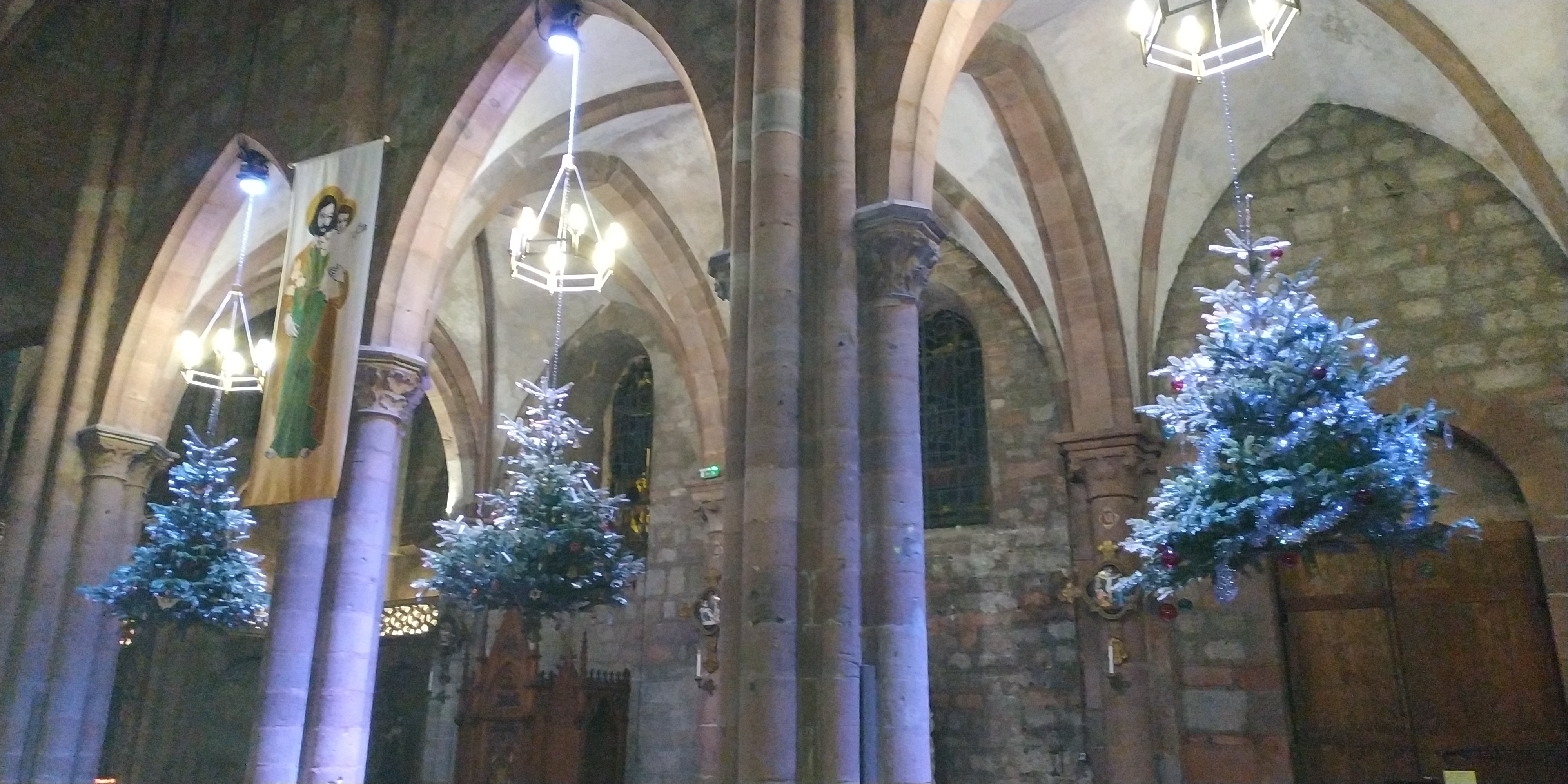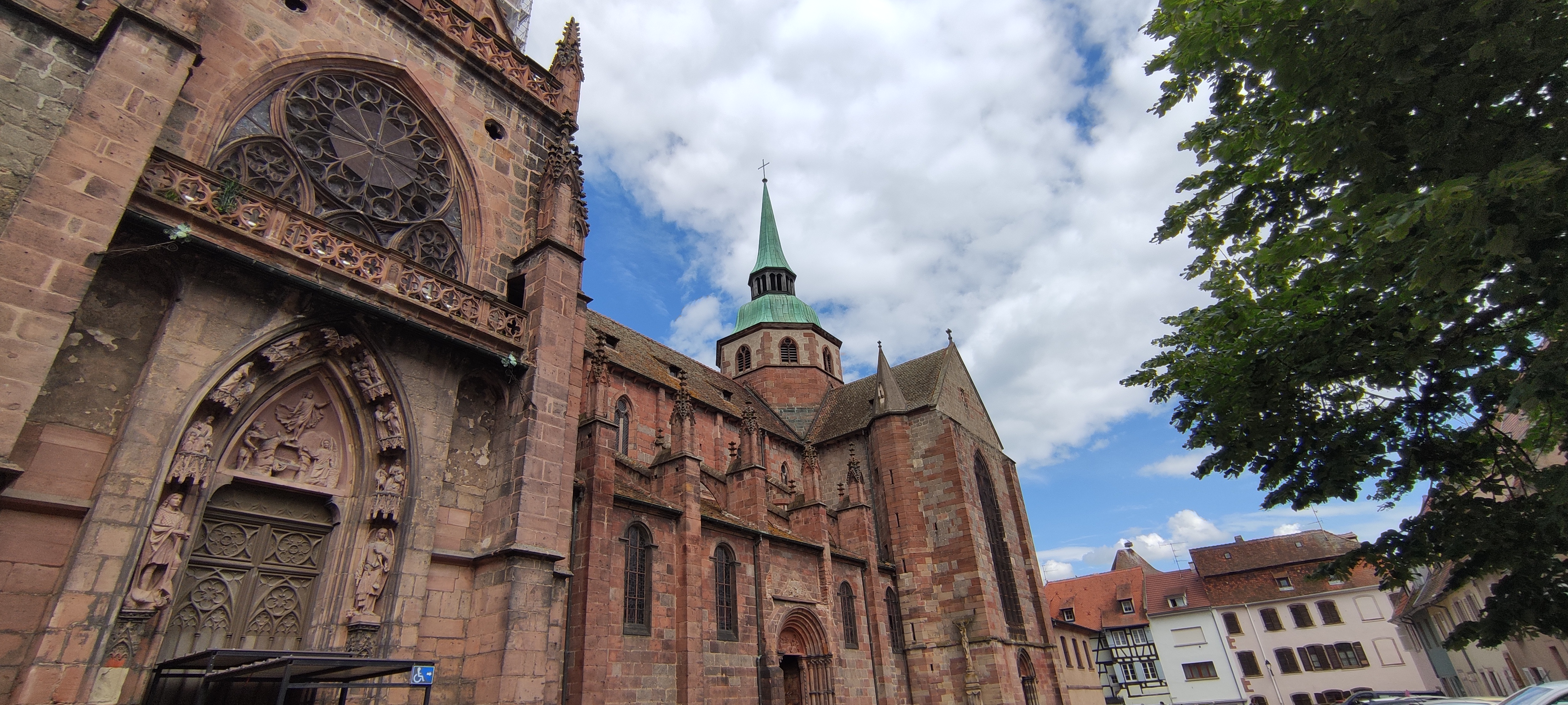 Splendide église gothique en gres rose. Vitraux du 15e siècle. Lors de la période de l'avant, on y suspend des sapins comme au moyen âge. Un parcours y conte l'histoire des décorations de Noël