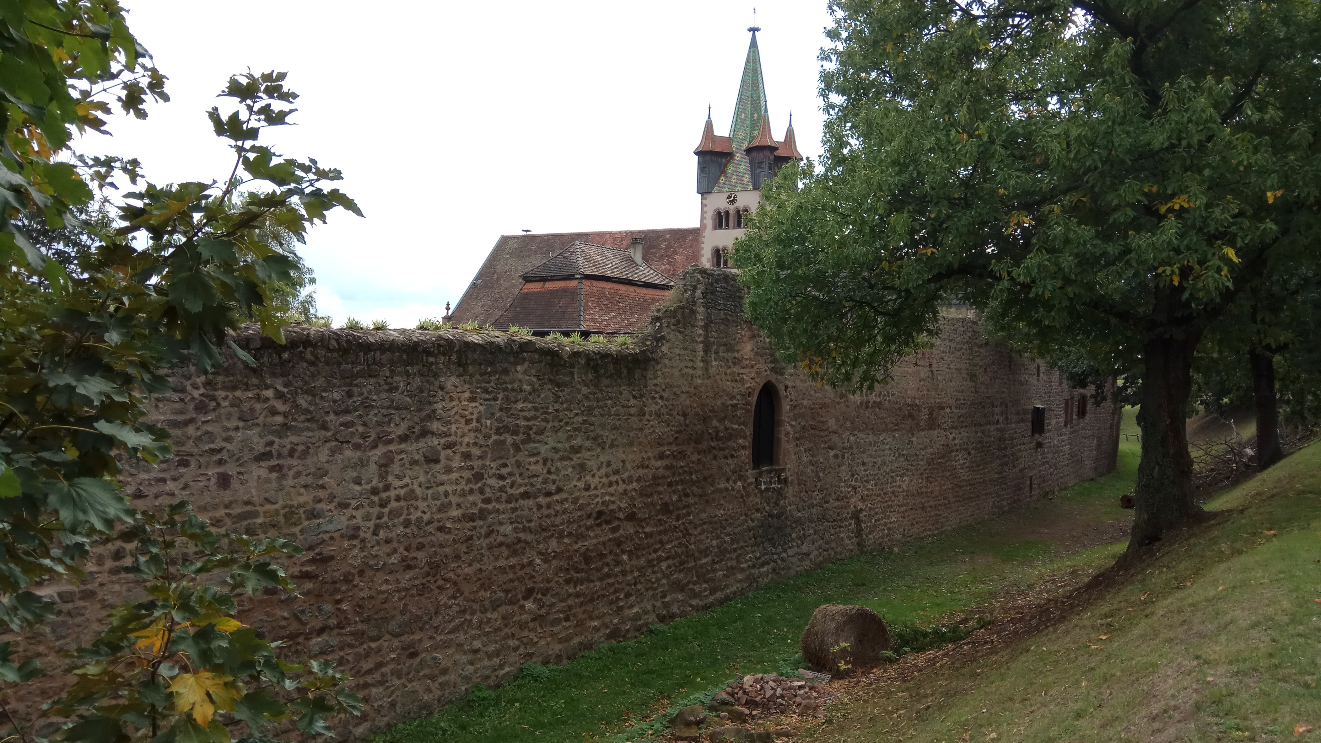 L'église se dresse dans une belle forteresse médiévale à double paroi.