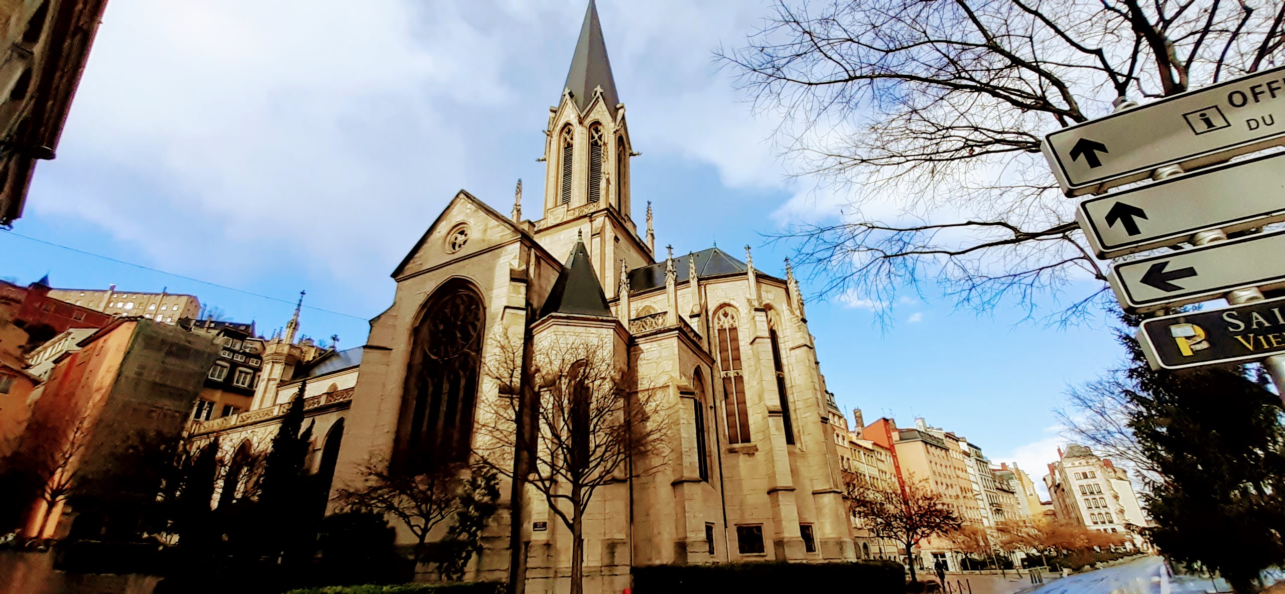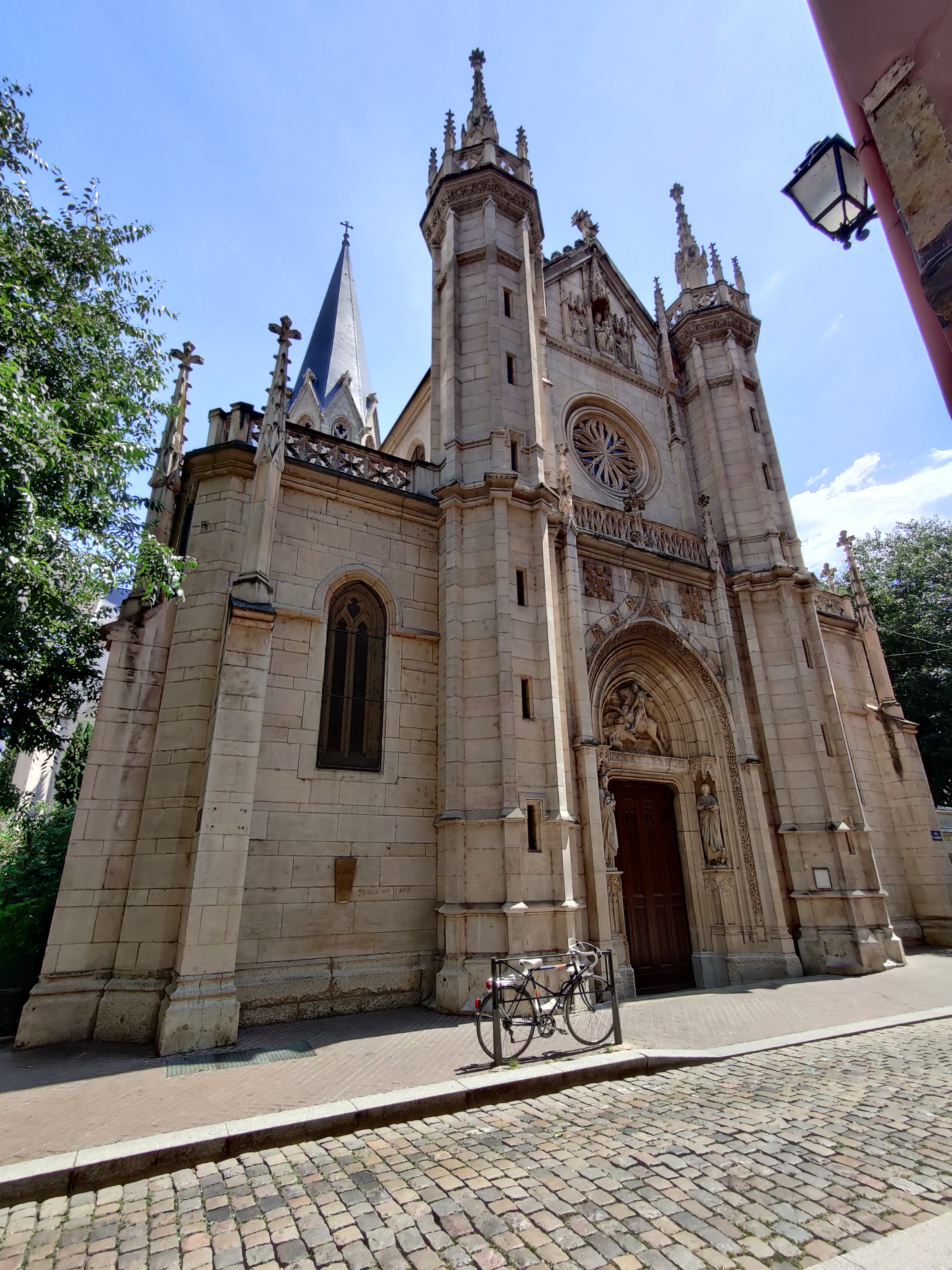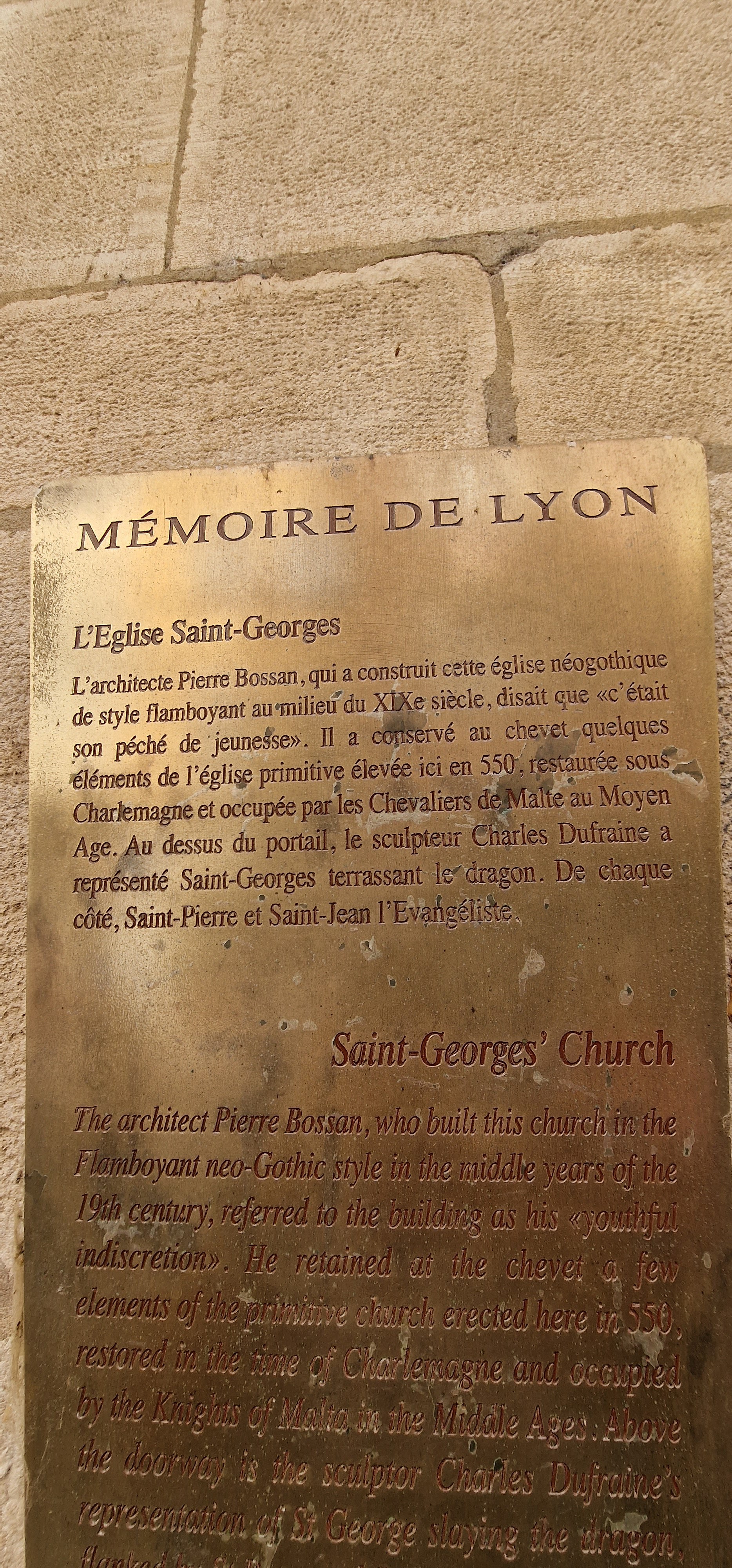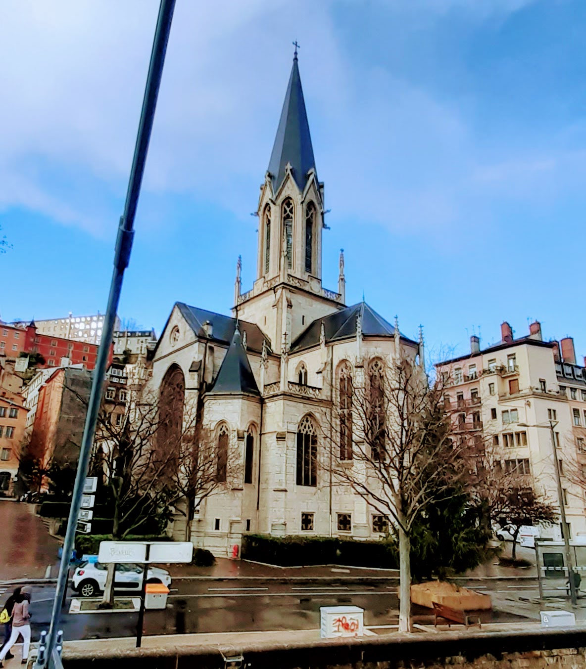 < FB : Addison Road Trip > Lyon, France Église Saint-Georges La belle cathédrale gothique, avec ses flèches acérées visibles au loin des deux côtés de la rivière Sone, est un centre historique très ancien, faisant partie du patrimoine culturel de la cité médiévale.