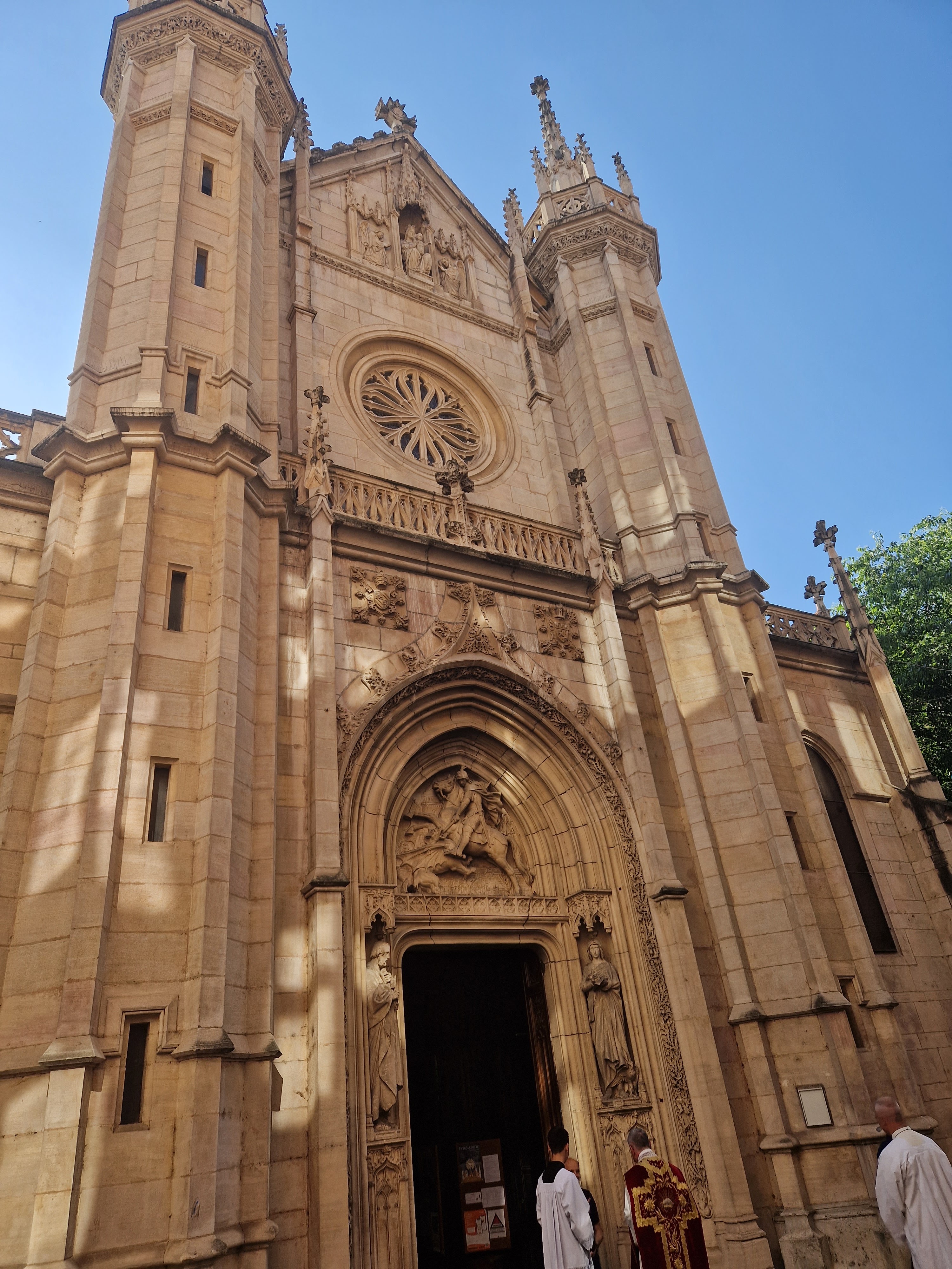 C'est une somptueuse église dont la particularité est que les messes sont dites en latin. Elle peuvent être sous la forme extraordinaire comme lyonnaise par contre ne me demandez pas quel est la différence entre les deux car je ne le sais pas. J'ai d'ailleursété étonné de savoir qu'il y avait une liturgie lyonnaise.