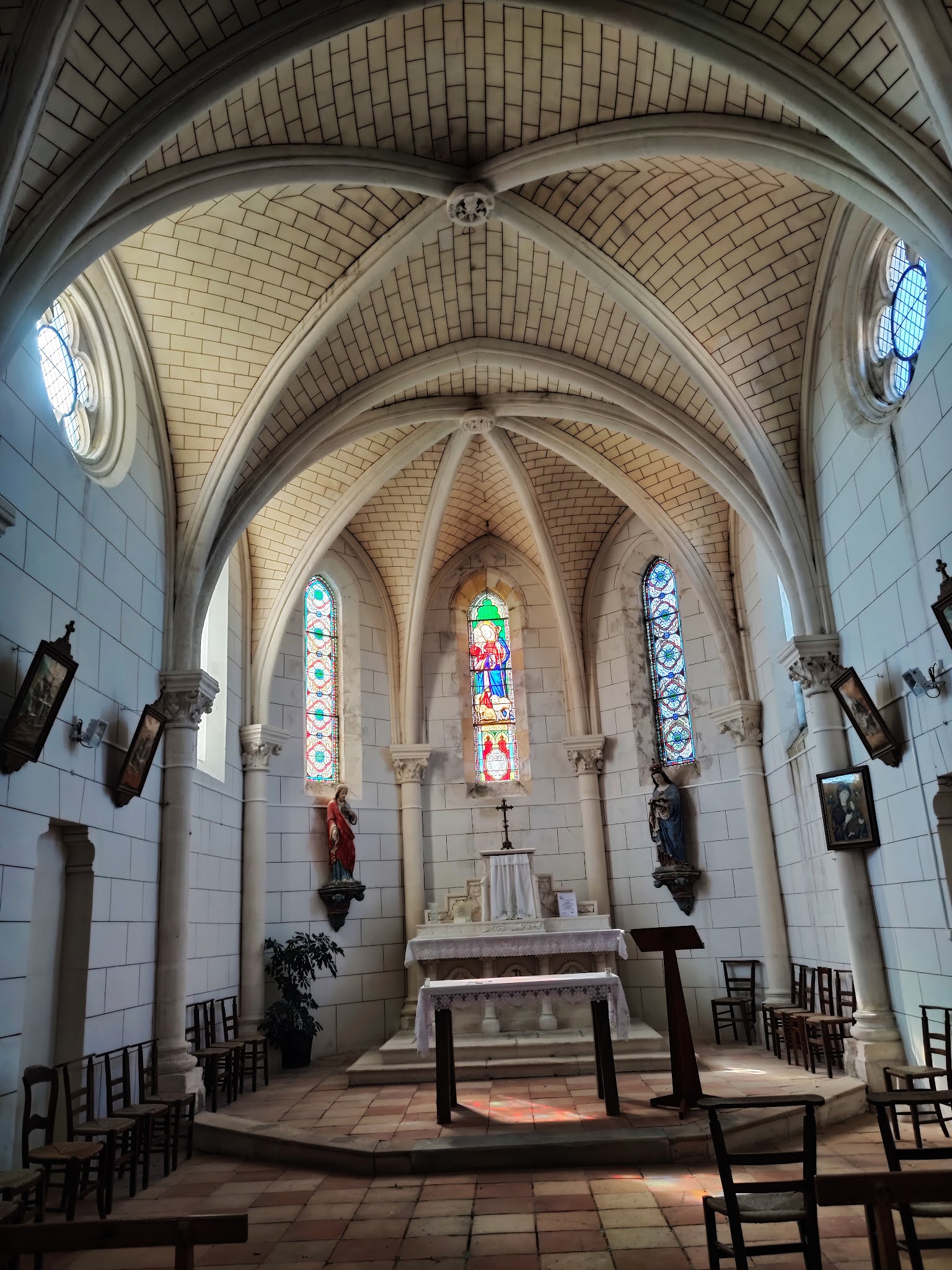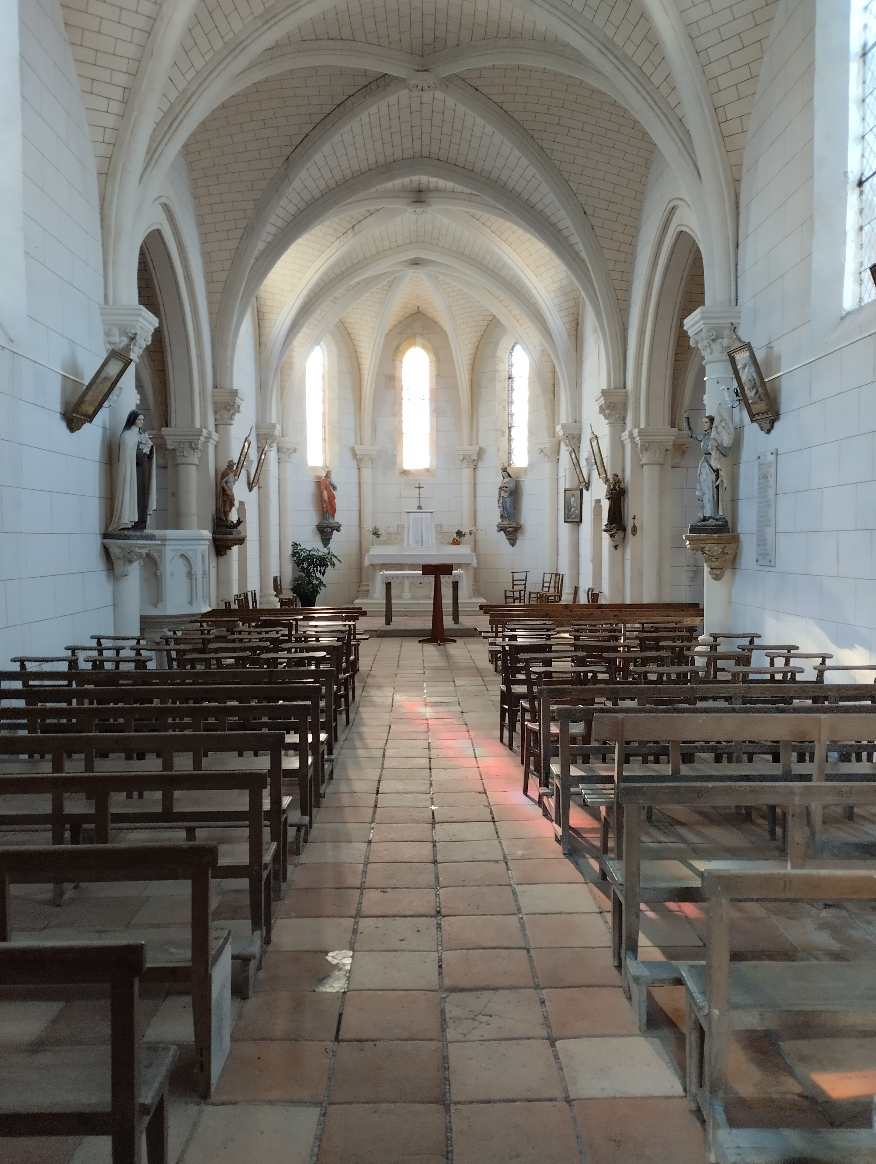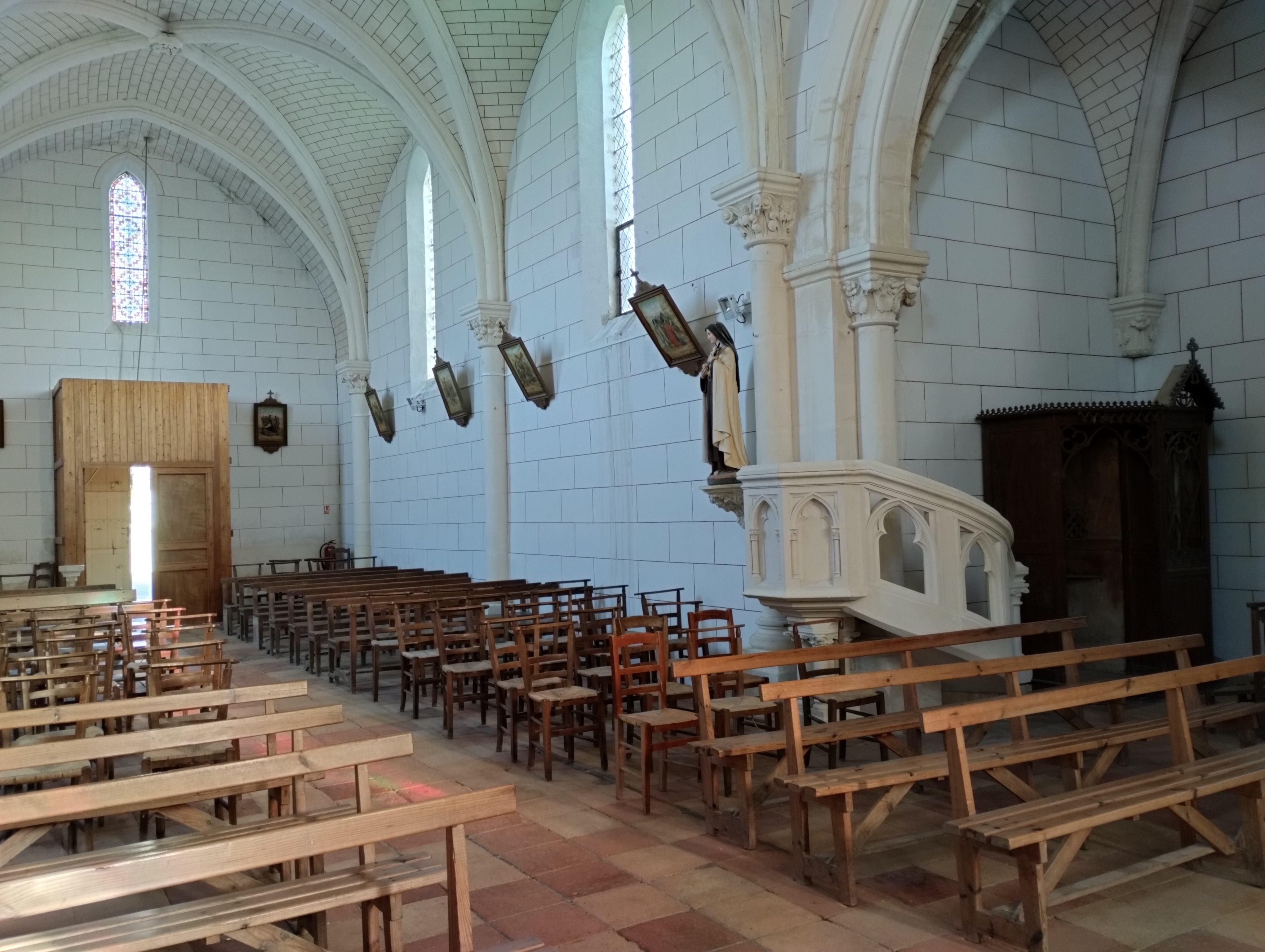 Ouvert et accueillant, il est agréable de pouvoir profiter de tels édifices publics. Un édifice du 19ème siècle dont la principale qualité est d'être ouvert et accueillant. Quelque soit sa place dans l'échelle des différents nivaux de croyances, il est agréable de pouvoir profiter de tels édifices publics. Eglise en bon état et visiblement bien entretenue, son allure néo romane à l'extérieur, ses voûtes d'ogives, son plan en croix et son abside à 5 pans, ses vitraux figuratifs, tout ce classicisme procure un bien être simple au visiteur. Modeste église construite sur une pente importante, elle peut offrir l'occasion d'une halte pour se détendre dans le calme, pour méditer, pour prier, lieu idéal pour un recueillement régénérateur.
