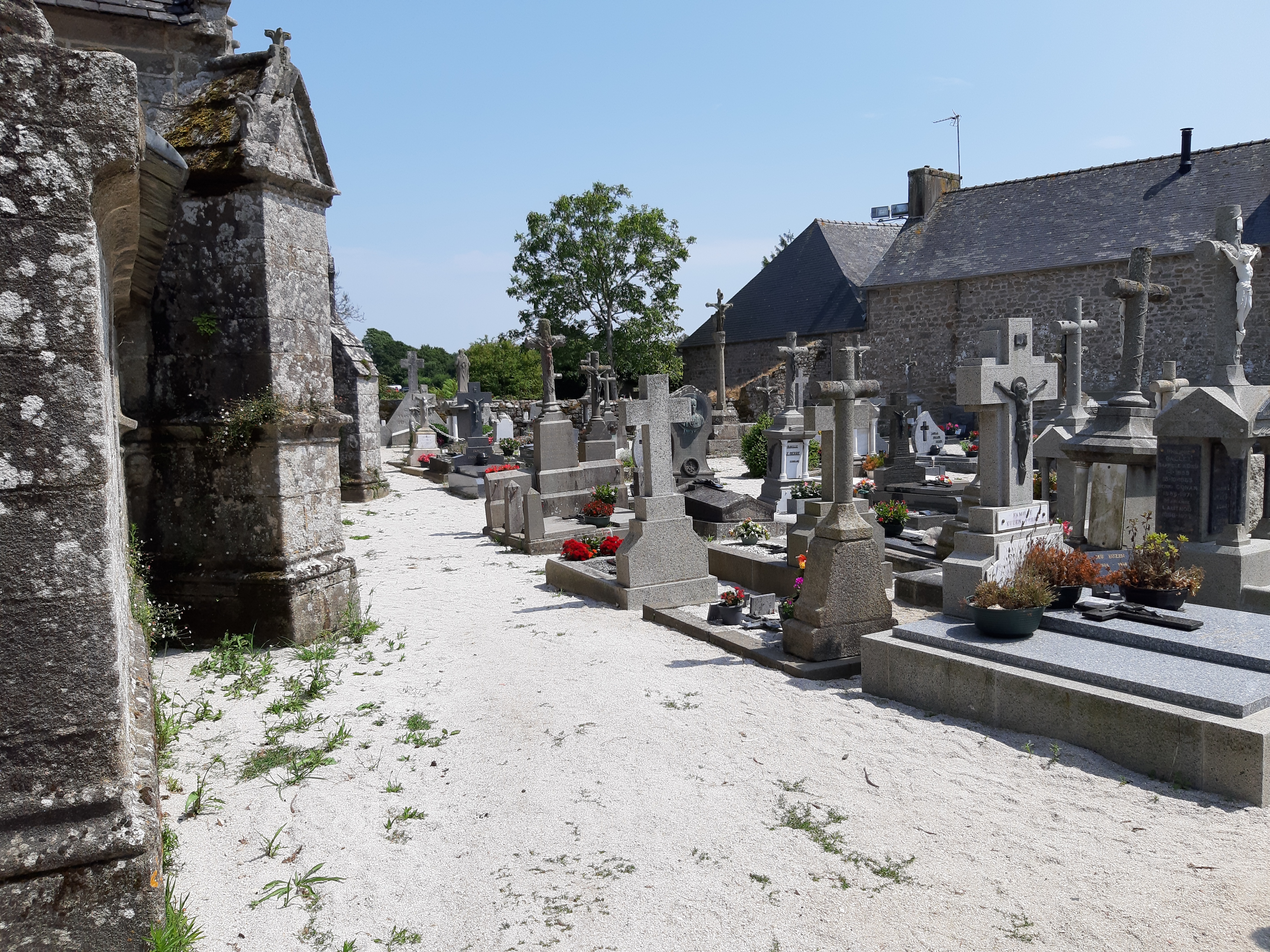 Petit enclos dans un hameau l eglise est splendide .je n ai pas vu l intérieur car il y a des jours et heures de de visites Le cimetière est petit suivi d une étendue ou il y en a un autre .tout est paisible