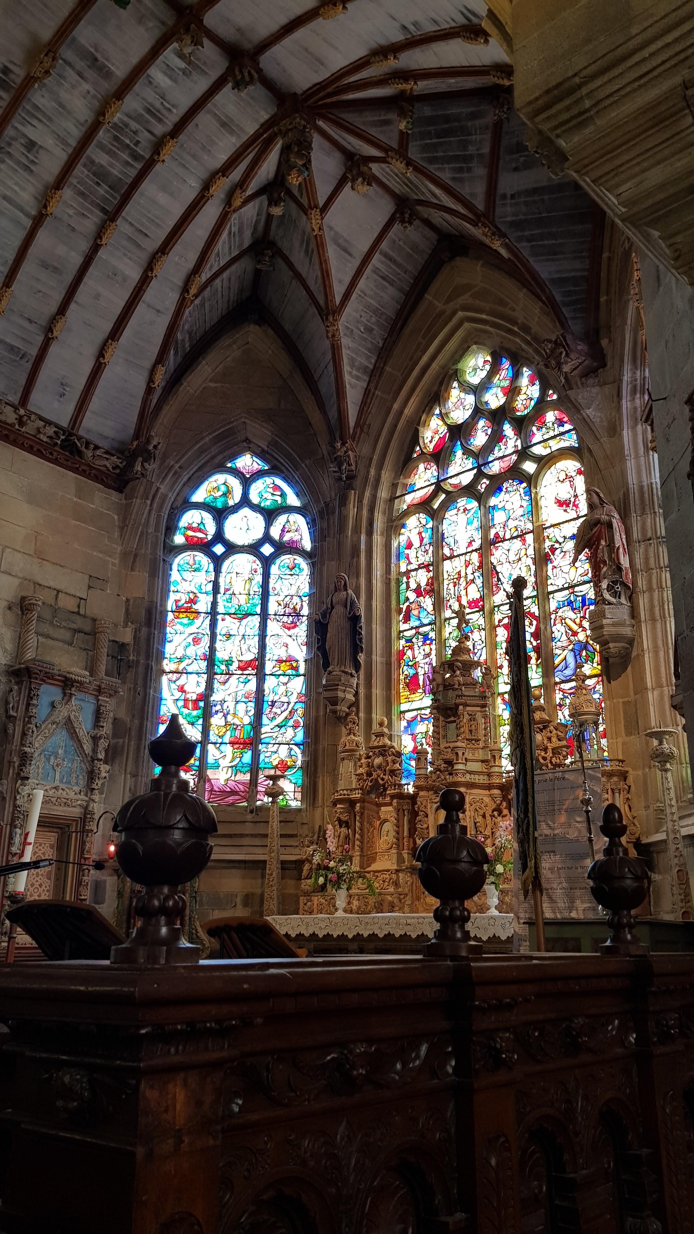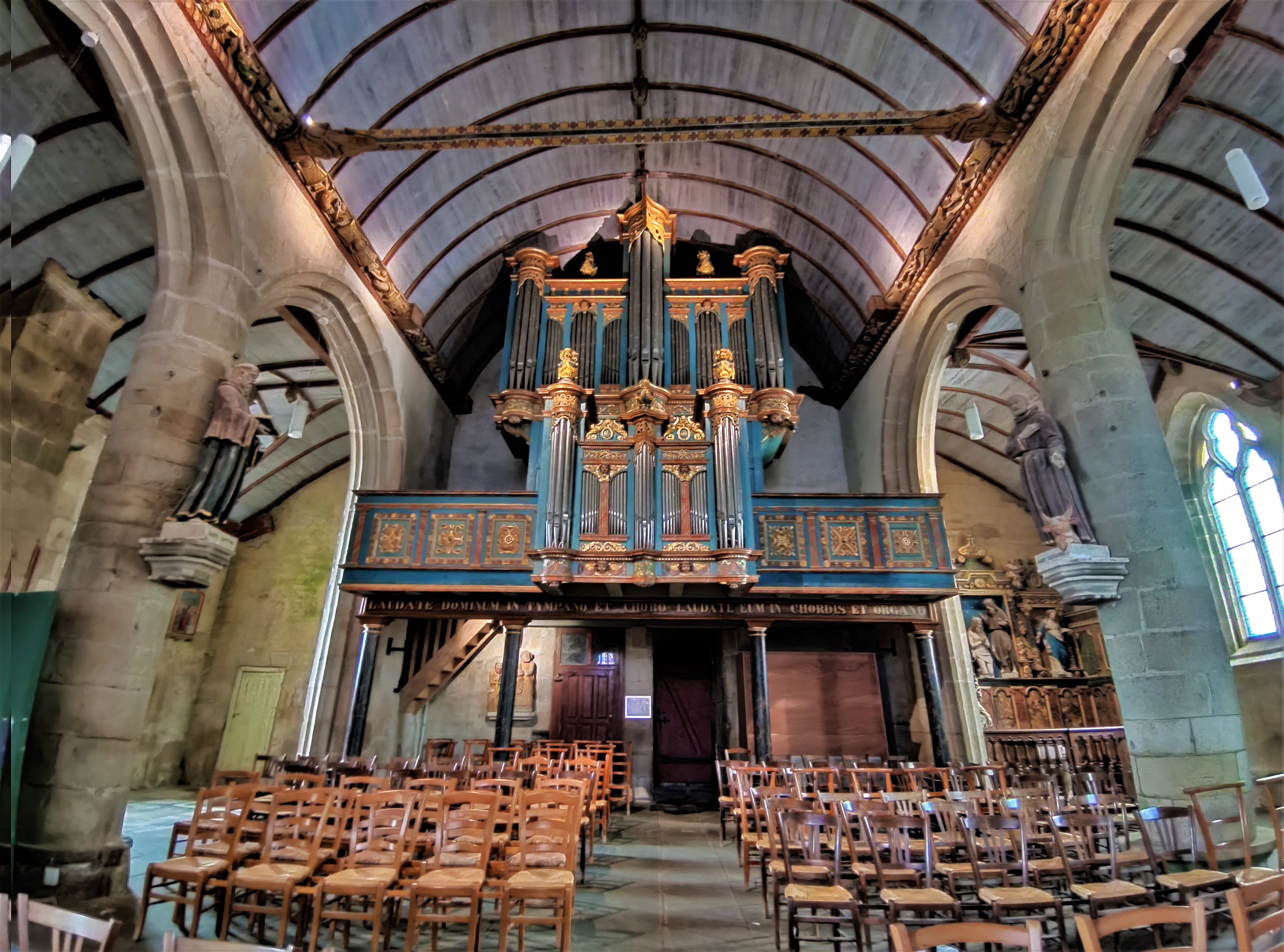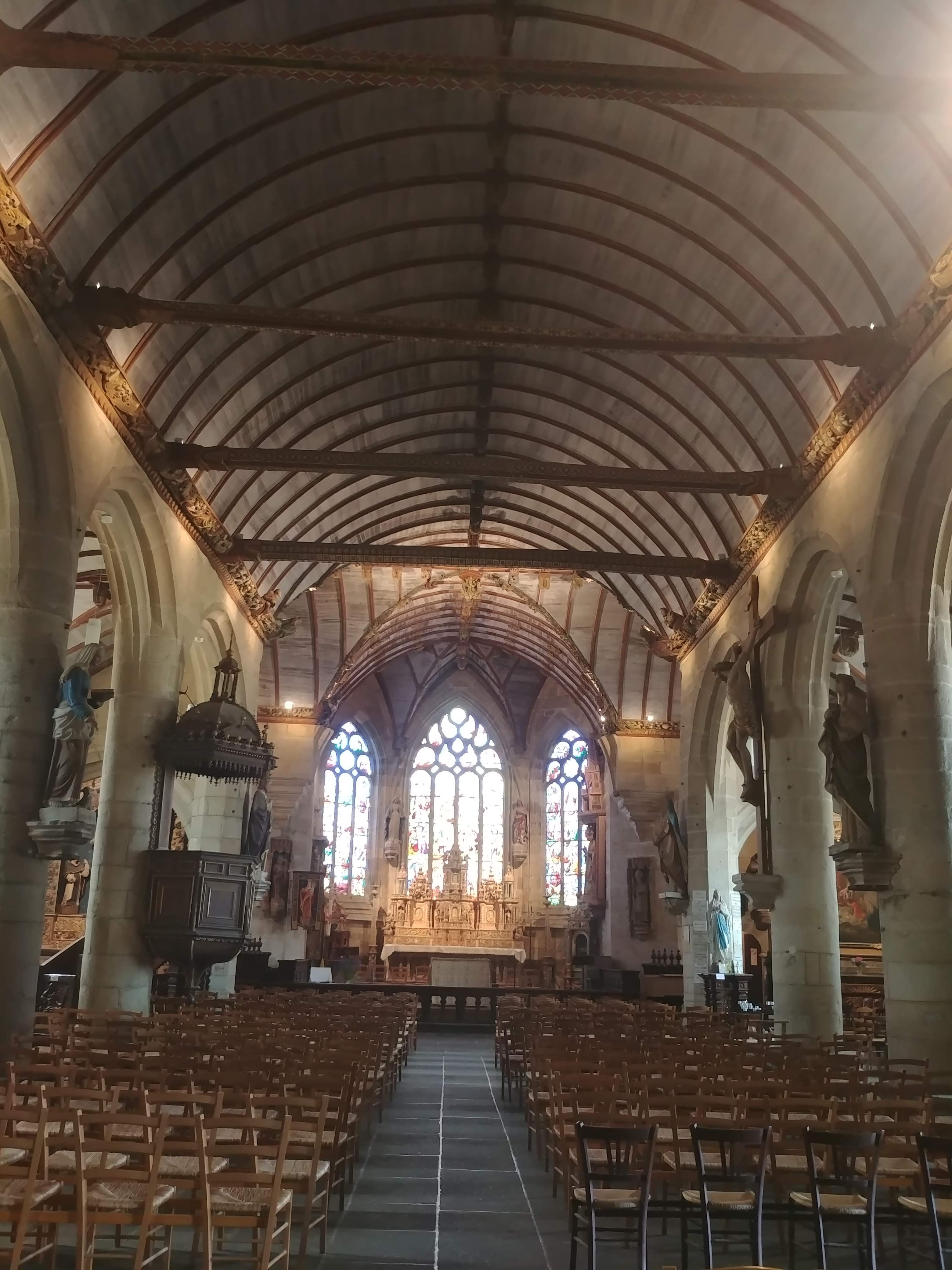 Église gothique et renaissance, construite du 15ème au 17ème, elle mérite de nombreux superlatifs. Les décors sculptés sont somptueux, les poutres sablières sont une démonstration d'un savoir-faire extraordinaire. Les vitraux forcent l'admiration, les mobiliers liturgiques, peintures et statues habillent avec élégance l'édifice. L'architecture peut surprendre, autour d'une structure de base on a construit divers éléments prestigieux, témoins de leur époque de construction. En faire le tour est instructif, la découverte de cet enclos ne peut qu'encourager à d'autres découvertes.