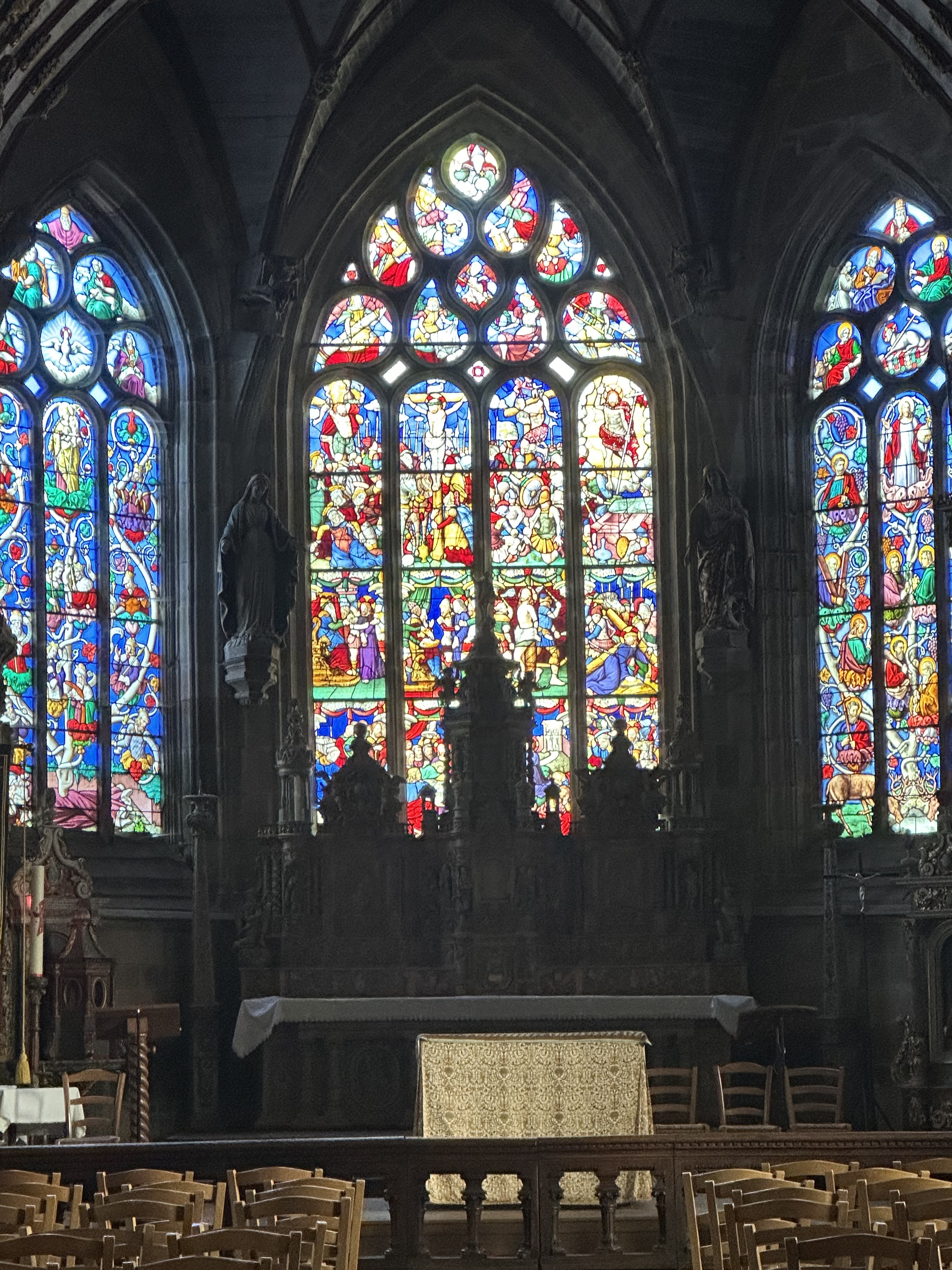 Belle église avec un intérieur d'une beauté impressionnante, des vitraux impressionnants, qui vaut absolument le détour et mérite une visite.