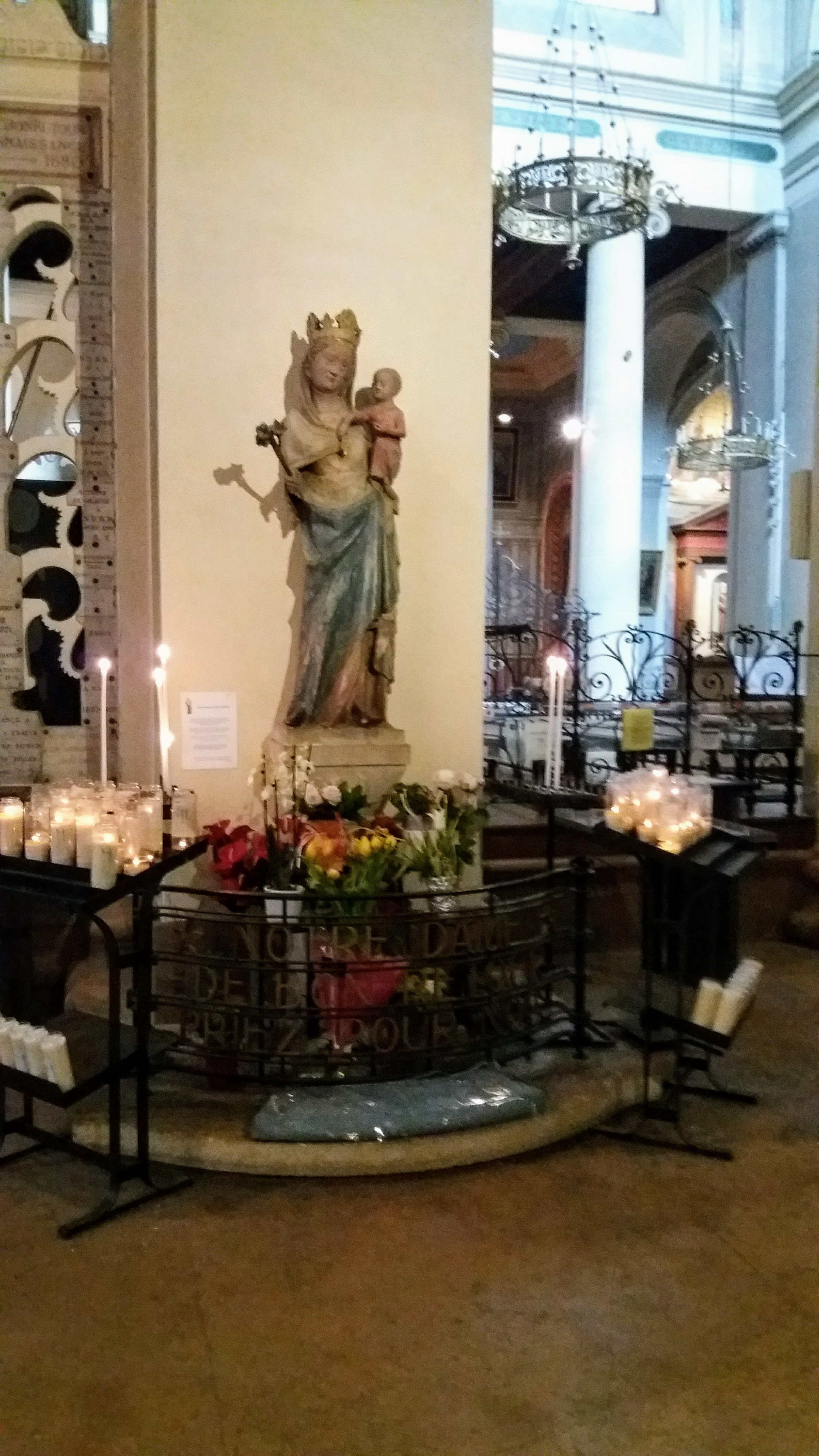 Belle Église. Grande Église. Belle idée d'inciter les visiteurs à prier pour diverses intentions selon les saints devant lesquels ils se retrouvent dans les oeuvres exposées.