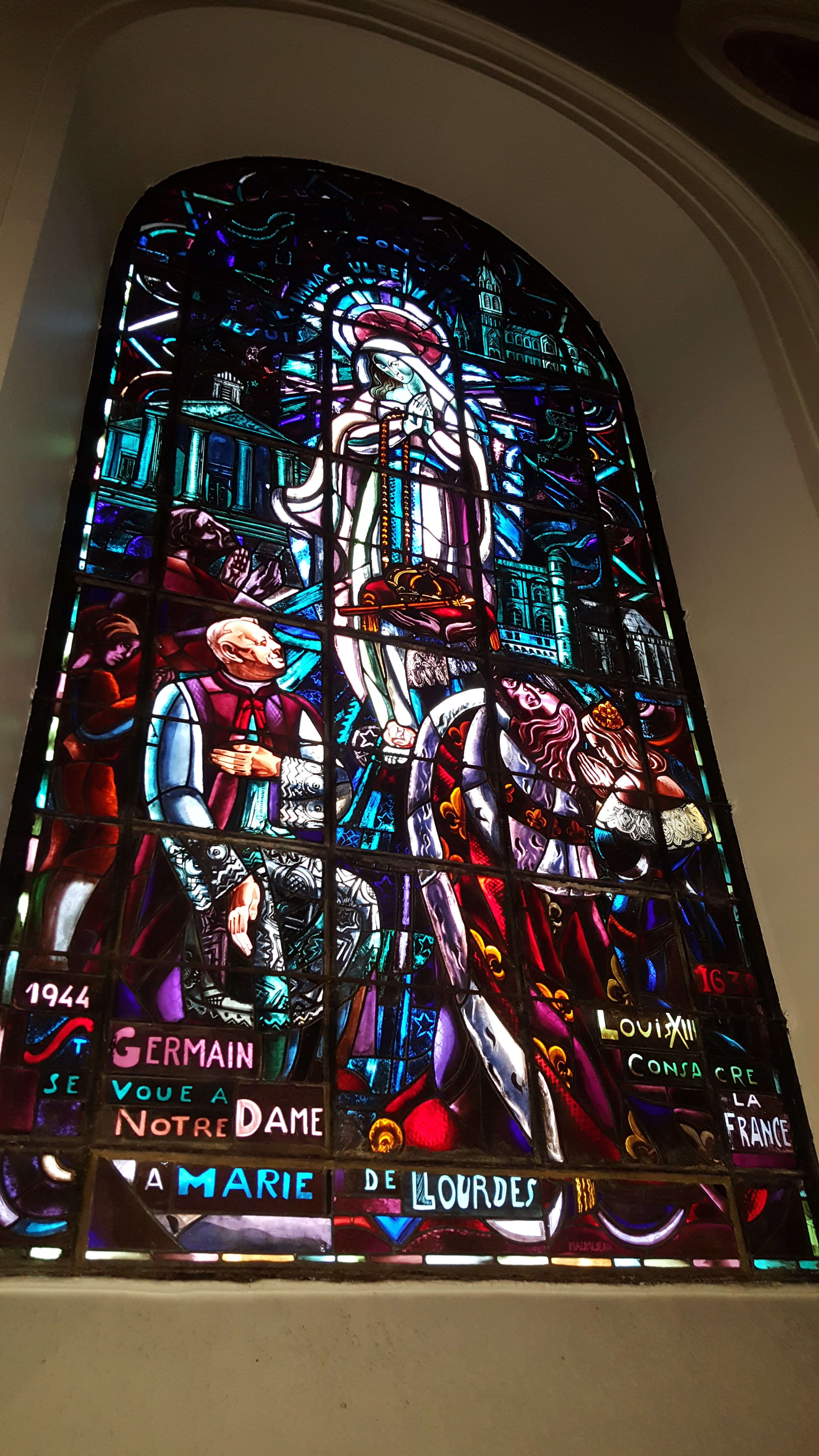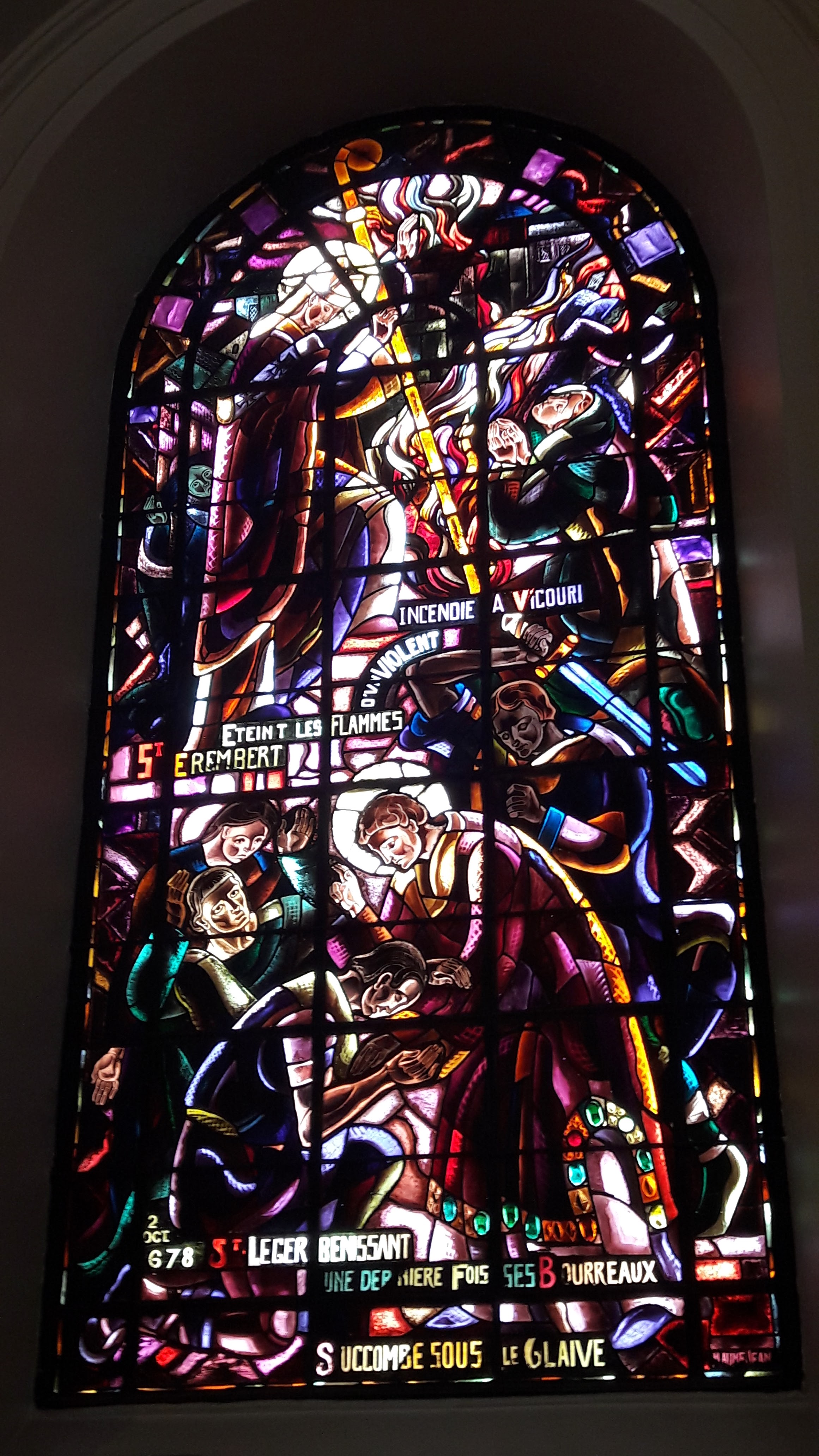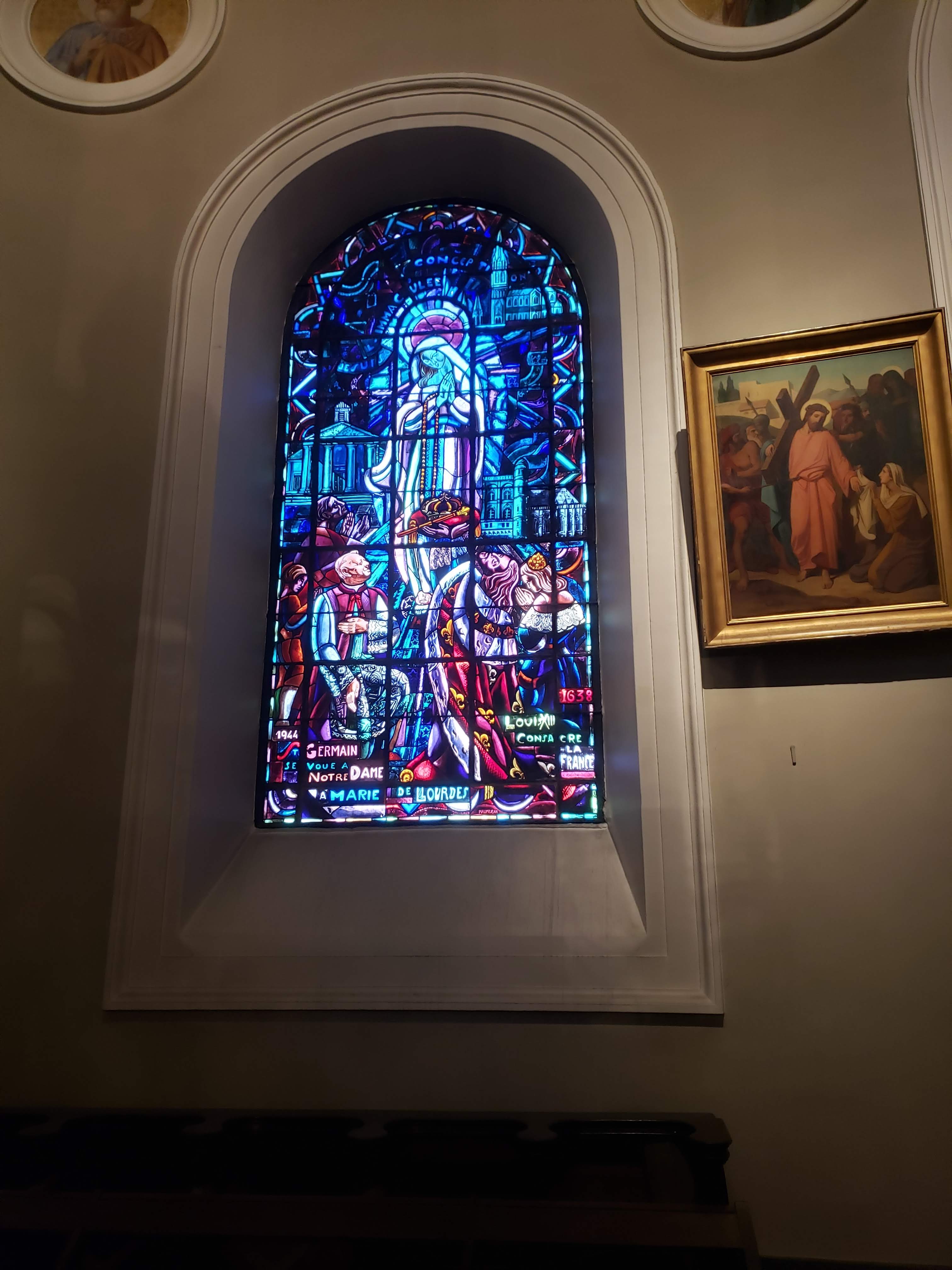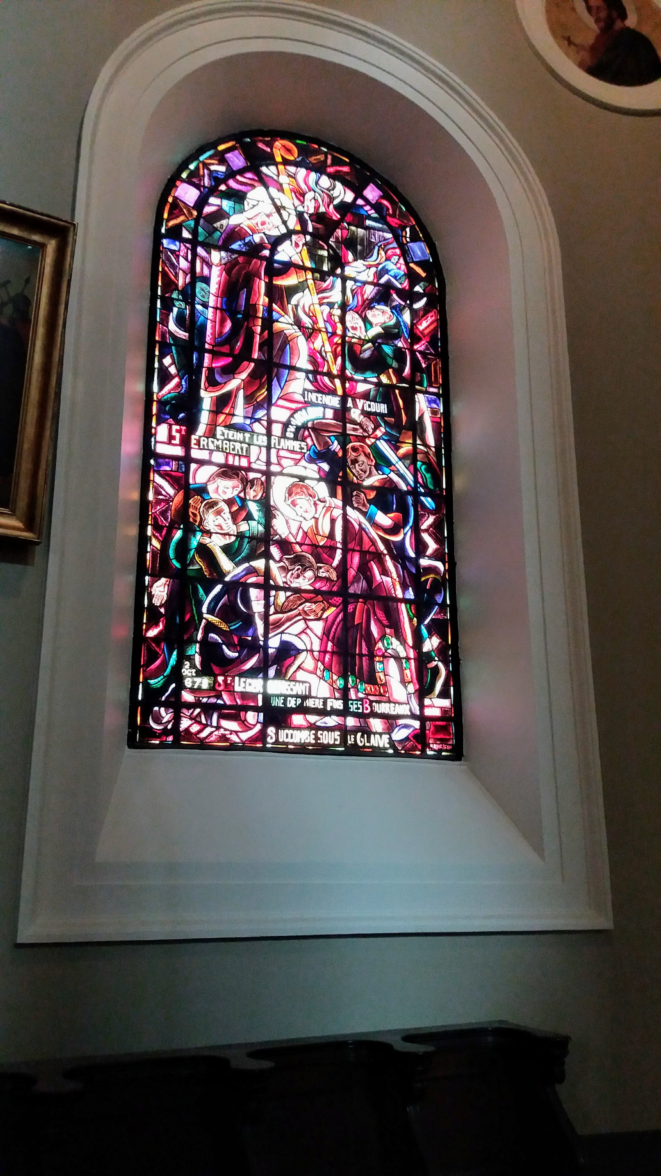 Supers vitraux. Église magnifique et il y a un orgue.