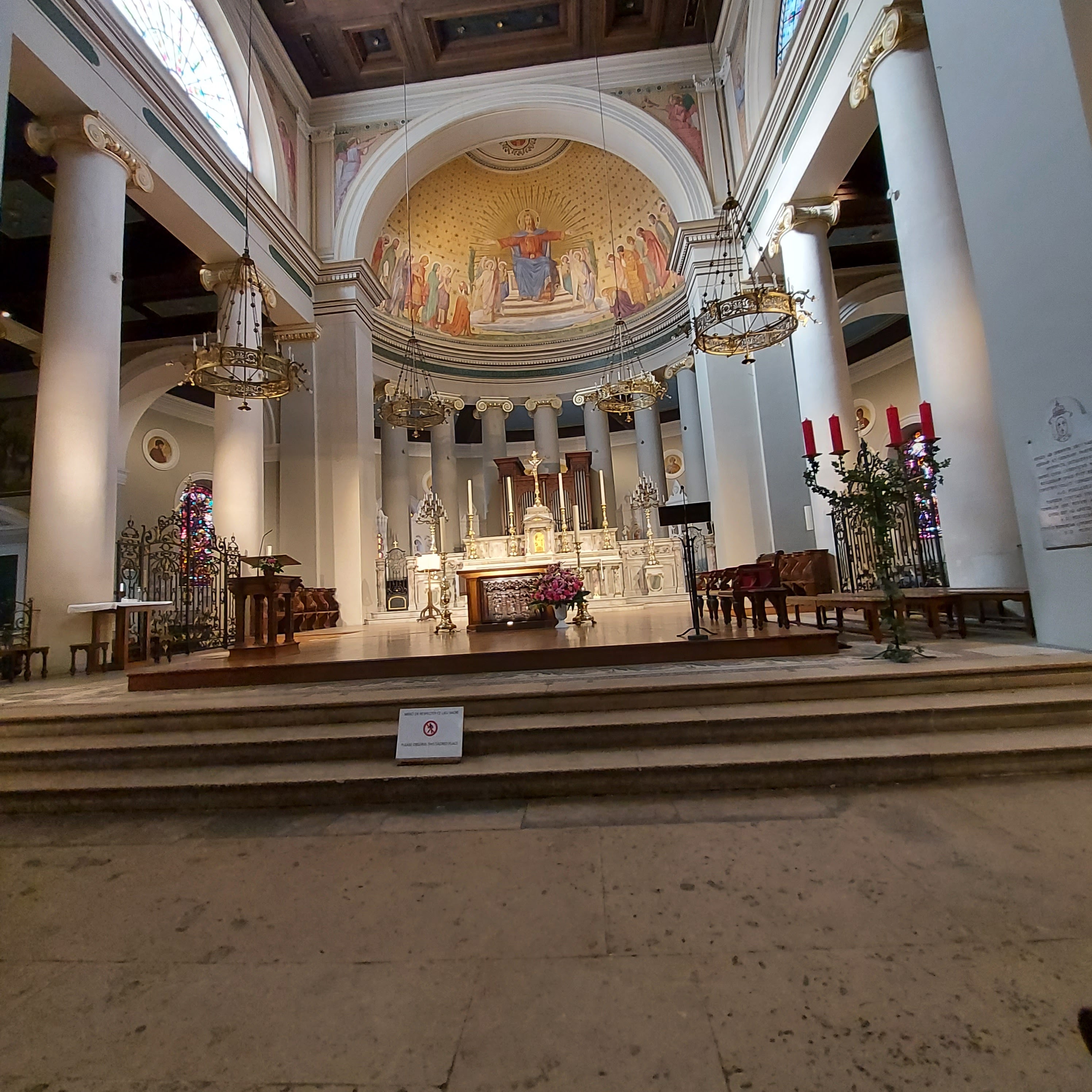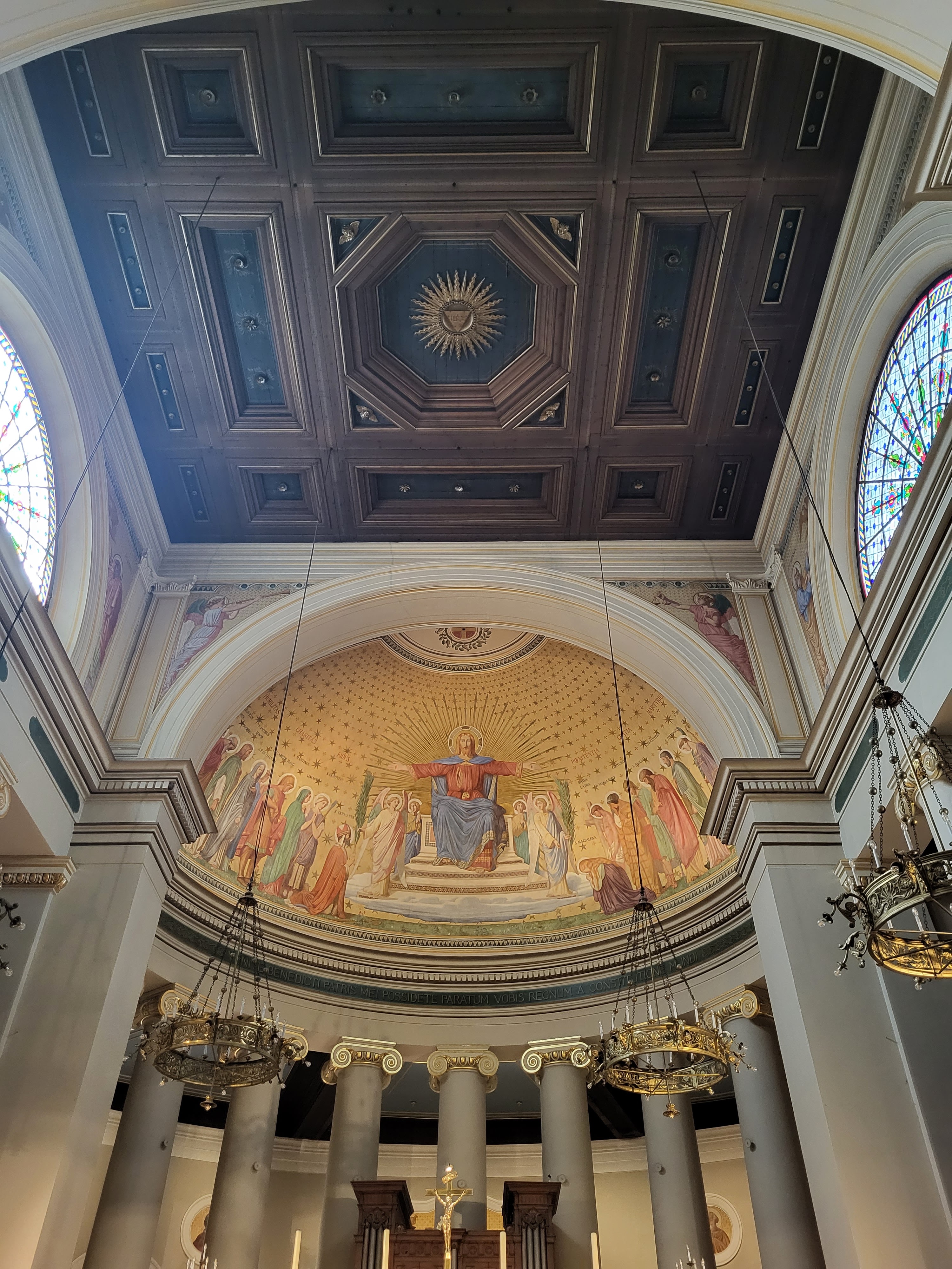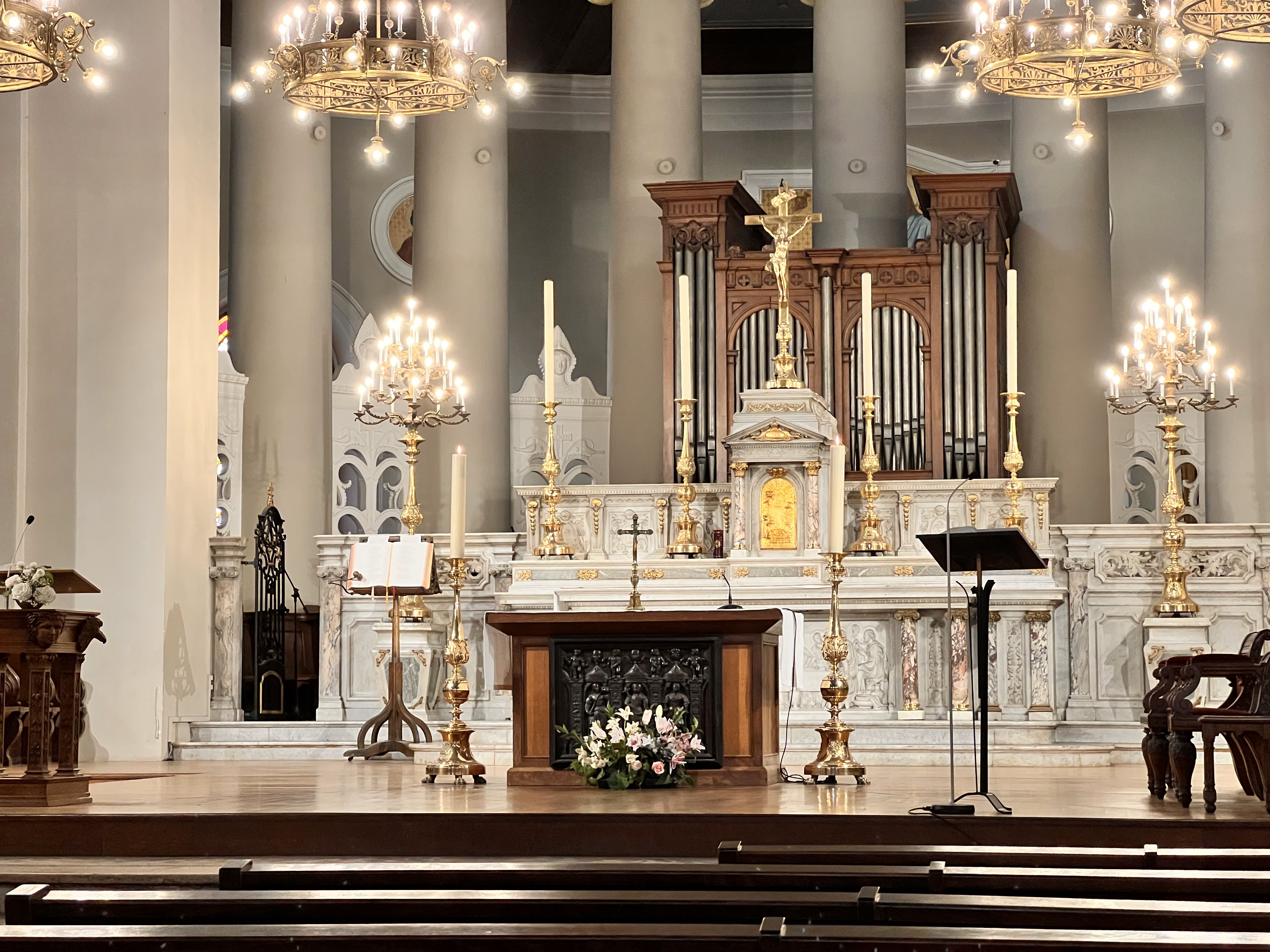 c'était une très belle église et un intérieur magnifiquement coloré aussi.. un grand orgue.. de magnifiques fenêtres en verre colorées.. et bien plus encore...