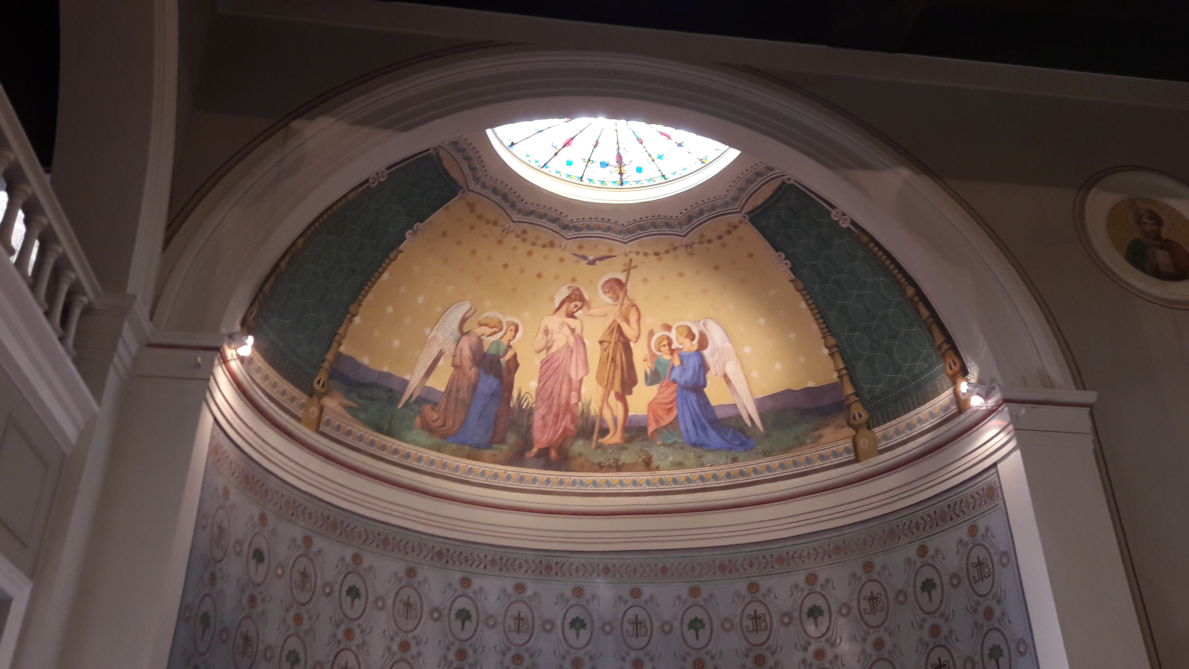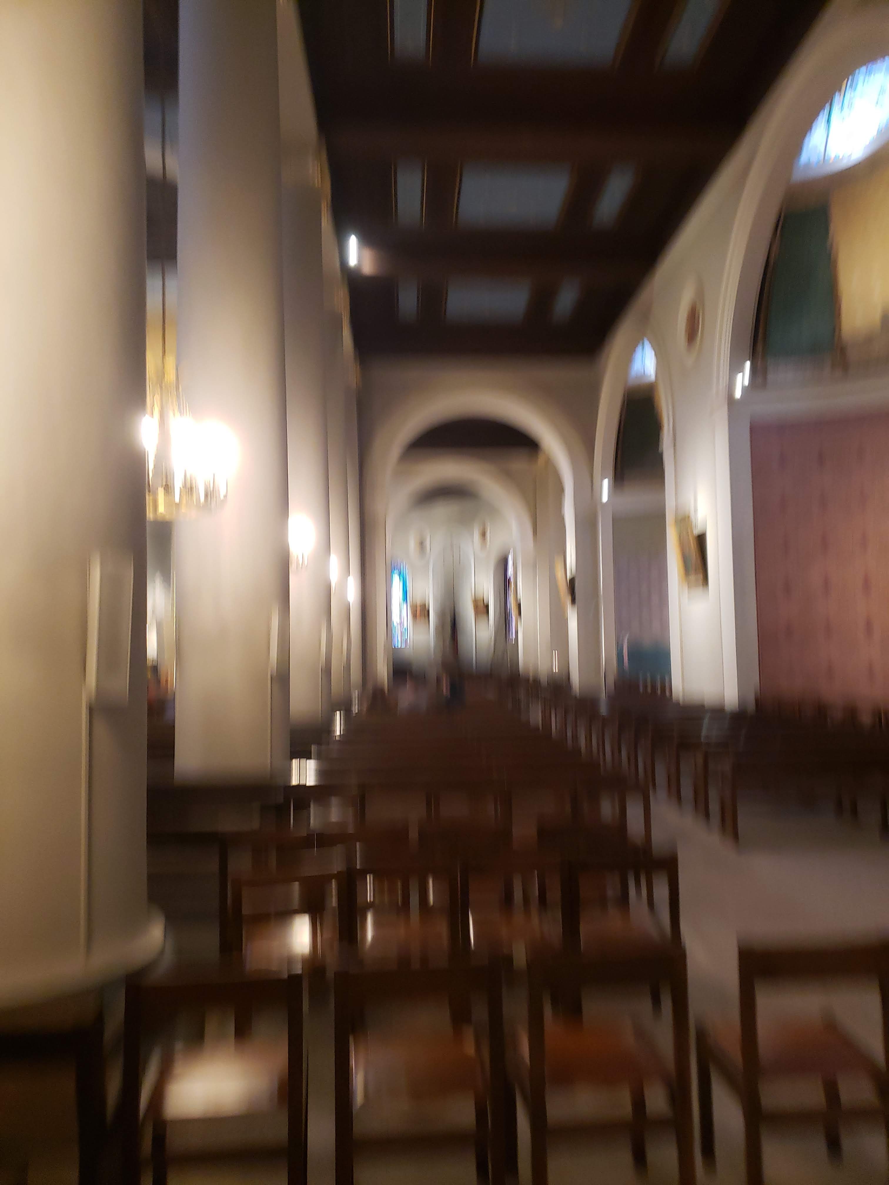Eglise charmante en couleur et lumière. Le prêtre qui officiait mettait beaucoup de cœur et faisait participer les personnes qui participaient à un baptême. Joli moment suspendu.