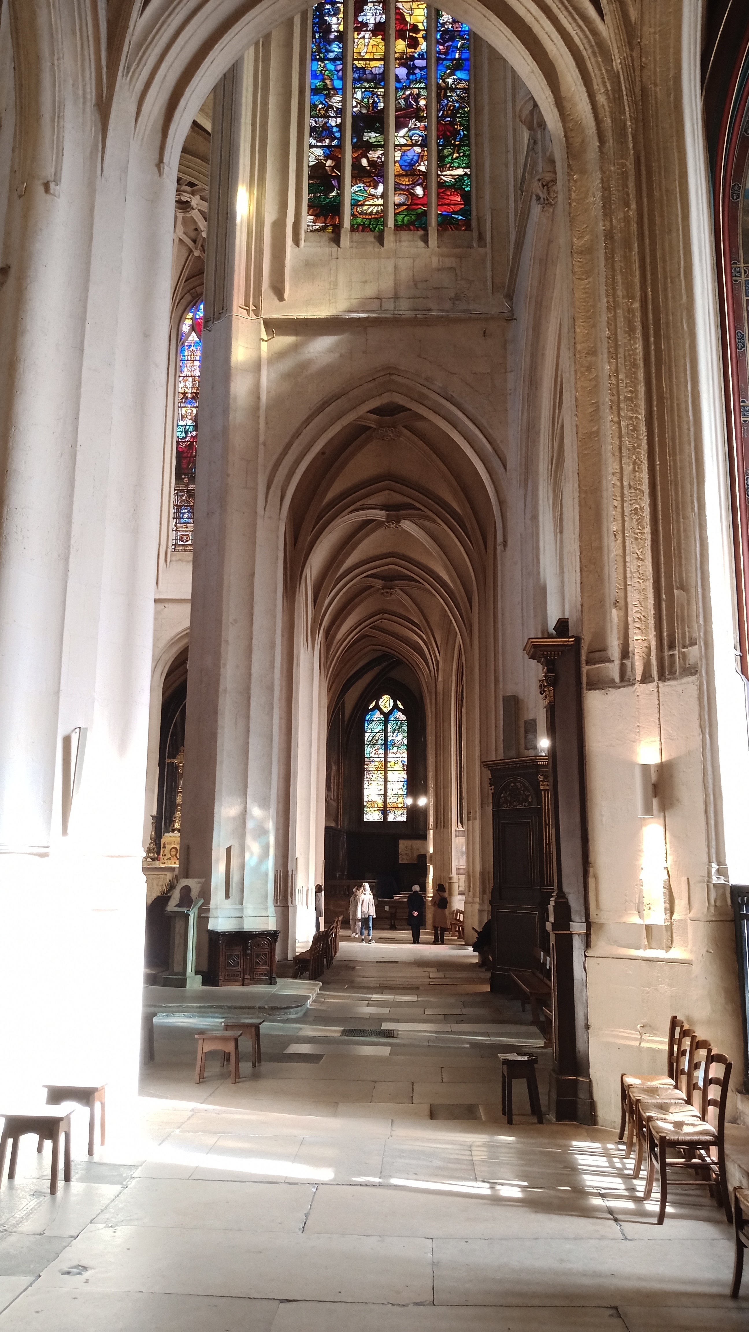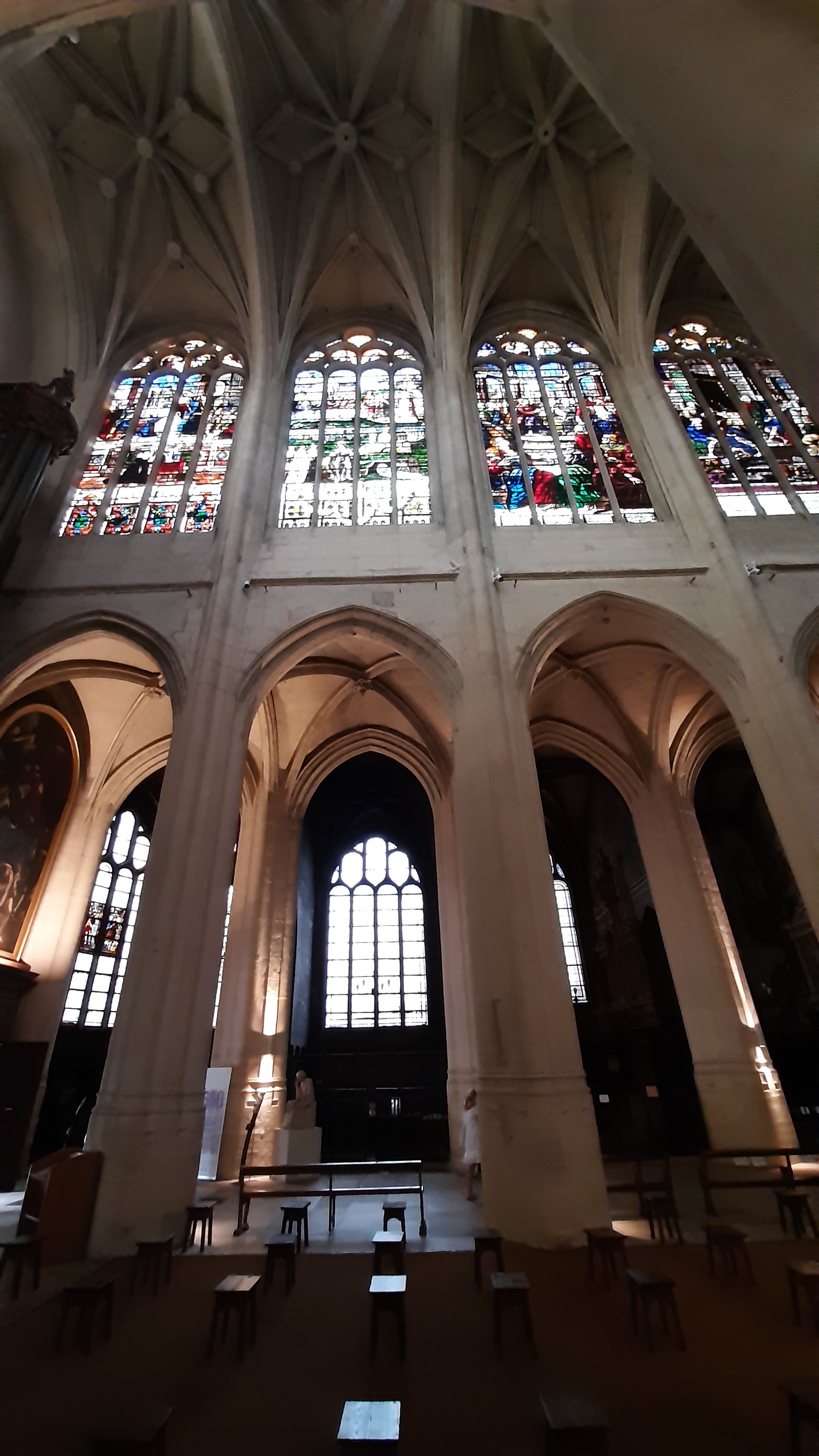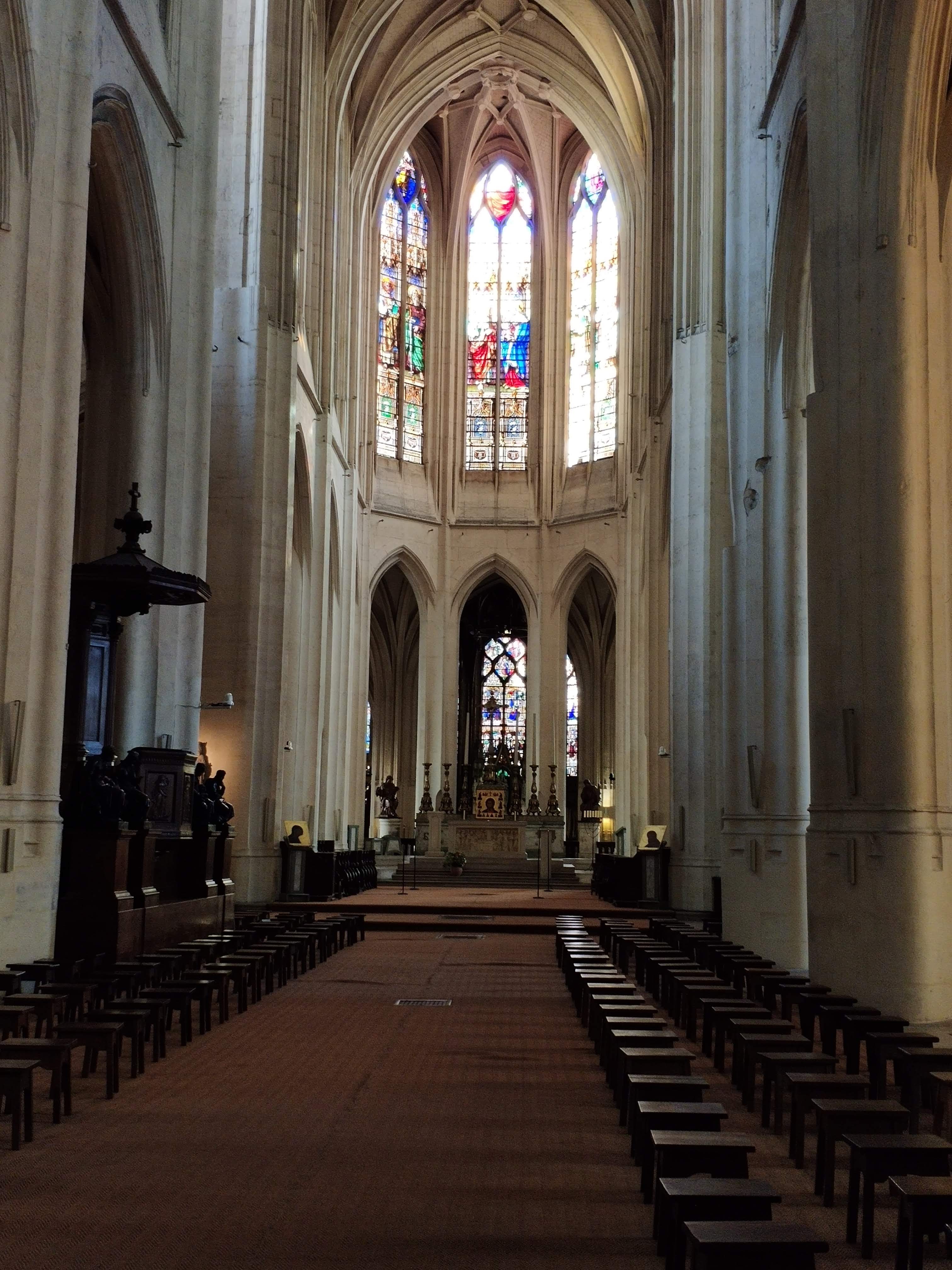 Cette église est magnifique, les volumes extérieurs laissent présager à l'intérieur quelque chose de grandiose, c'est le cas, elle est somptueuse, les vitraux, les alcôves, les allées, tout est bien entretenu. Sans être croyant je suis toujours en admiration devant l'œuvre de l'homme quand on est face à ce genre d'édifice, les bâtisseurs, les architectes... On est dans le monde de Ken Follet (les piliers de la terre, que je conseille fortement).