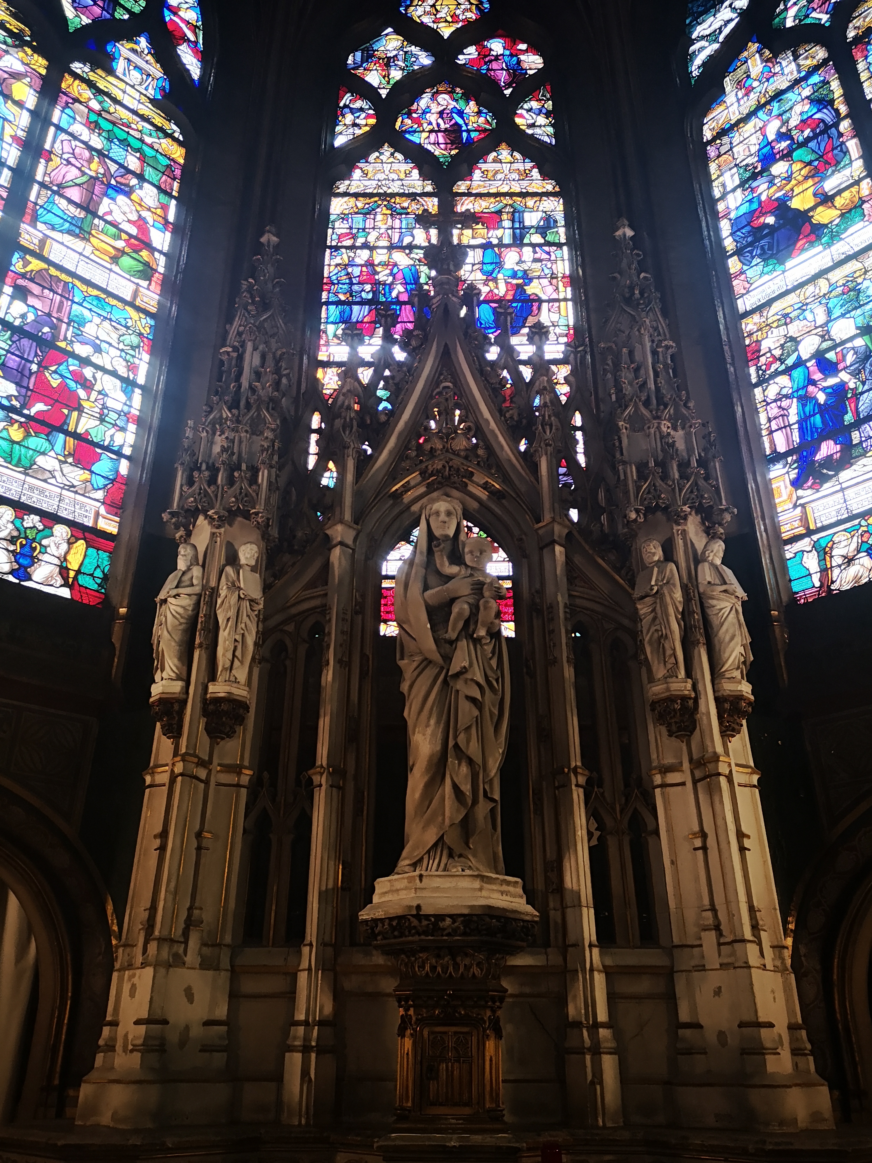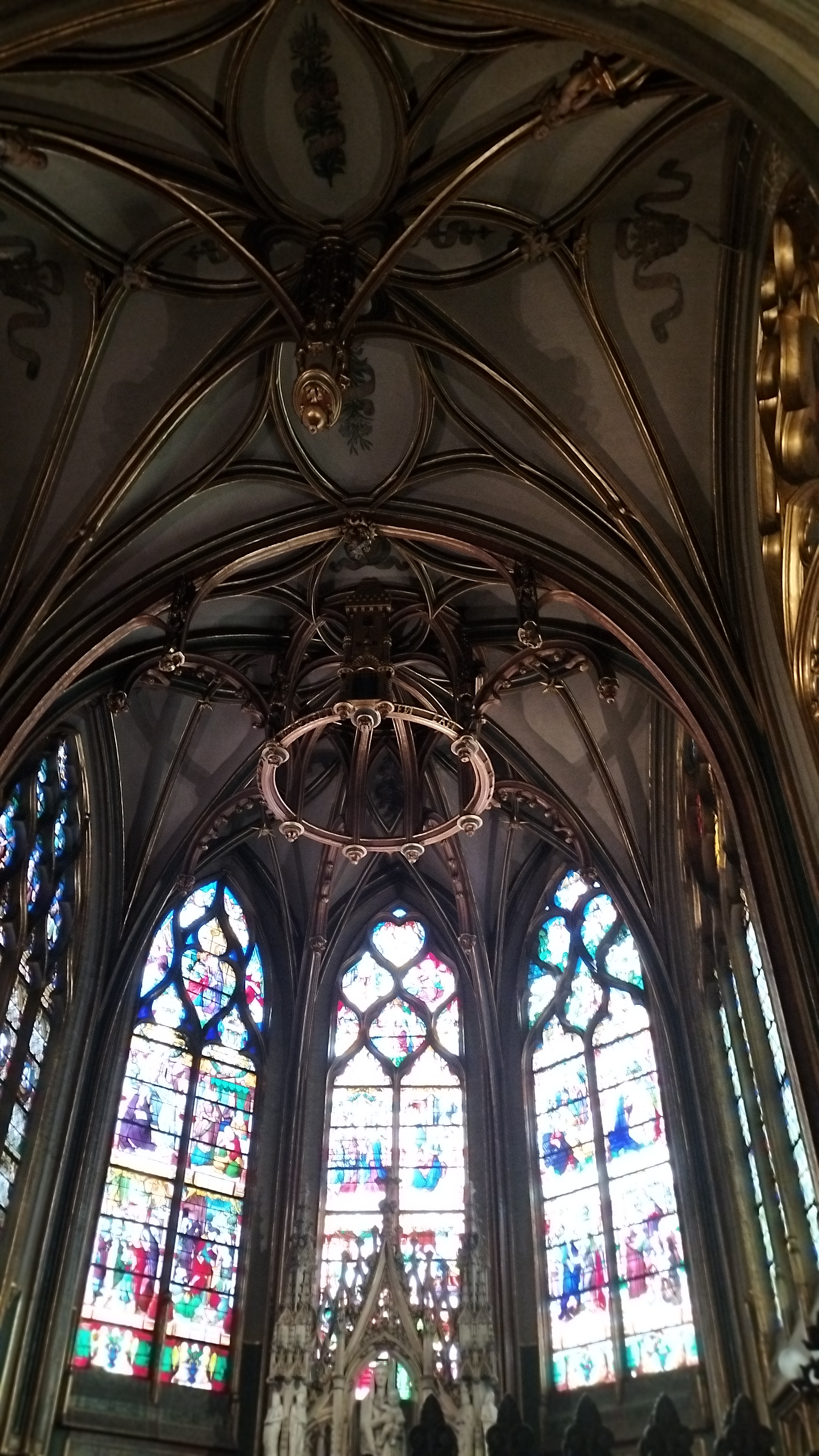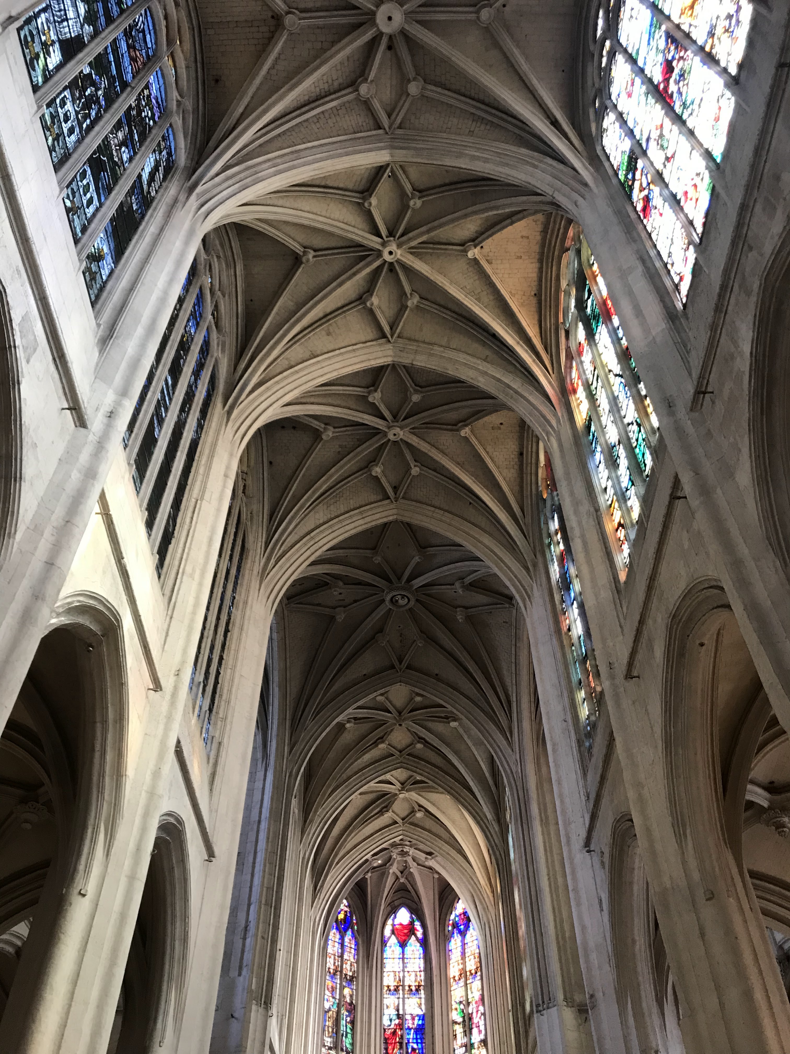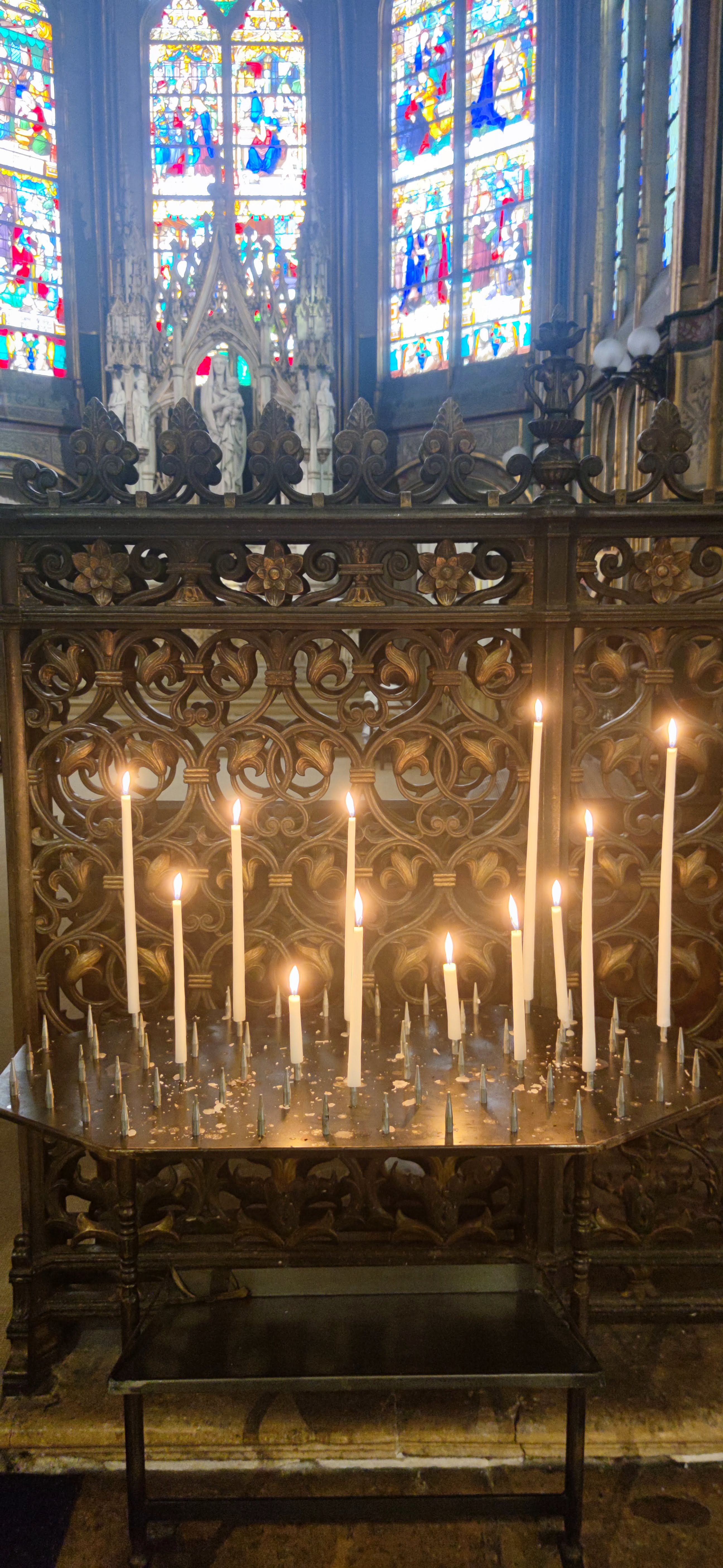 Cette église est magnifique, les volumes extérieurs laissent présager à l'intérieur quelque chose de grandiose, c'est le cas, elle est somptueuse, les vitraux, les alcôves, les allées, tout est bien entretenu. Sans être croyant je suis toujours en admiration devant l'œuvre de l'homme quand on est face à ce genre d'édifice, les bâtisseurs, les architectes... On est dans le monde de Ken Follet (les piliers de la terre, que je conseille fortement).