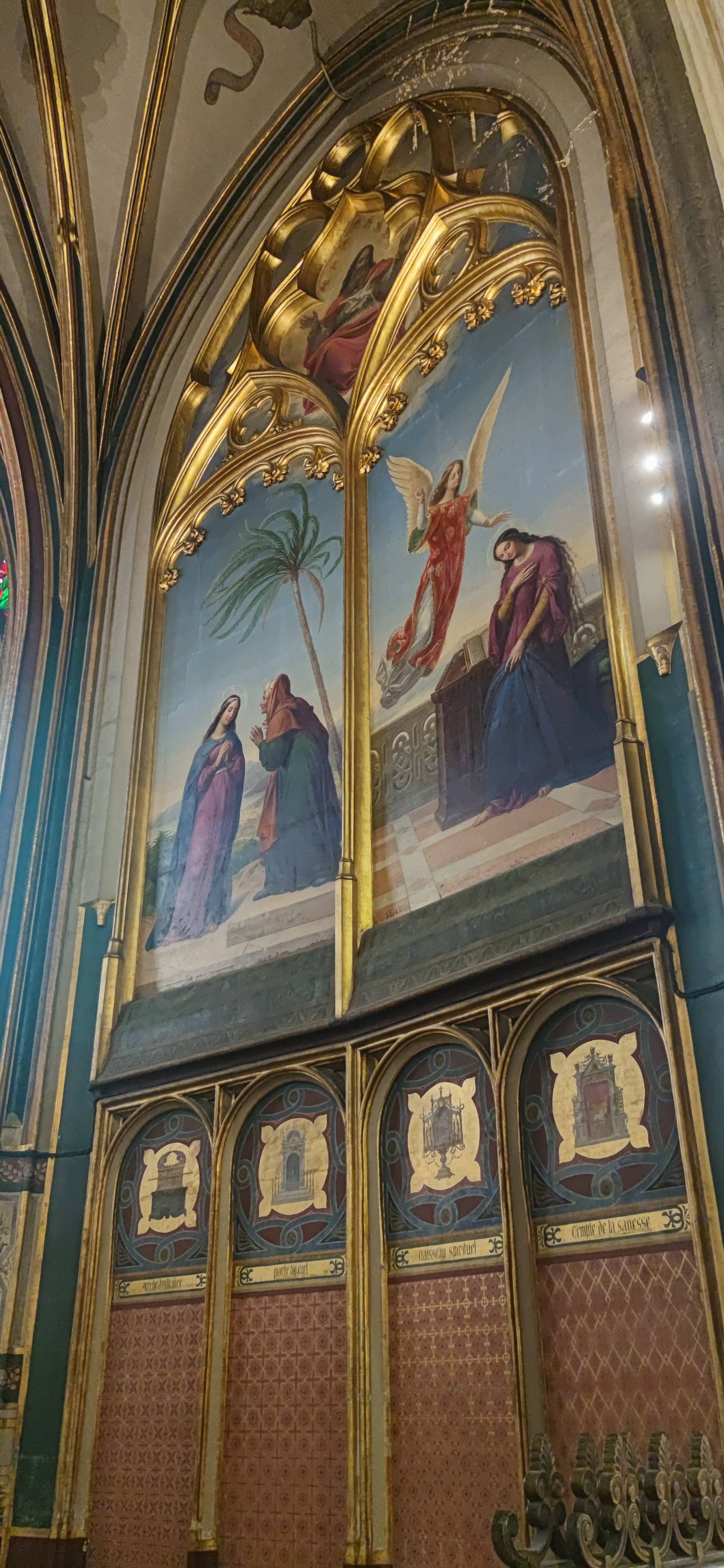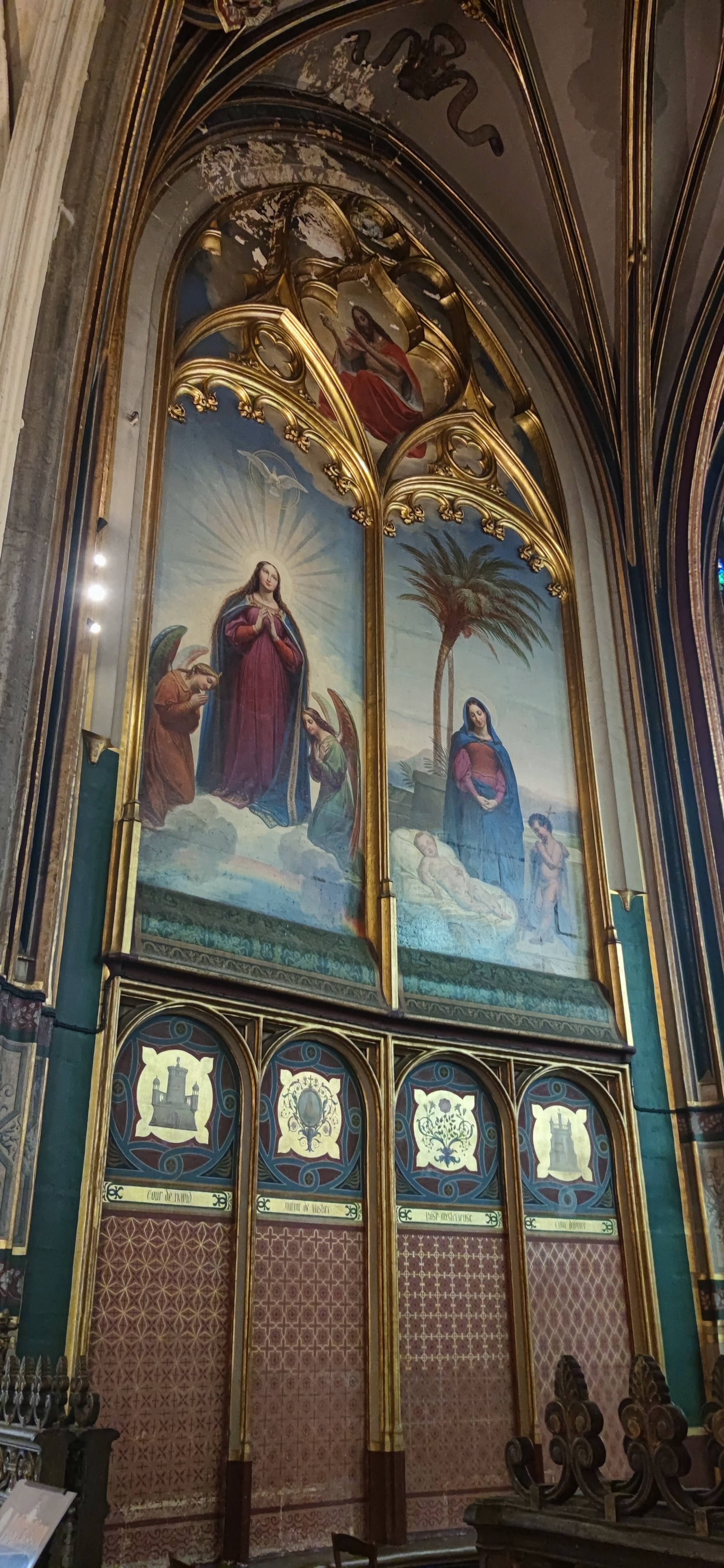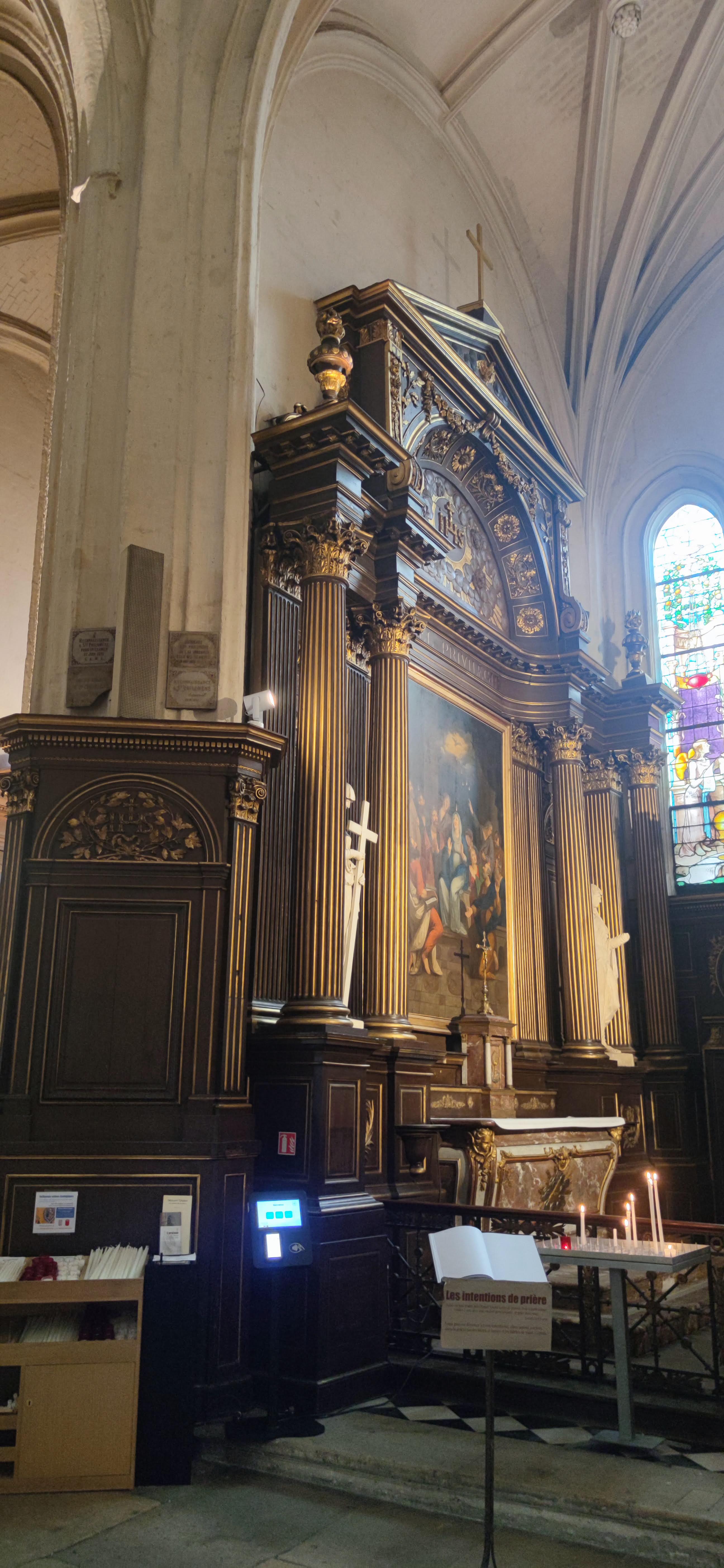Église Saint-Gervais-Saint-Protais Encore plus grande à l'intérieur que vue de l'extérieur. Manque criant d'éclairage les jours où les nuages ont pris le pouvoir ; en fin d'après-midi certaines chapelles voient leur lustre s'illuminer mais pas la Nef. Quelques rayons de soleil au couchant font apparaître des myriades multicolores en son plafond au-delà du transept, on croit rêver. La Chapelle centrale de l'abside, lieu de prière, aux murs recouverts de fresques est magnifique, les clés de Voûte décorées sont bien mises en valeur. Pour découvrir la cerise du gâteau, le Retable de la Passion, il faudra attendre la fin des travaux du clocher. Pas de soucis, vous reviendrez, en attendant profitez des innombrables vitraux, des tableaux, de l'orgue de Tribune, du baptistère, des stalles aux fabuleux décors sculptés, des sculptures et de la paix.