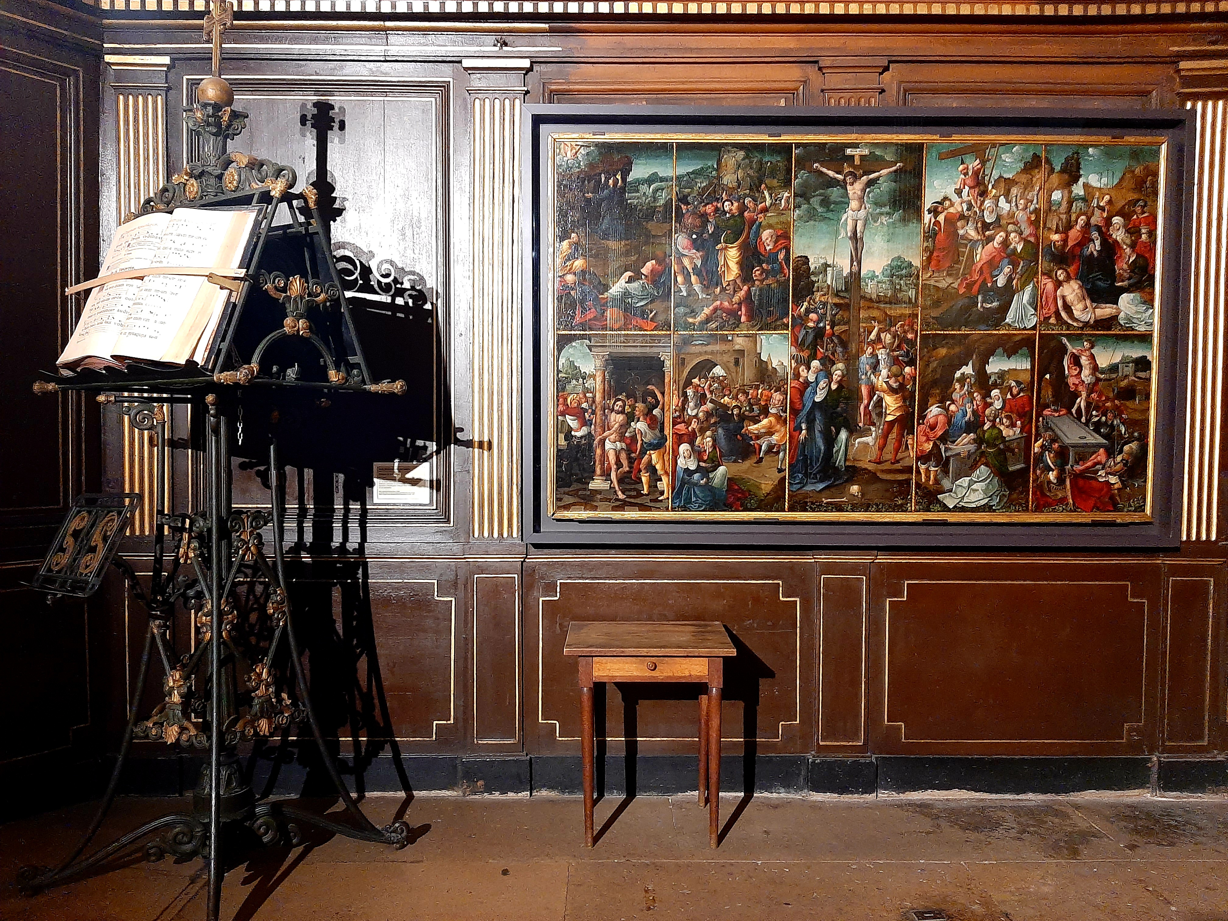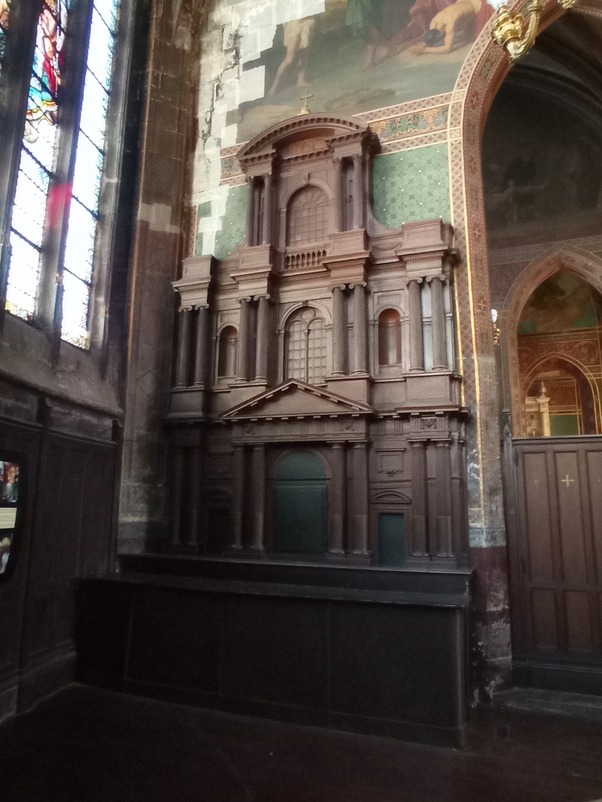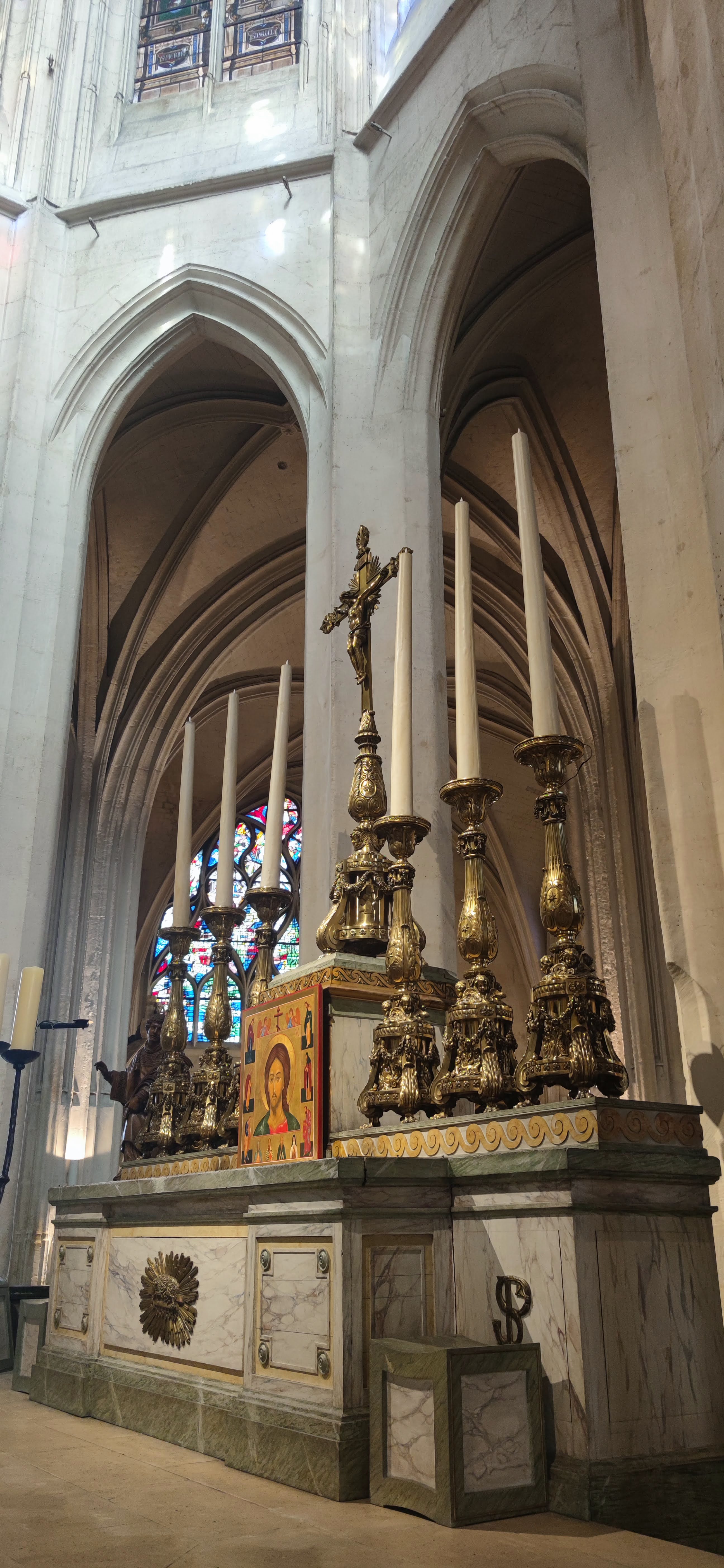 Église Saint-Gervais-Saint-Protais Encore plus grande à l'intérieur que vue de l'extérieur. Manque criant d'éclairage les jours où les nuages ont pris le pouvoir ; en fin d'après-midi certaines chapelles voient leur lustre s'illuminer mais pas la Nef. Quelques rayons de soleil au couchant font apparaître des myriades multicolores en son plafond au-delà du transept, on croit rêver. La Chapelle centrale de l'abside, lieu de prière, aux murs recouverts de fresques est magnifique, les clés de Voûte décorées sont bien mises en valeur. Pour découvrir la cerise du gâteau, le Retable de la Passion, il faudra attendre la fin des travaux du clocher. Pas de soucis, vous reviendrez, en attendant profitez des innombrables vitraux, des tableaux, de l'orgue de Tribune, du baptistère, des stalles aux fabuleux décors sculptés, des sculptures et de la paix.