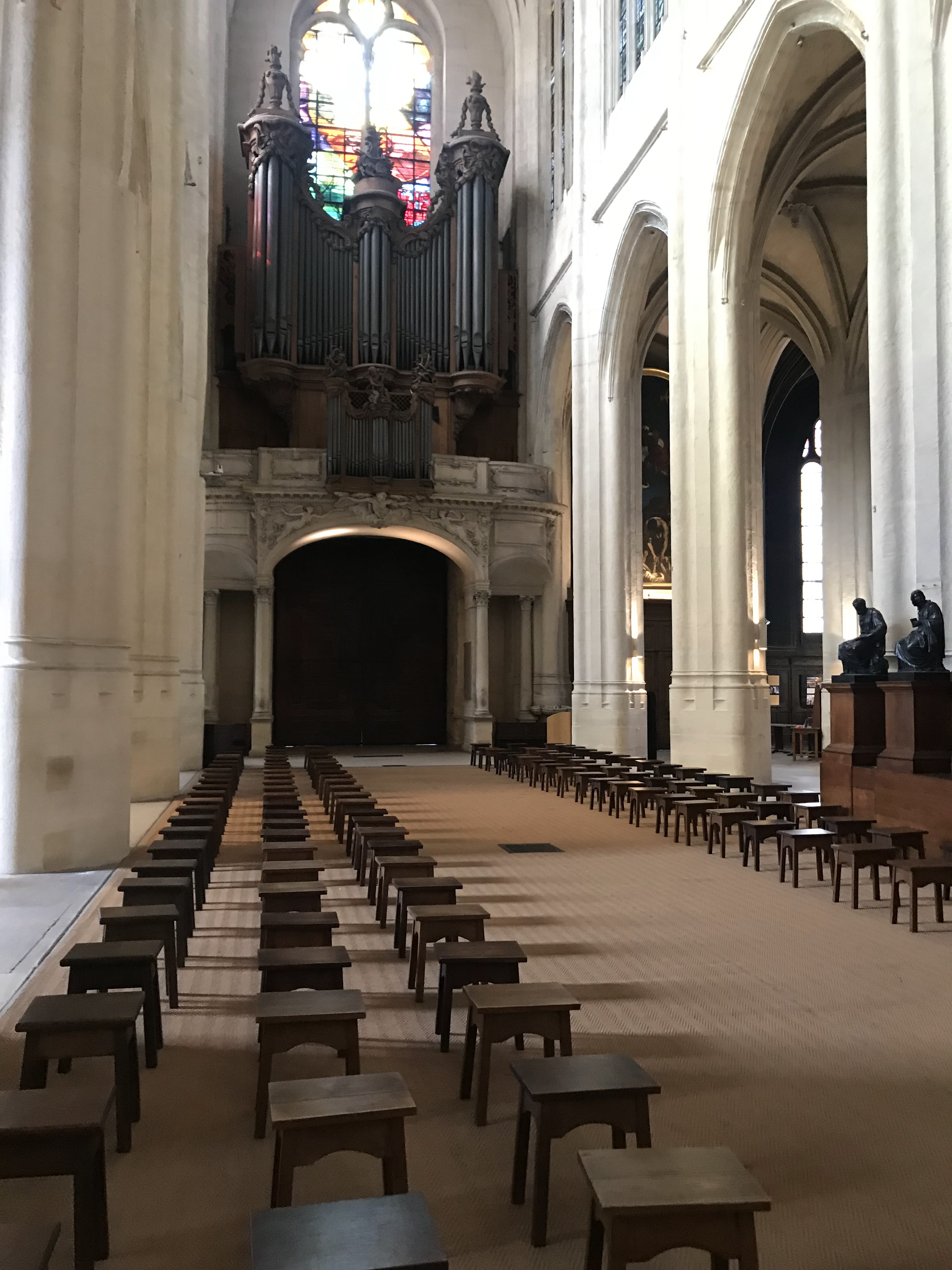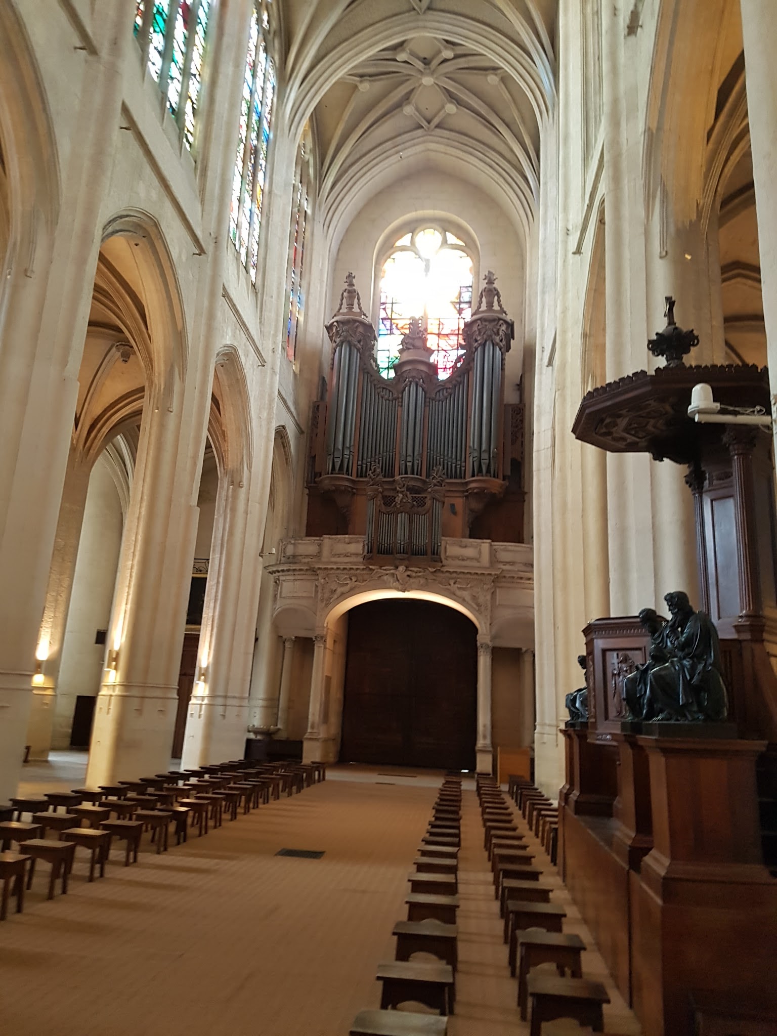La plus belle façade Classique-Baroque d'église de cette première moitié du XVIIème siècle à Paris! Un des grands Chefs-d'oeuvre de Salomon de Brosse, auteur également du Palais du Luxembourg et de Parlement de Bretagne à Rennes. L'intérieur qui a conservé sa structure ogivale des XVème et début XVIème siècles saisit le visiteur par sa luminosité grâce à ses hautes verrières colorées et contemporaines, l'orgue historique est celui sur lequel jouèrent les membres illustres de la famille Couperin, dont surtout Louis Couperin au XVIIème siècle et son neveu François Couperin le Grand au XVIIIème. À admirer notamment la très belle Adoration des Mages de Claude Vignon dans le déambulatoire Nord à hauteur du Choeur, et aussi du même artiste proche de l'entrée Est, la Décollation de Saint-Jean-Baptiste qui rappellera aux amateurs la version du Caravage, modèle de Vignon, dans la Cathédrale de La Valette à Malte, également, de la très belle École de Venise, un superbe Sebastiano Ricci dans une Chapelle du déambulatoire Sud, Saint-Grégoire le Grand et Saint-Vital intercédant pour les Âmes du purgatoire, assurément de très beaux moments artistiques!