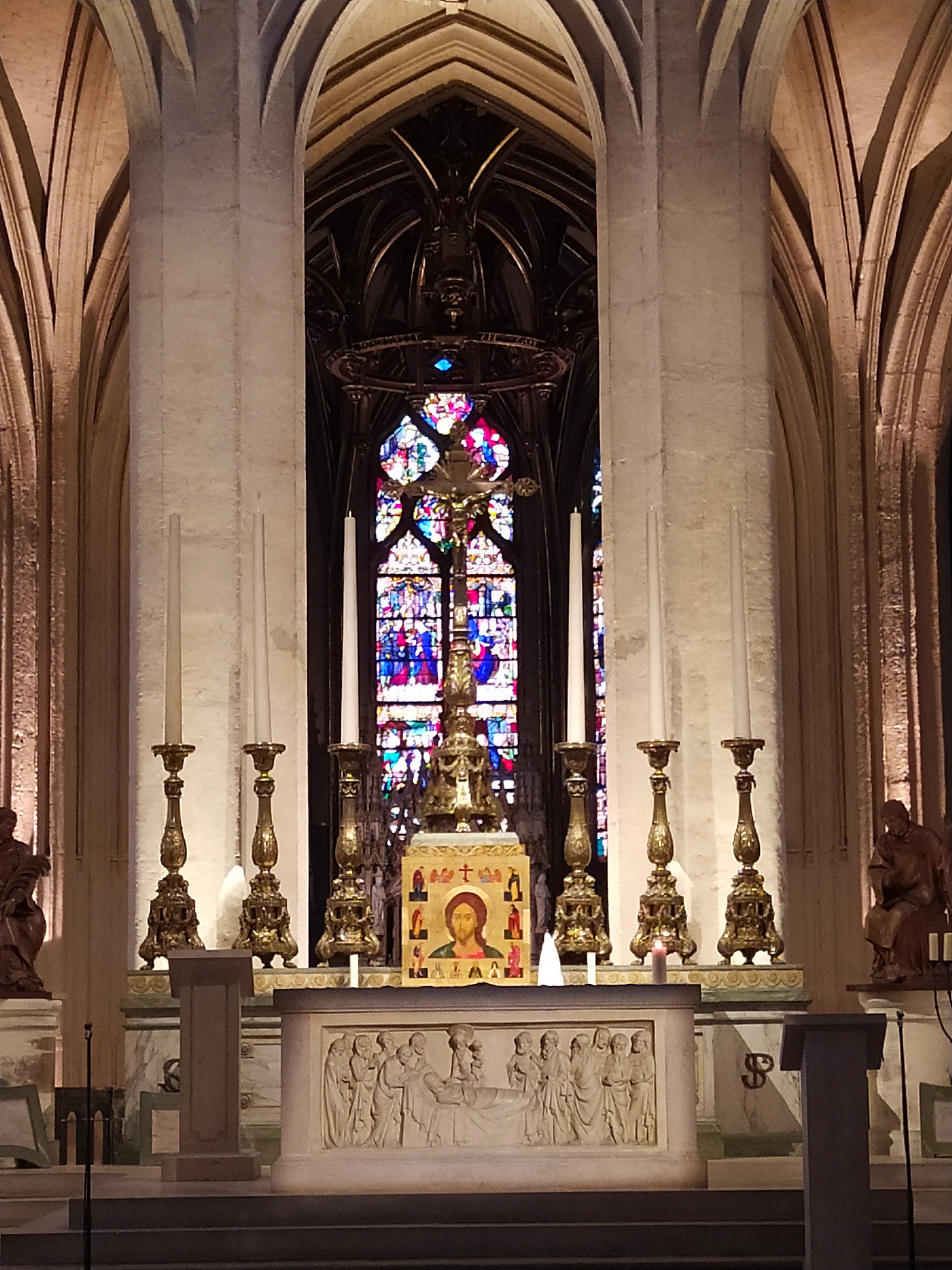Superbe église, nous avons assisté à une cérémonie animée par la fraternité monastique de Jérusalem, nous n avons pas déambulé pour respecter ce moment de recueillement, nous reviendrons pour admirer les différentes chapelles. De très beaux vitraux. Calme et sérénité sont au rendez-vous