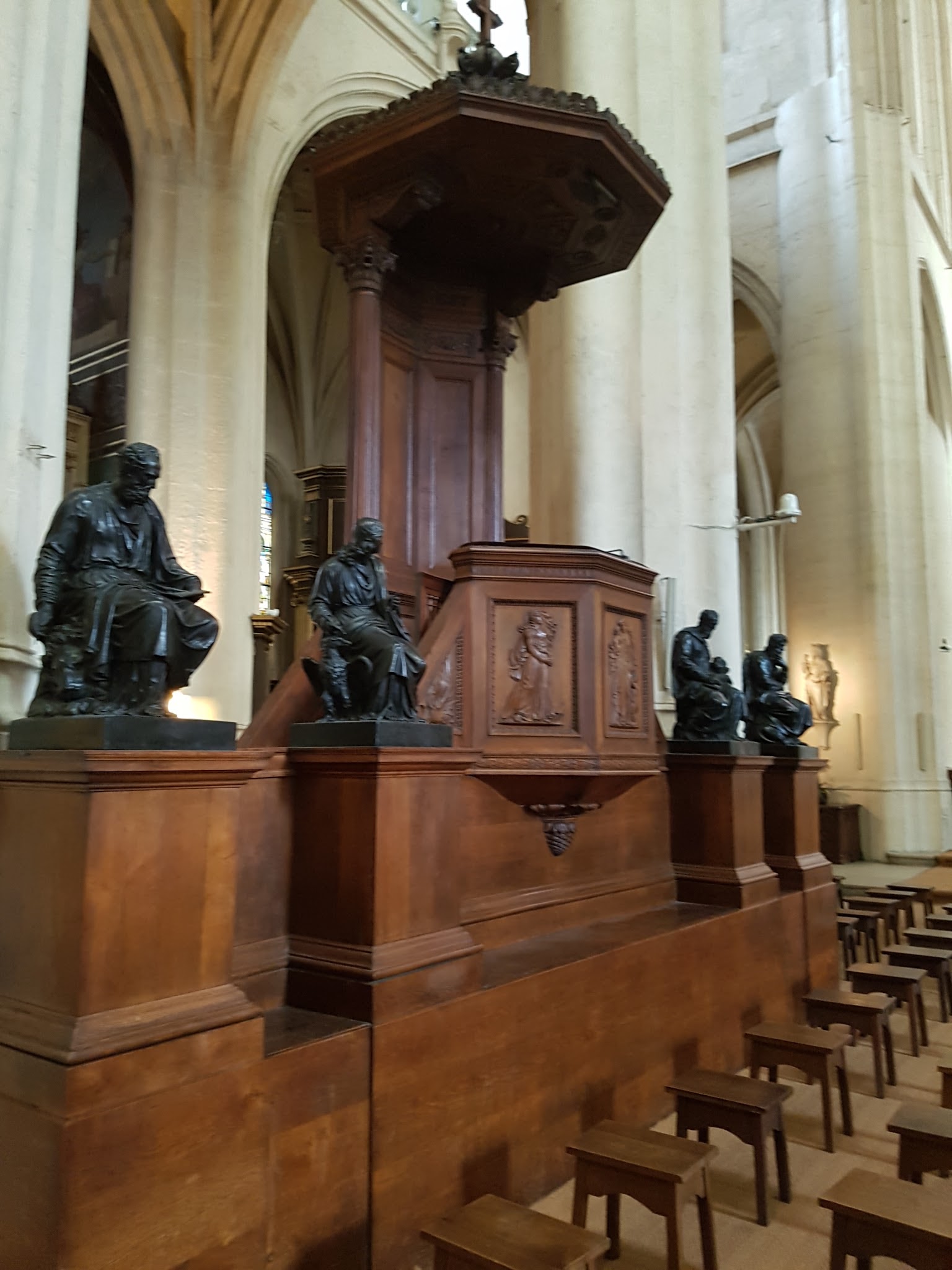 Eglise élégante, beaux vitraux, détails très fins sur les sièges de l'église. Seul petit hic, plein d'échafaudages tout autour.