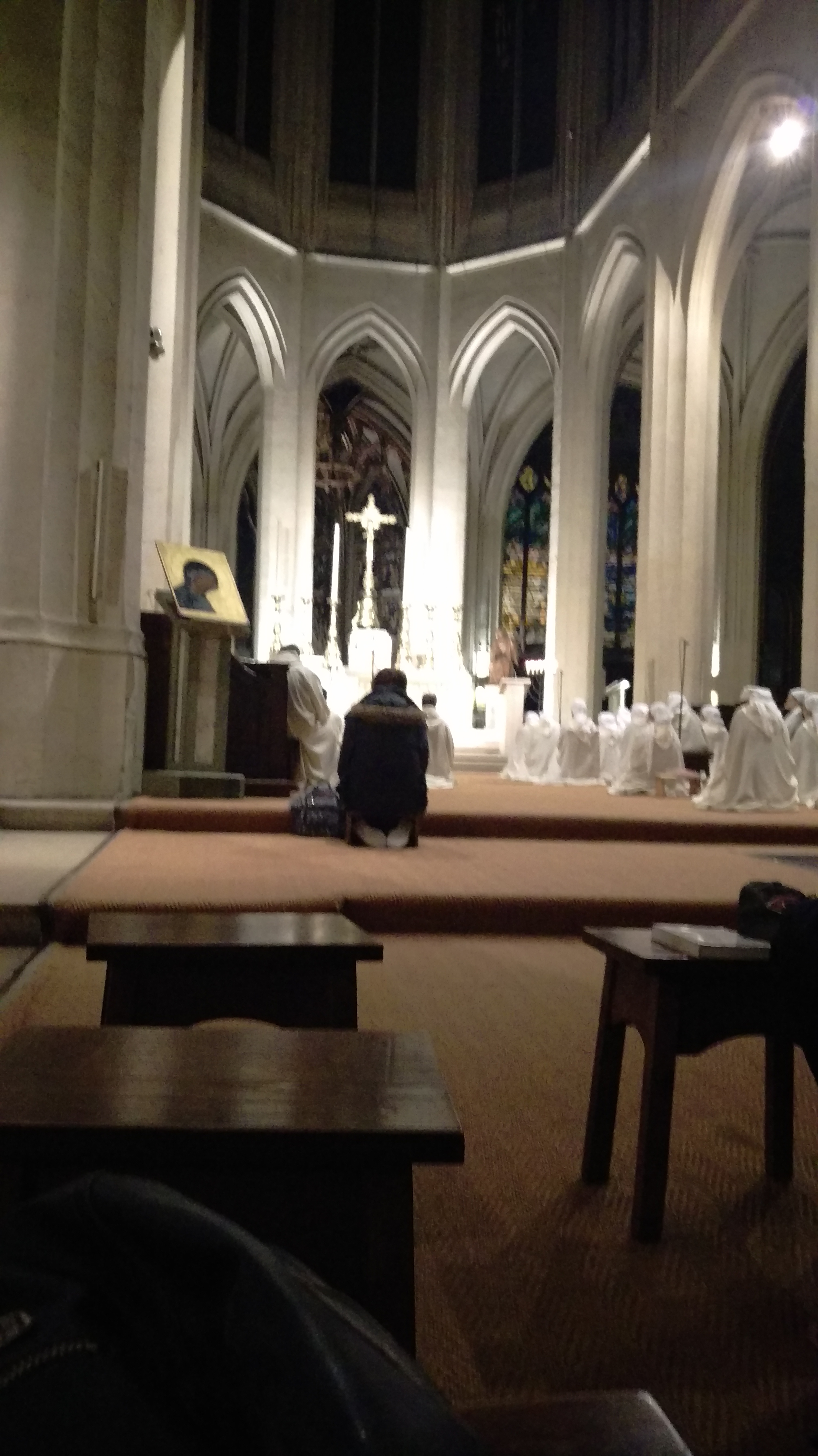 Offices très recueillis, en présence des fraternités monastiques de Jérusalem (moines et moniales). Belle expérience.