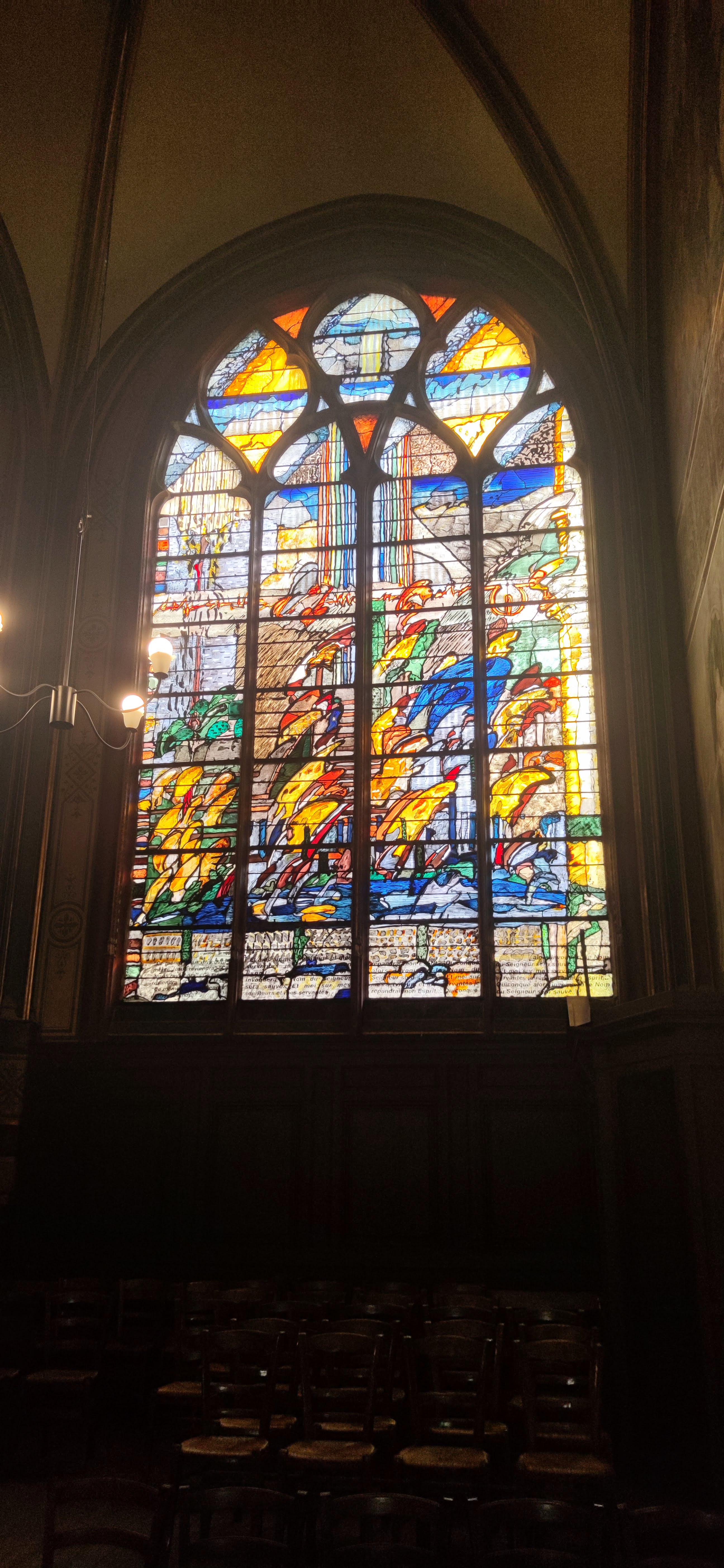 Les très belles vitres modernes pleins des couleurs. Belles architecture bonne éclairage pour apprécier l'architecture. Bureau d'accueil par des bénévoles très sympa qui donne des conseils. Il ya aussi un bureau d'accueil pour les pauvres qui cherchent un adresse pour manger où dormir. L'orgue de Couperin besoin d'une révision mais l'organiste titulaires à une virtuosité incroyable. Le Fraternité Monastique de Jérusalem chante trois fois par jour les office Monastique. L'église Saint Gervais respire un climat de la prière et de Paix. Il y a l'adoration quotidiens devant le Saint Sacrément sur l'autel principale ou dans le chapelle derrière l'autel.