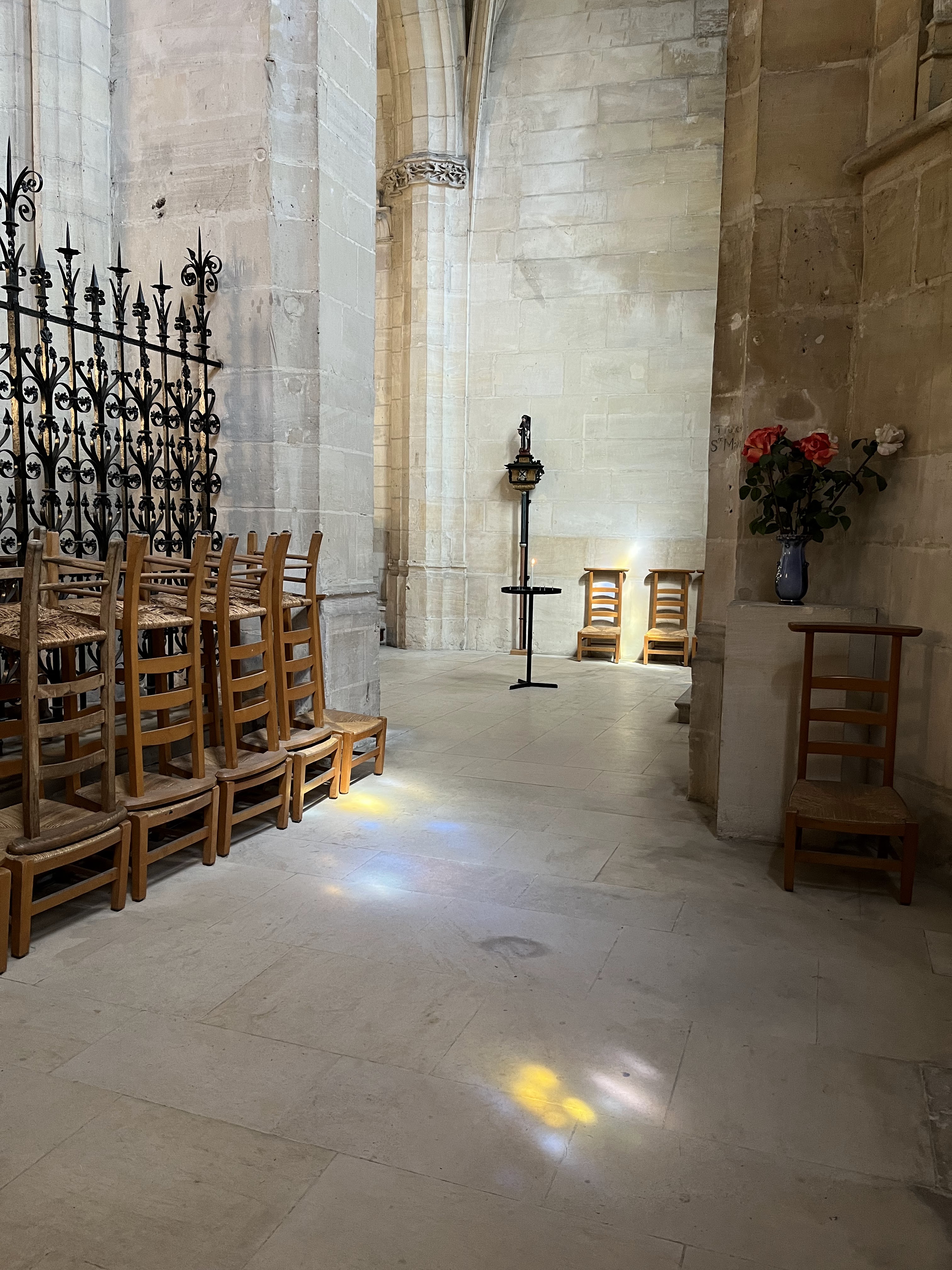 Belle église que nous avons visité un jour ensoleillé pour encore mieux profiter des reflets des vitraux sur la pierre