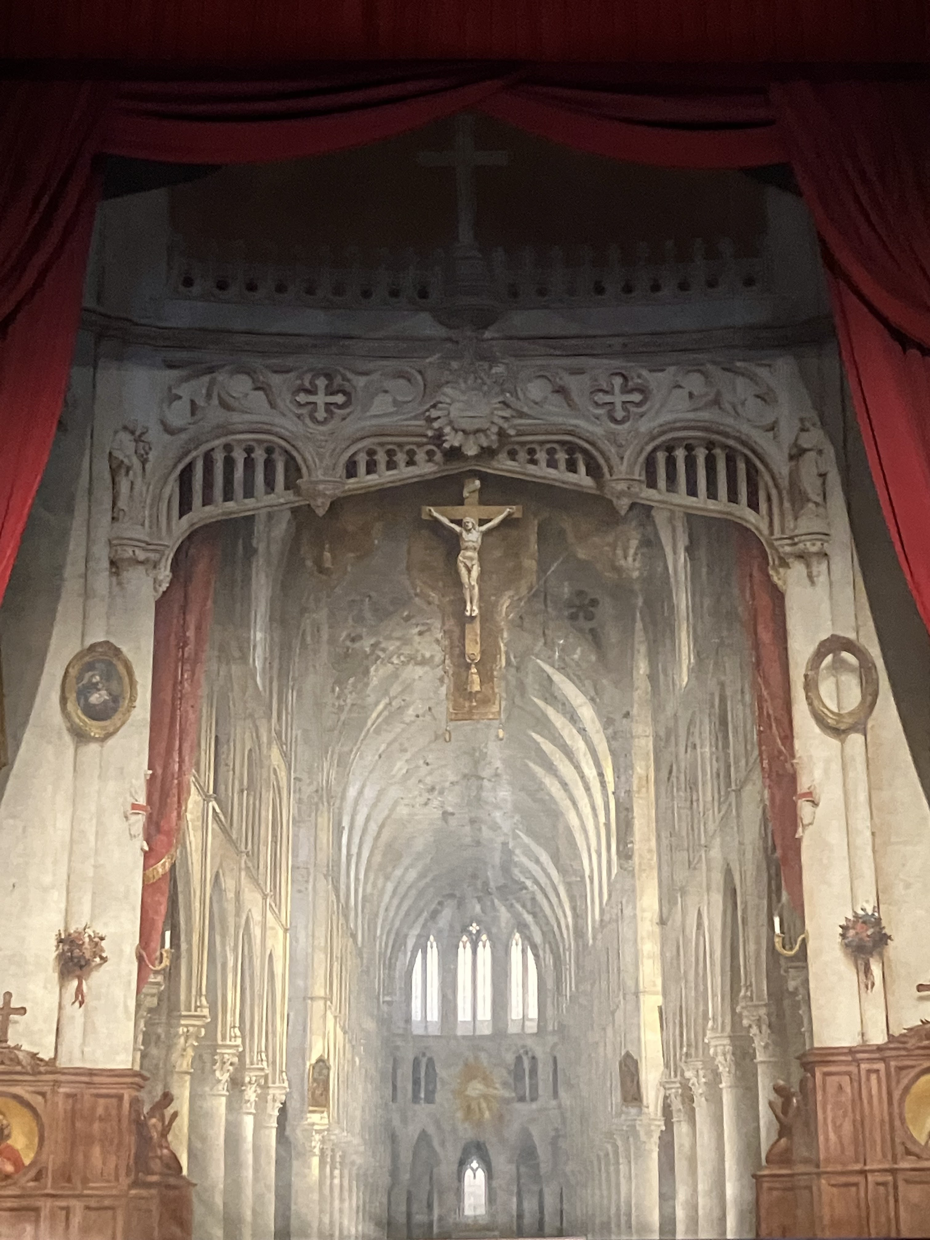 Pas trop le genre de lieu que je fréquente mais un surprenant et réussi fond de chœur en trompe l'oeil .