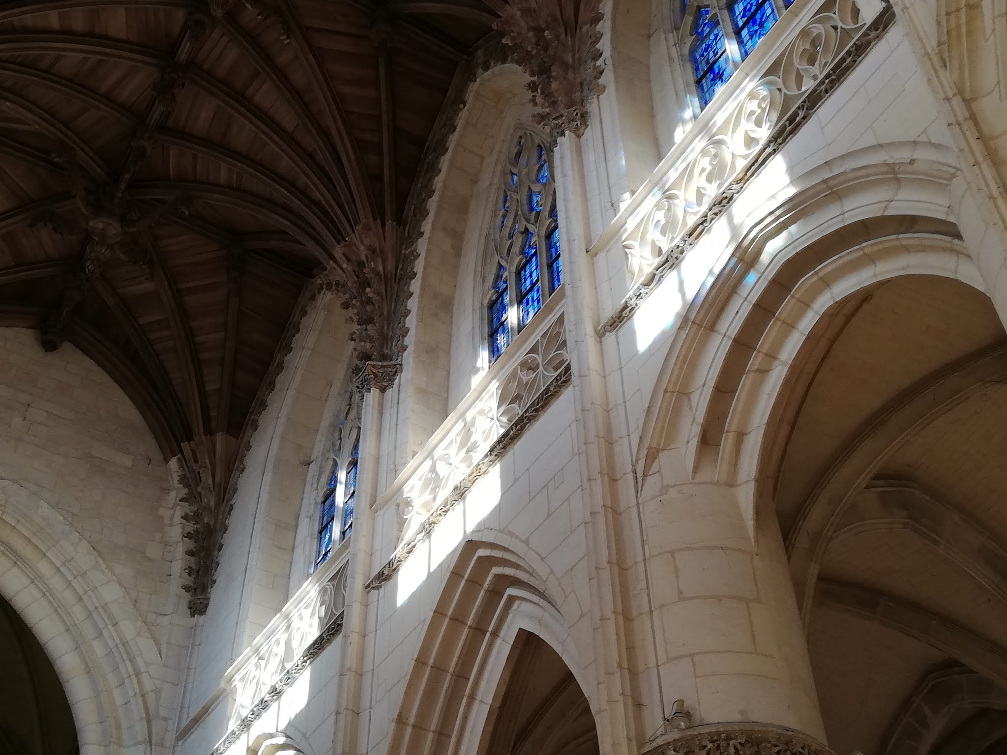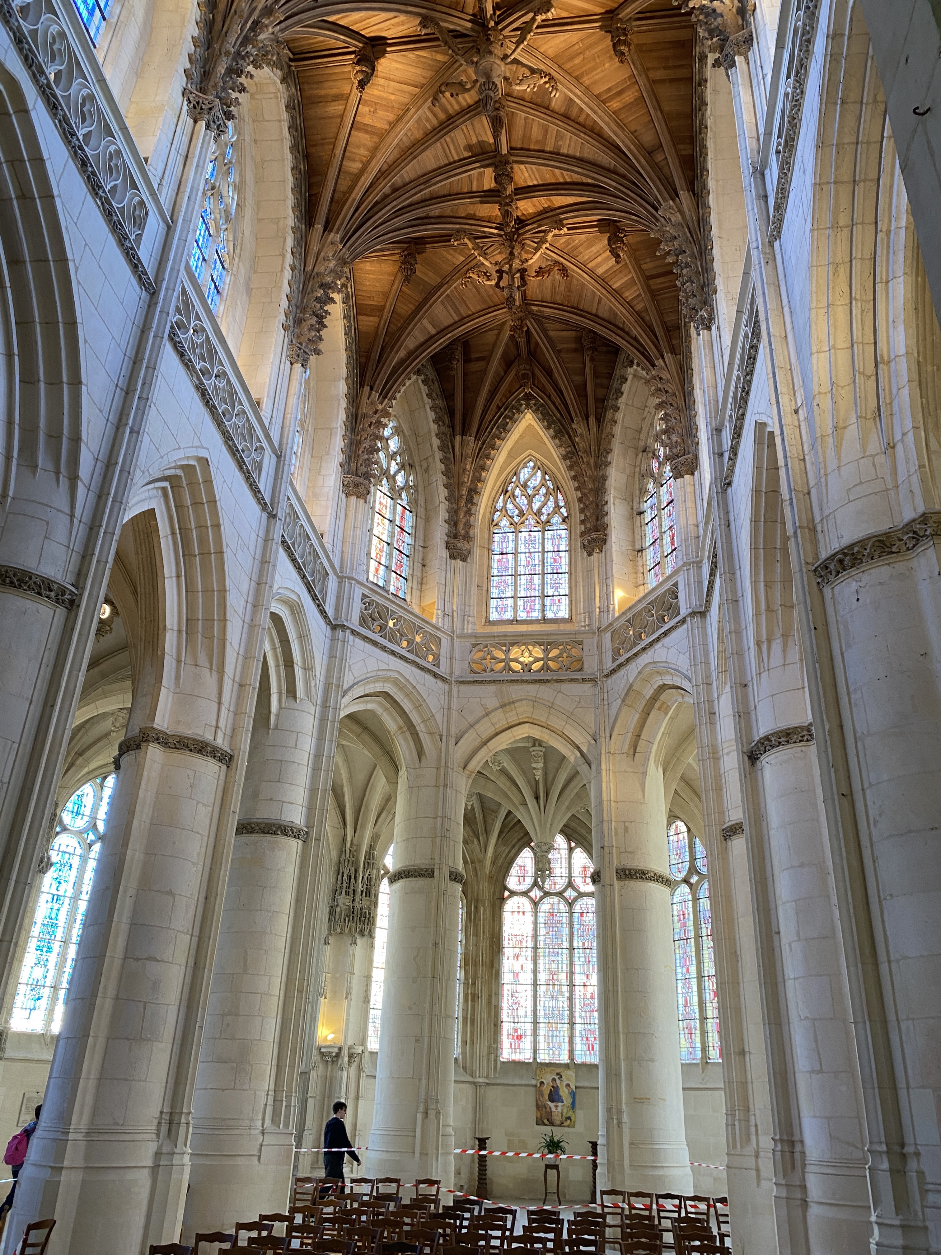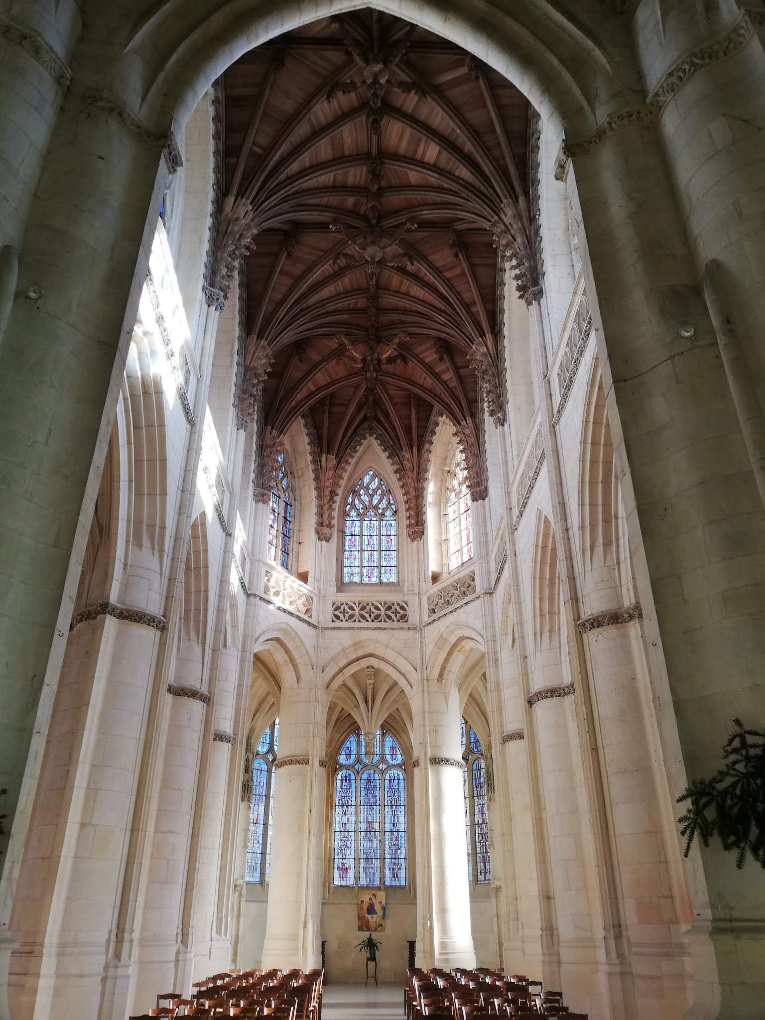 Eglise immense avec une charpente immense superbe,un chantier est en cours,mais magnifique.
